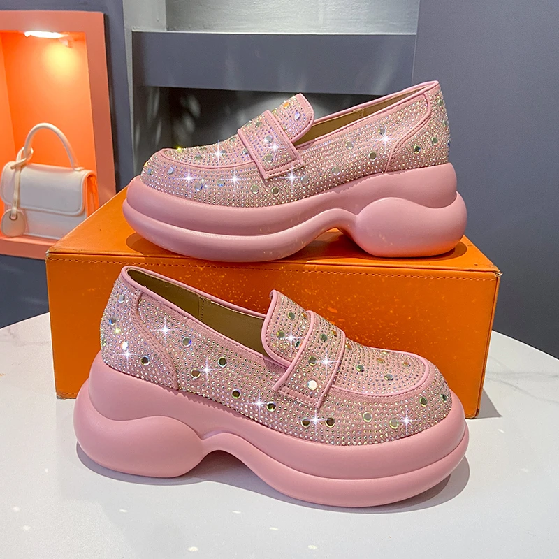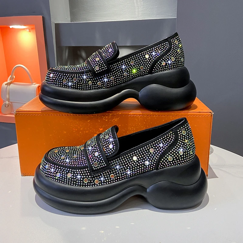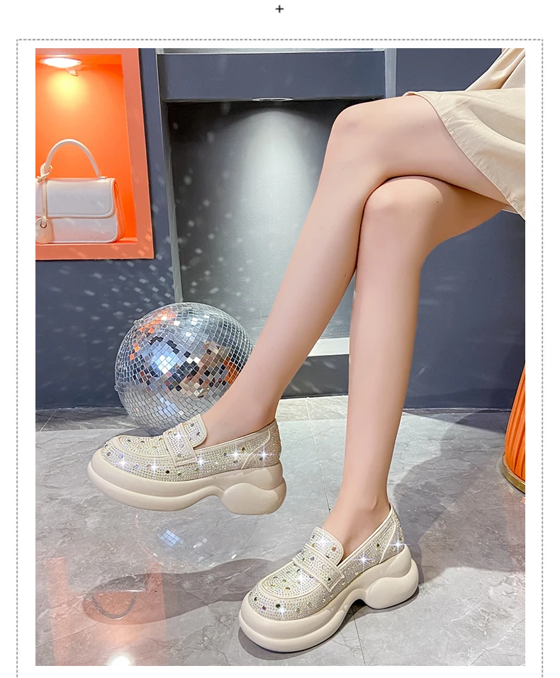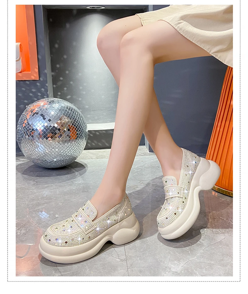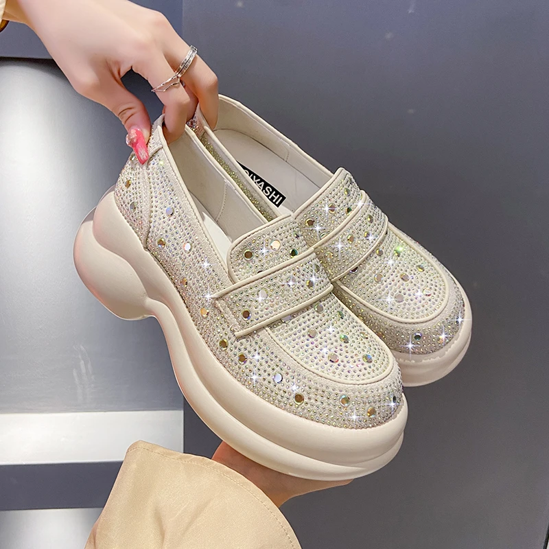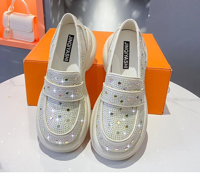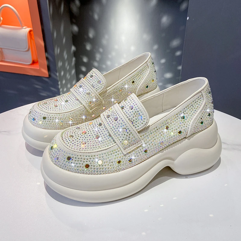 2024 Autumn Women Platform Shoes Rhinestones Thick-soled White Silver Shoes Shining Crystal Sneakers Trend Casual Sneakers