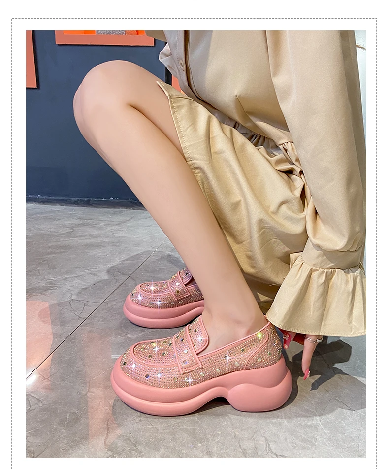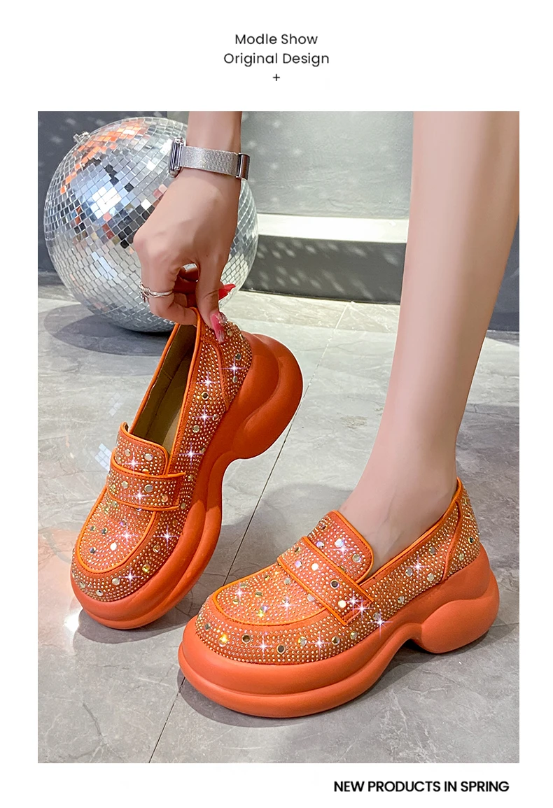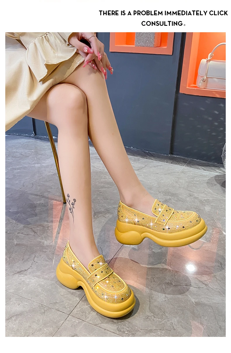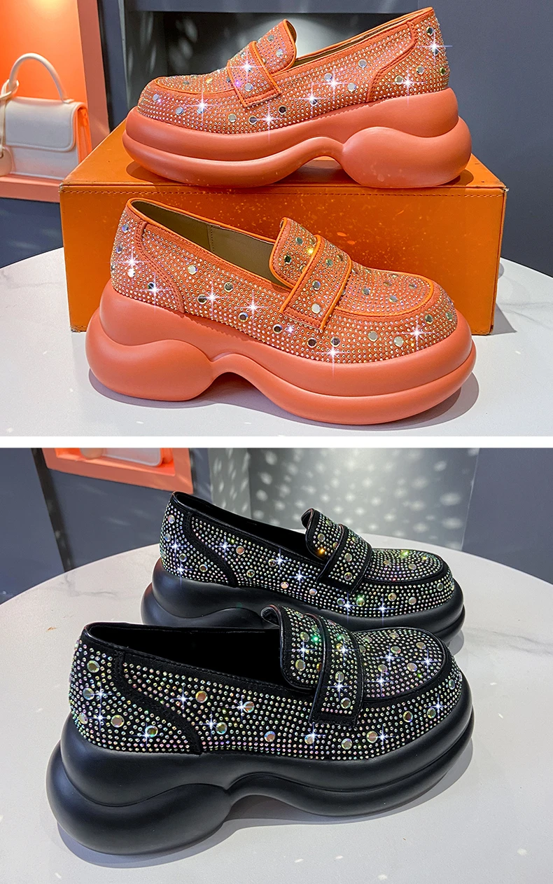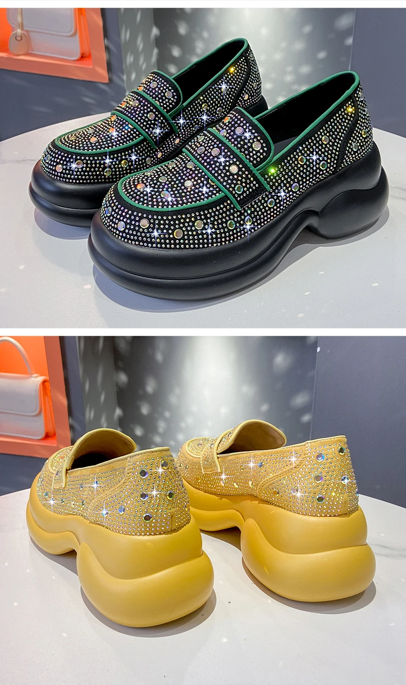 2024 Autumn Women Platform Shoes Rhinestones Thick-soled White Silver Shoes Shining Crystal Sneakers Trend Casual Sneakers