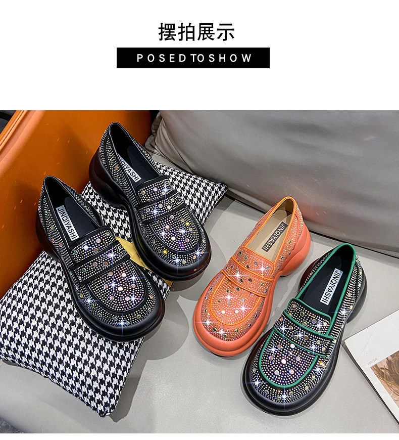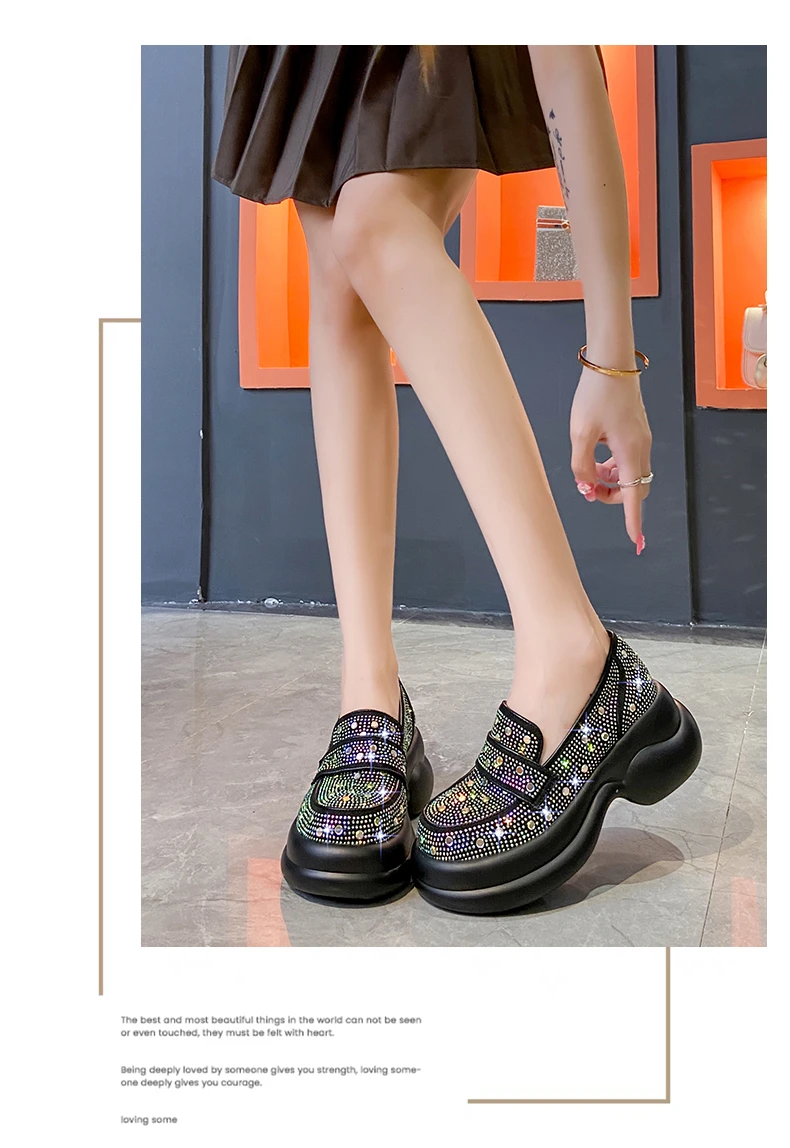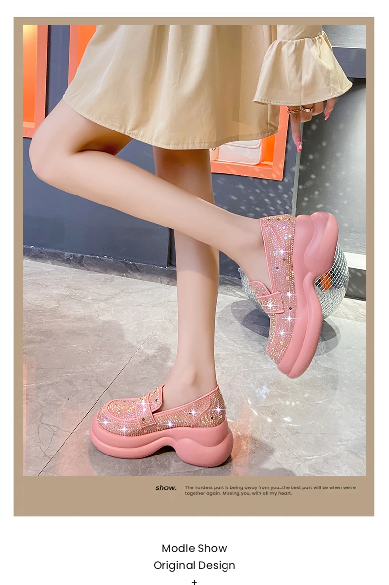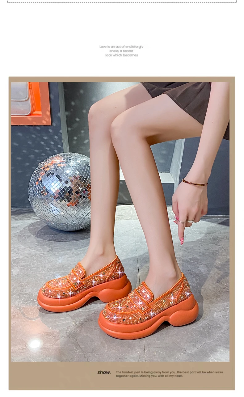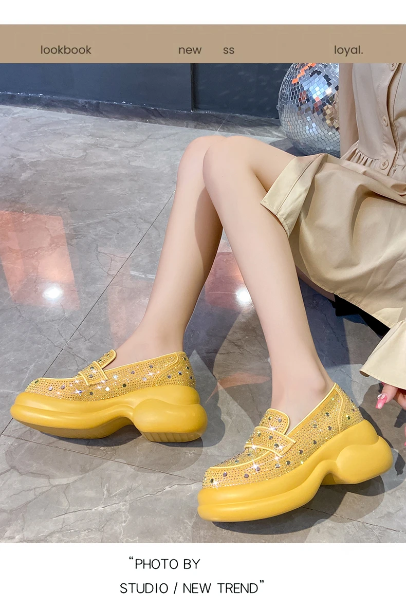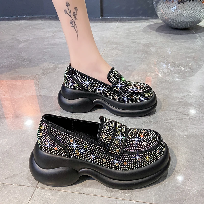 2024 Autumn Women Platform Shoes Rhinestones Thick-soled White Silver Shoes Shining Crystal Sneakers Trend Casual Sneakers