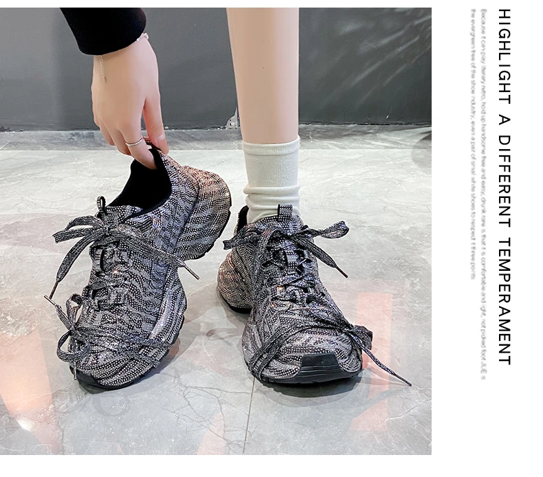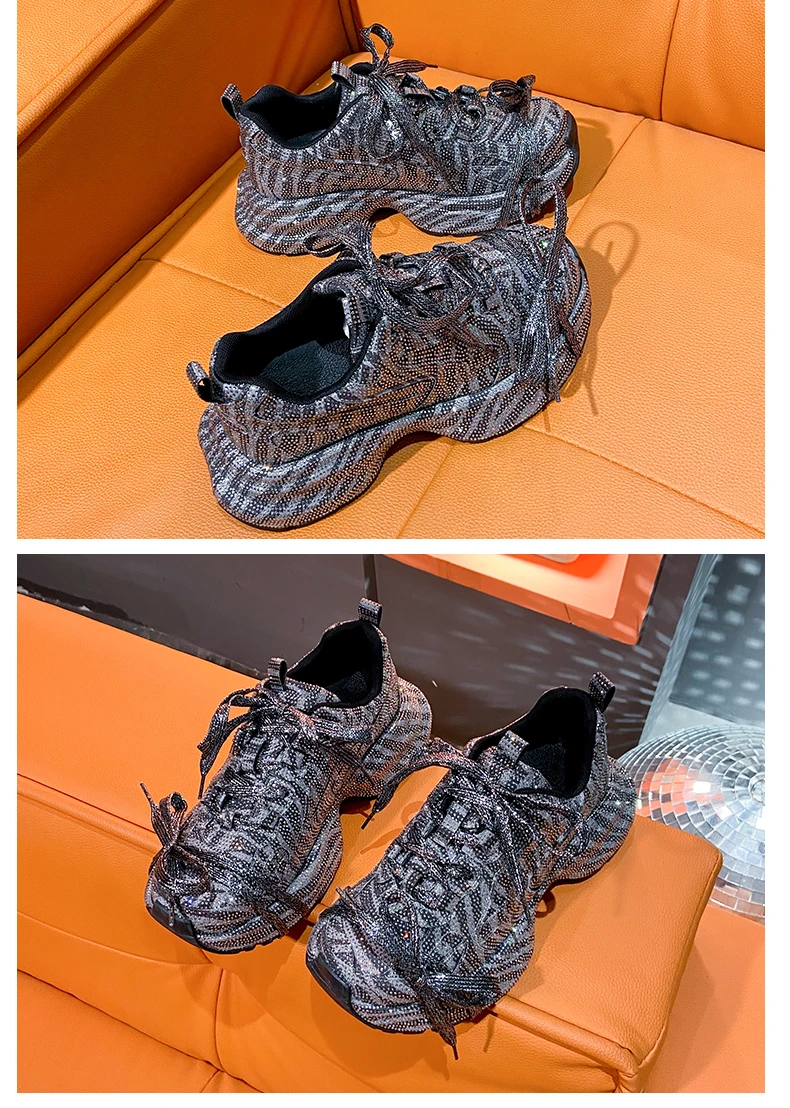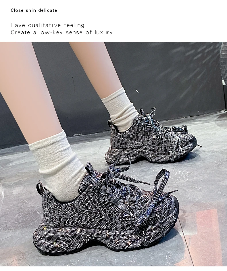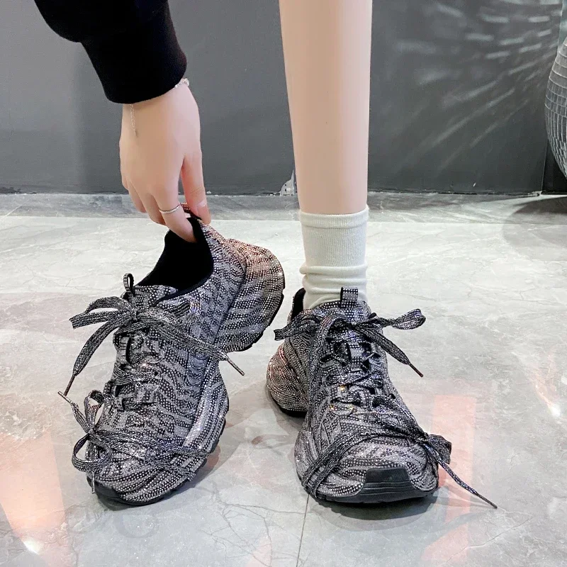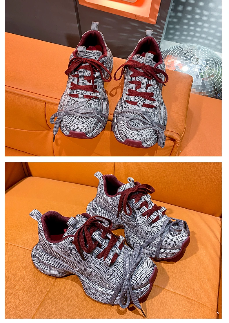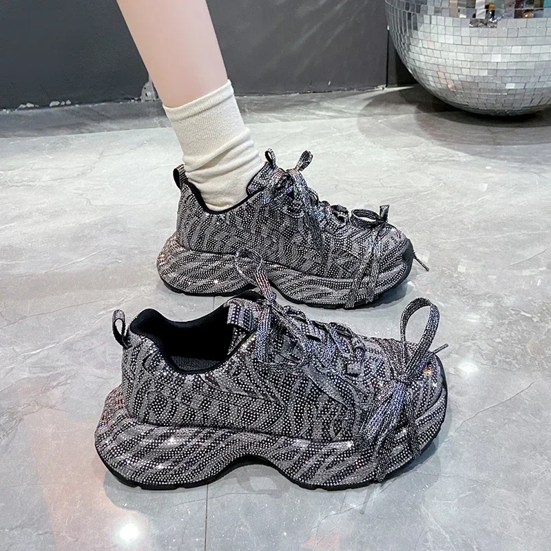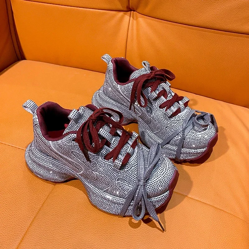 2024 Fashion Luxury Diamond Women’s Thick soled Sports Shoes Shining Designer Women’s Casual Shoes Comfortable Running Shoes