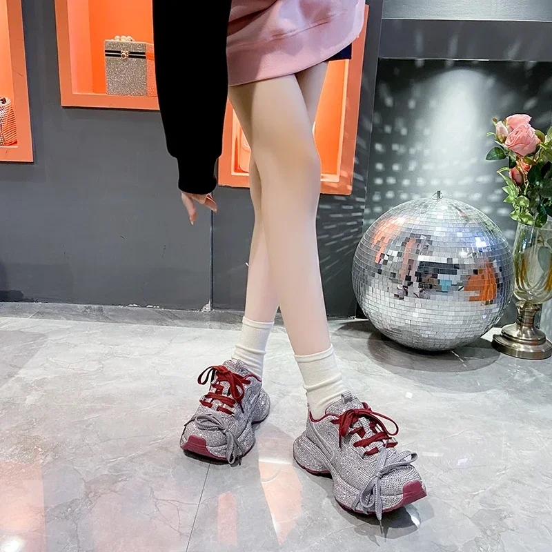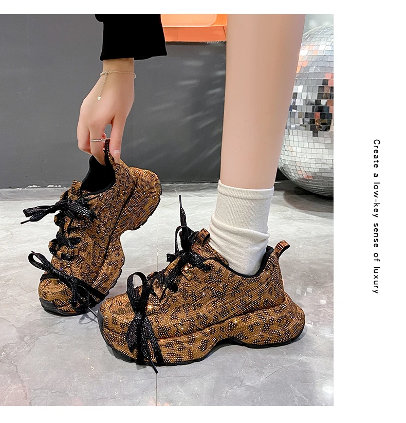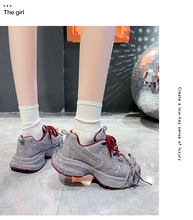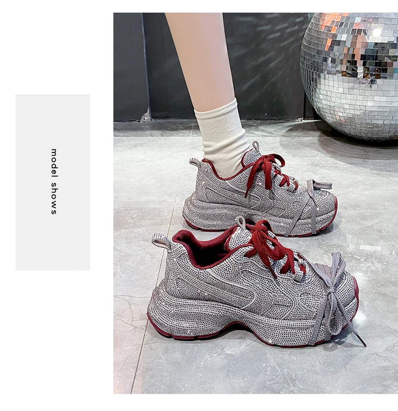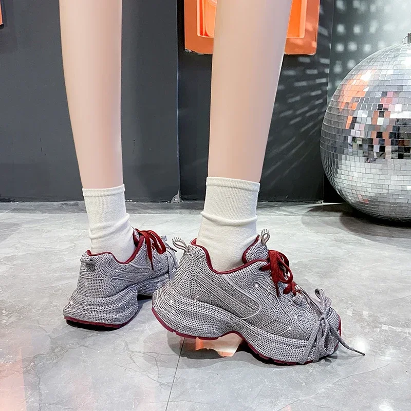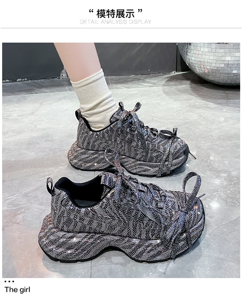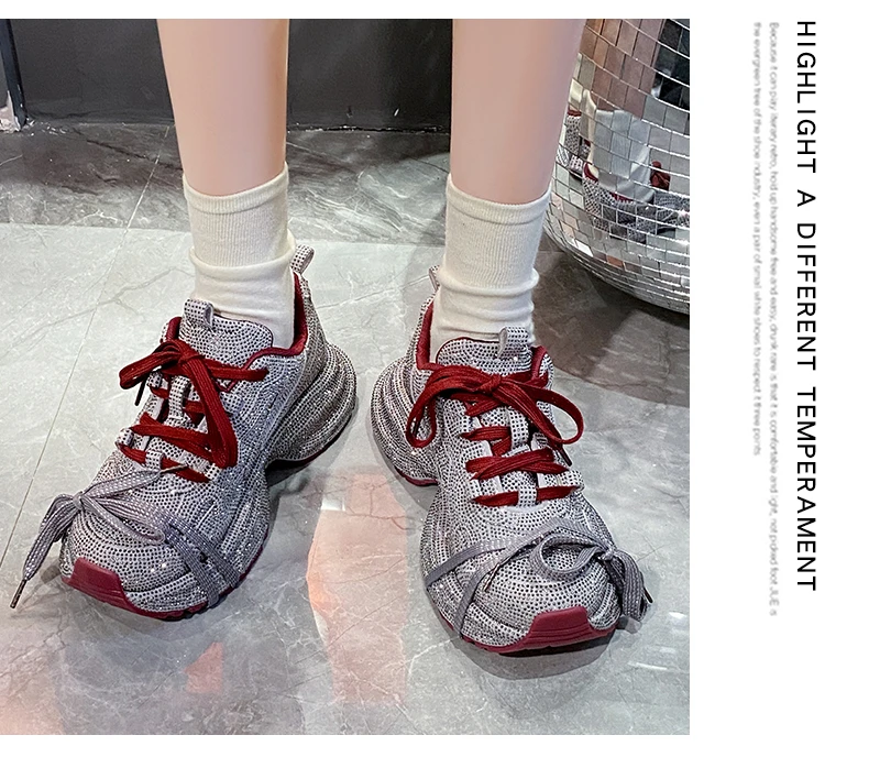 2024 Fashion Luxury Diamond Women’s Thick soled Sports Shoes Shining Designer Women’s Casual Shoes Comfortable Running Shoes
