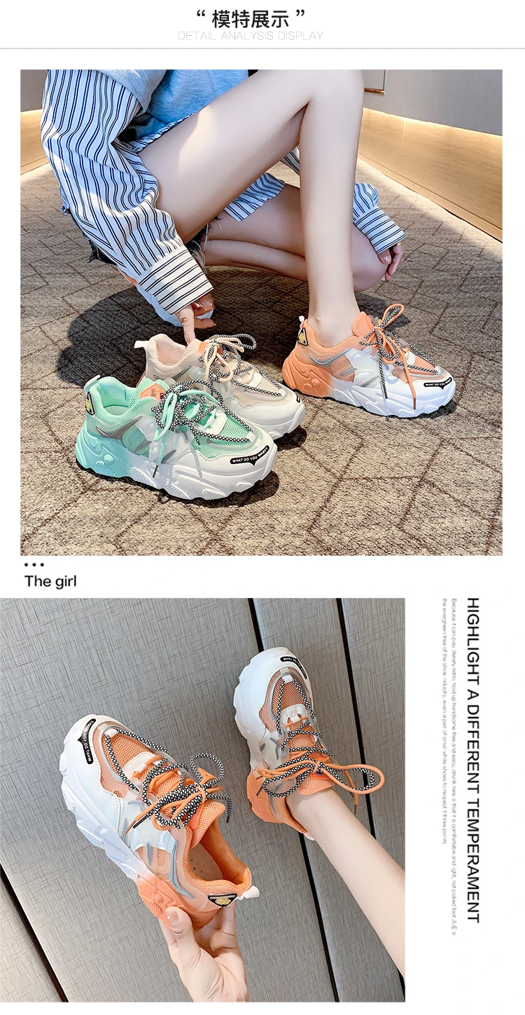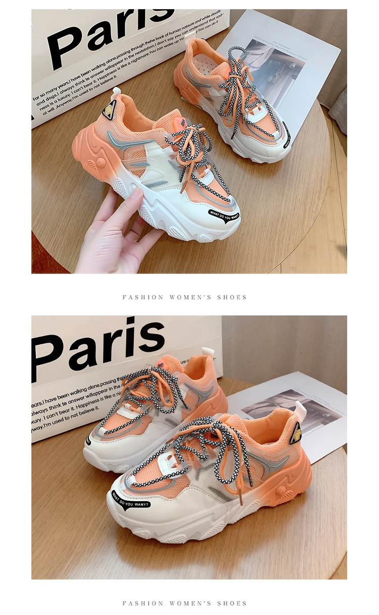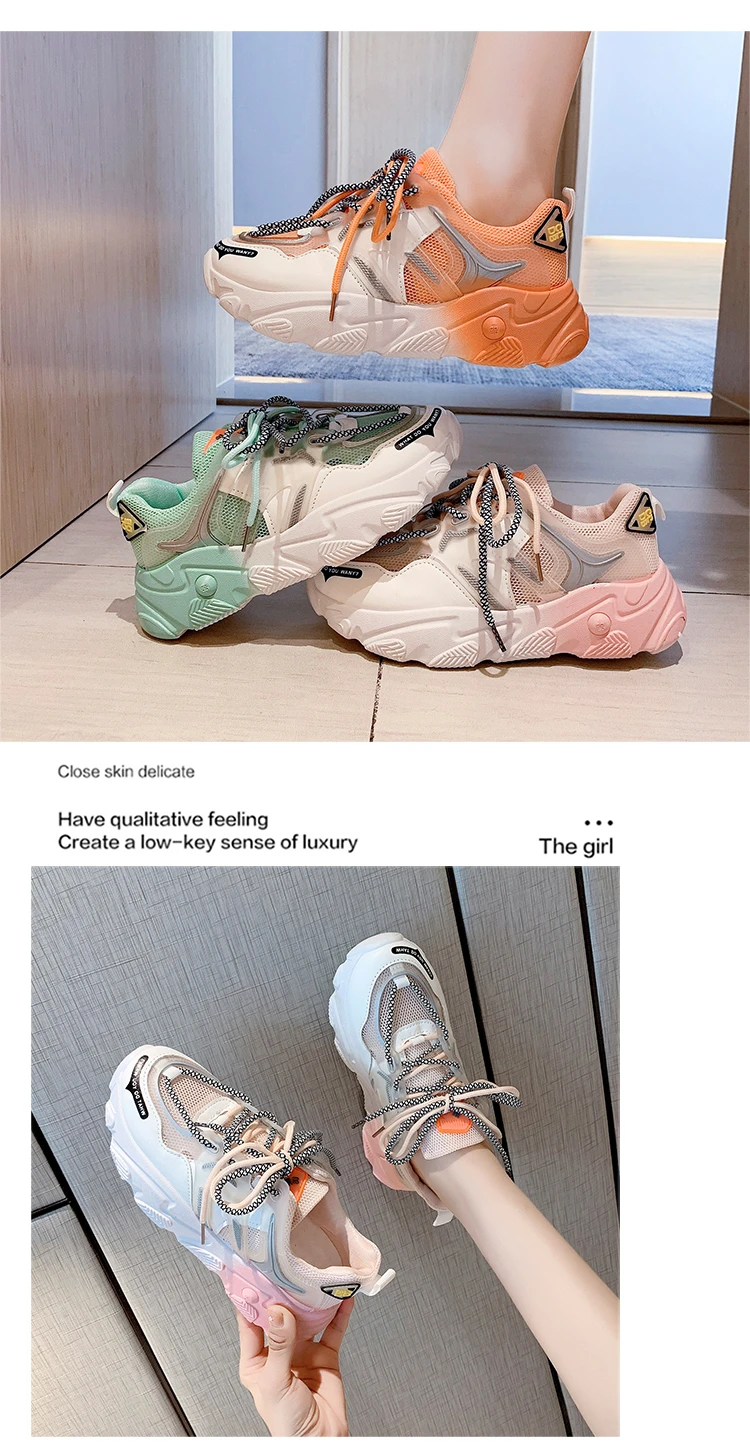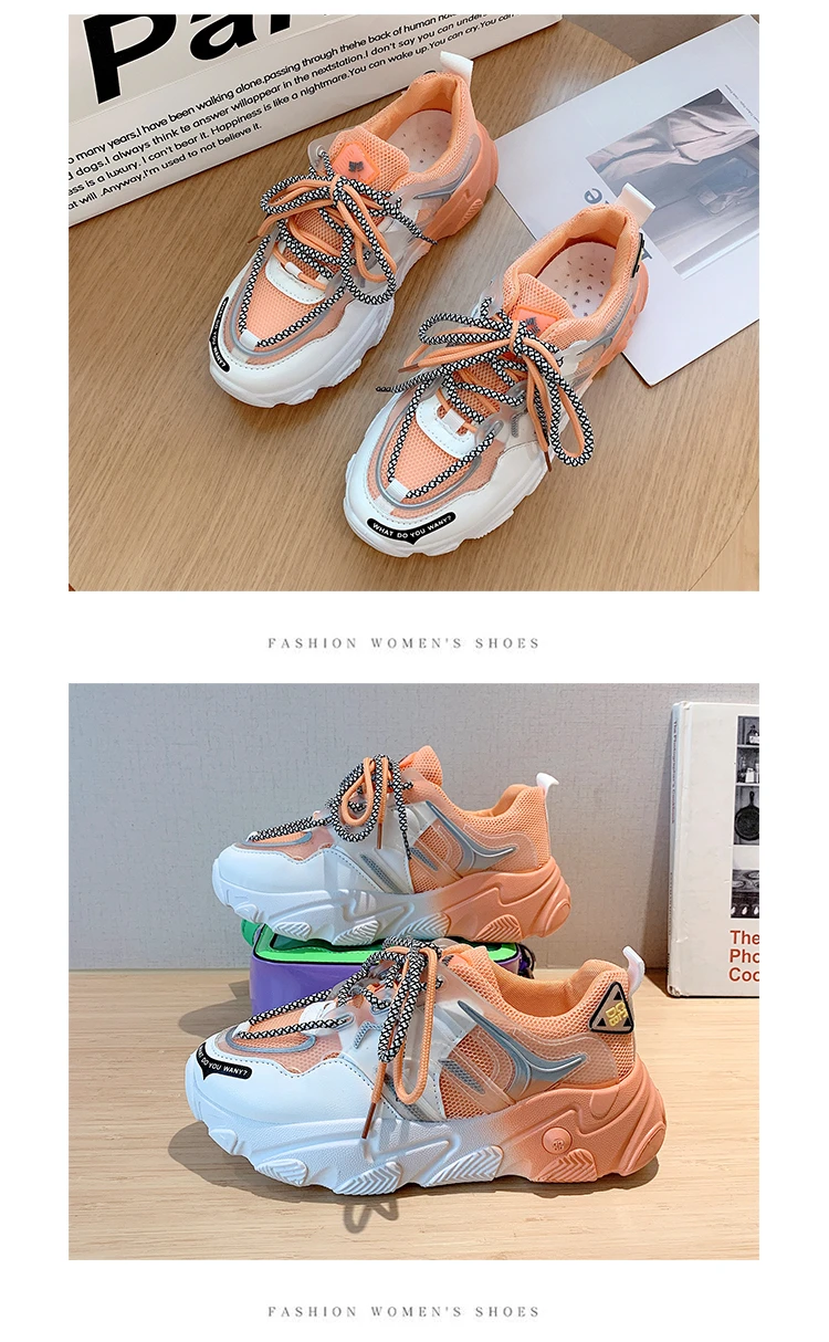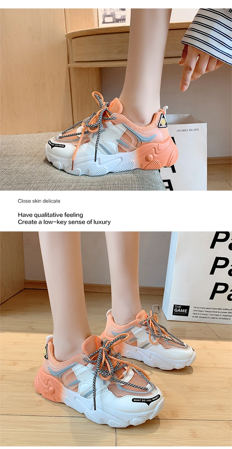 2024 New Designer Women Platform Sneakers Vulcanize Pink Orange Fashion Casuals Height Increasing Female Chunky Ladies Shoe