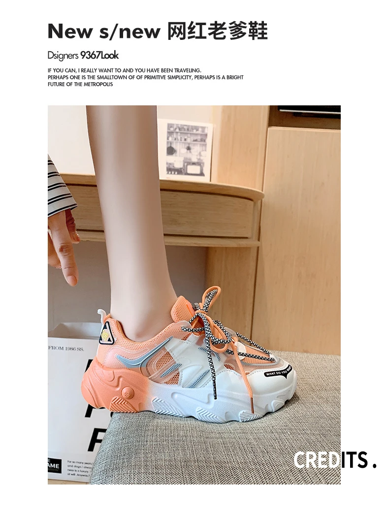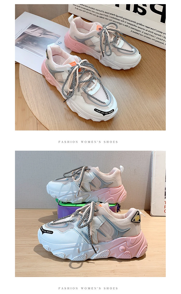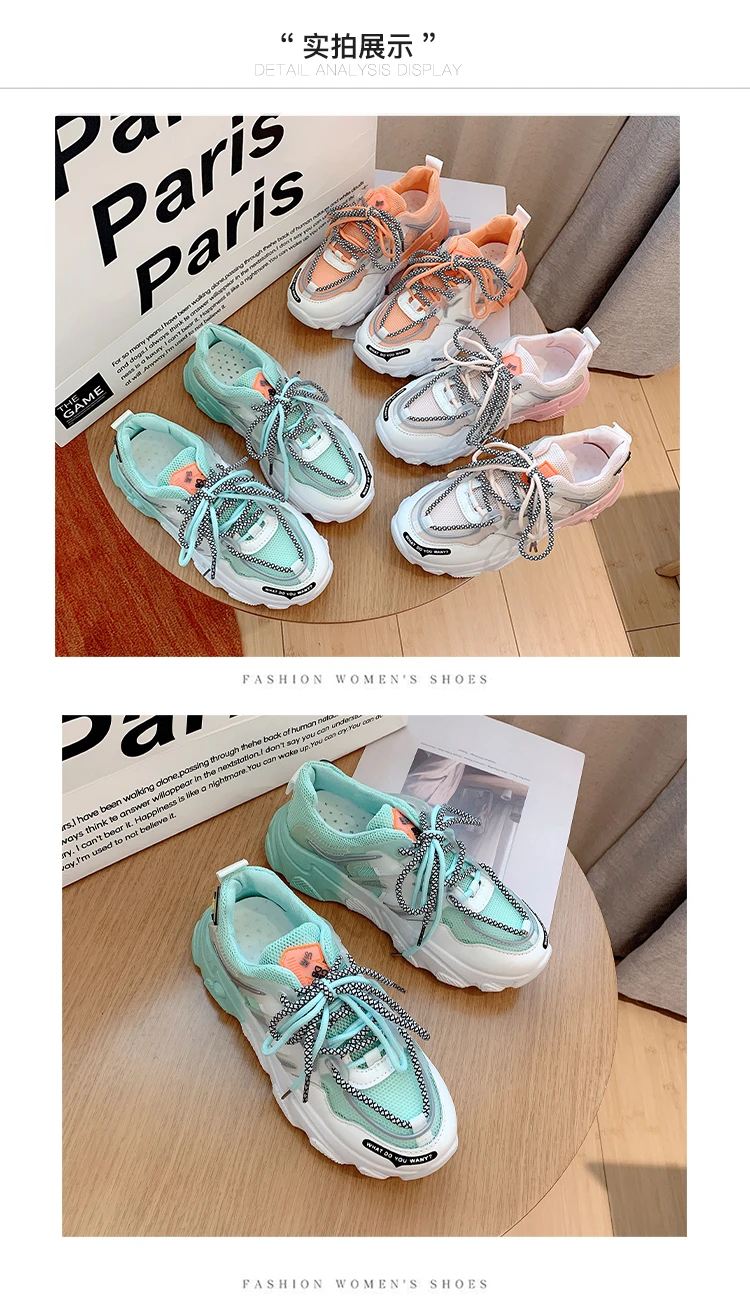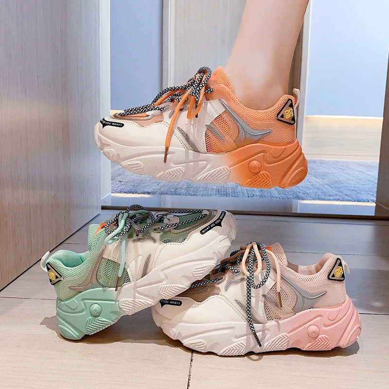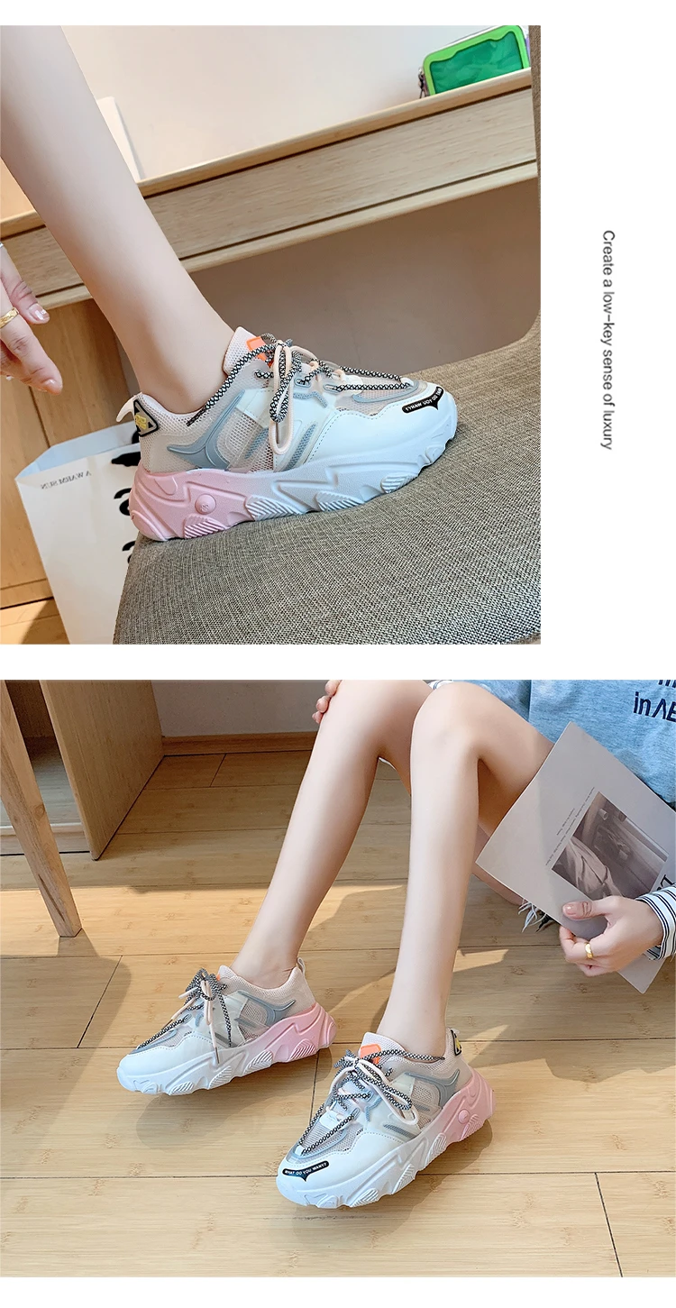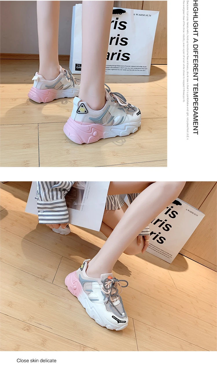 2024 New Designer Women Platform Sneakers Vulcanize Pink Orange Fashion Casuals Height Increasing Female Chunky Ladies Shoe