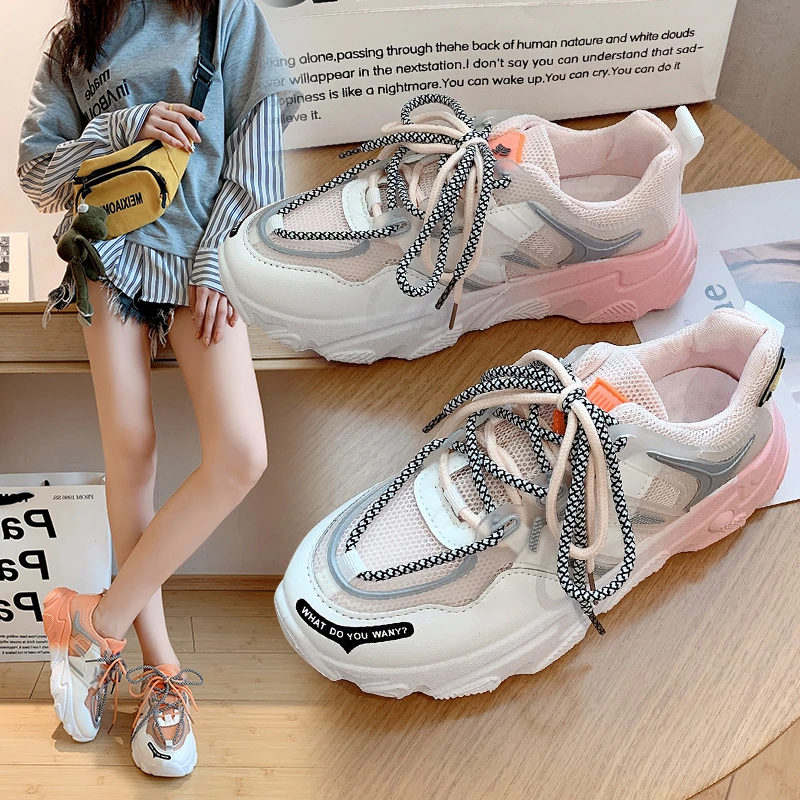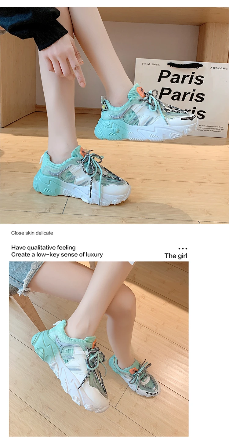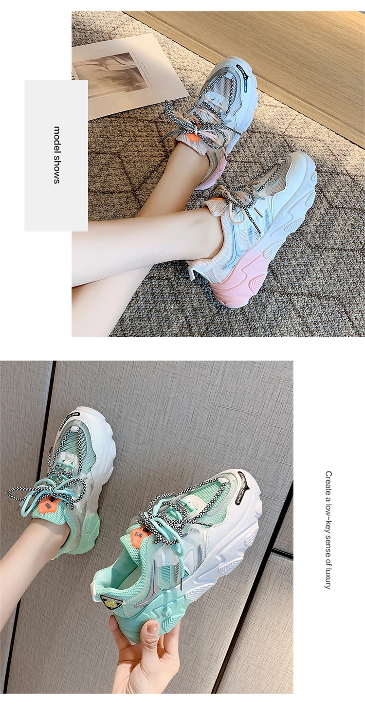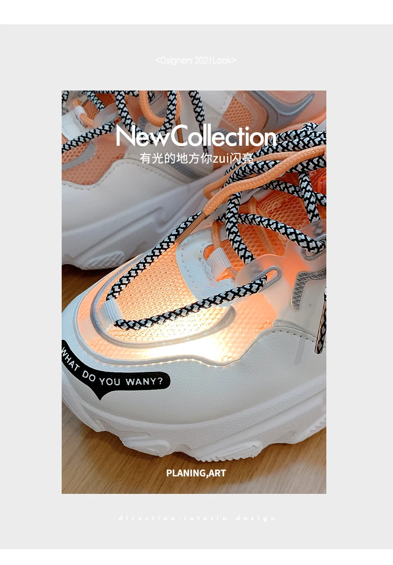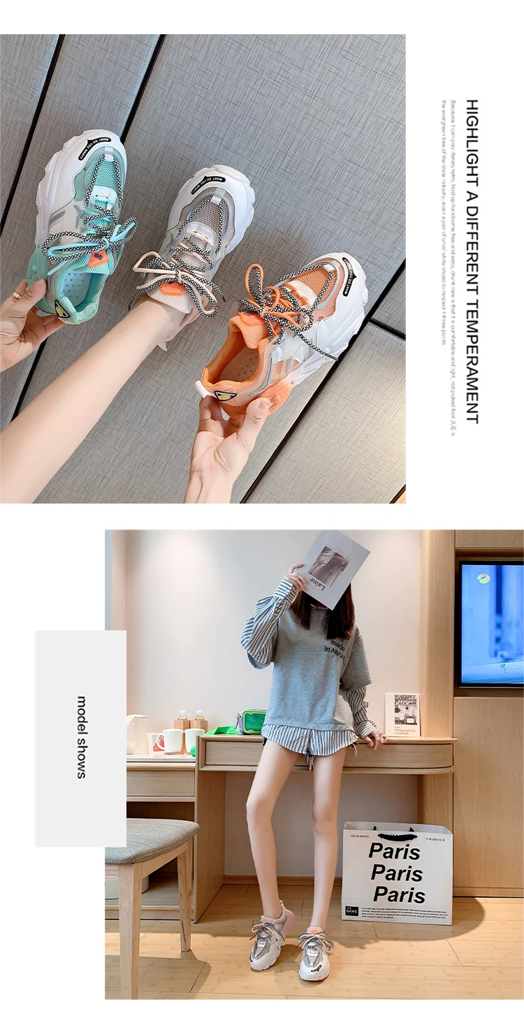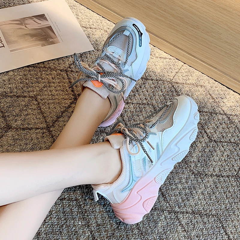 2024 New Designer Women Platform Sneakers Vulcanize Pink Orange Fashion Casuals Height Increasing Female Chunky Ladies Shoe