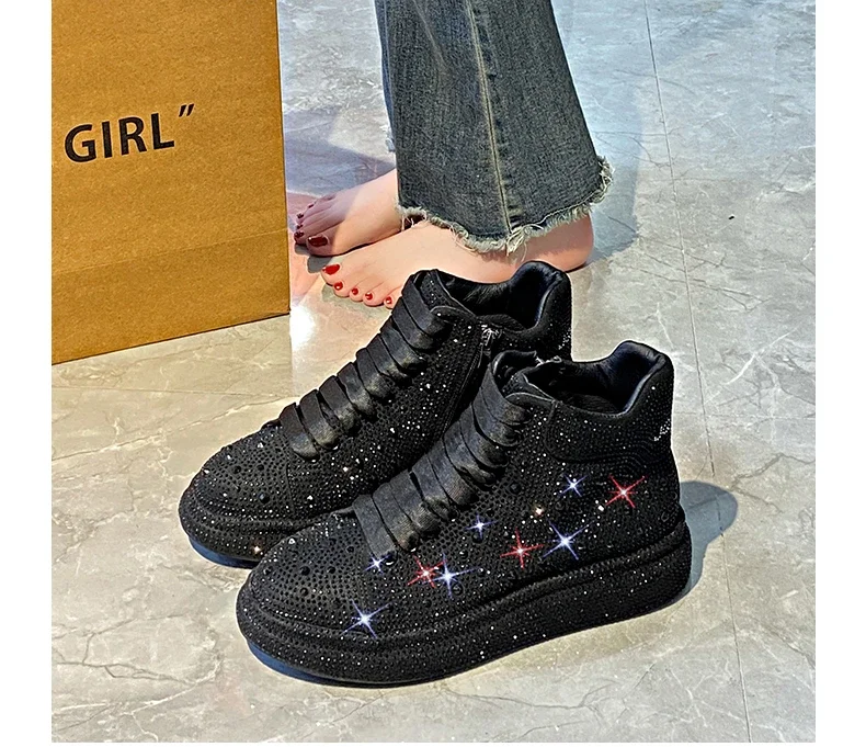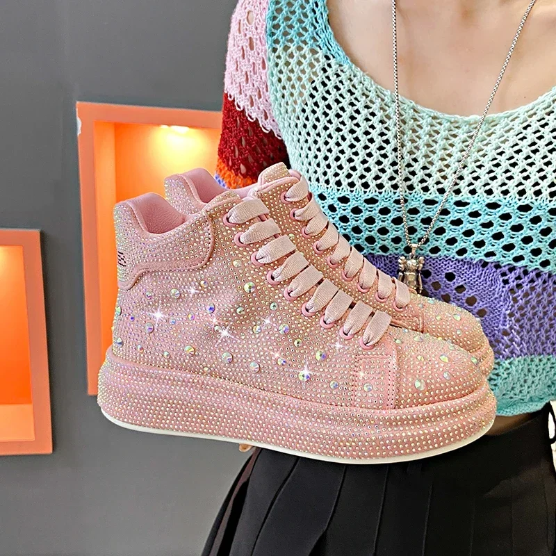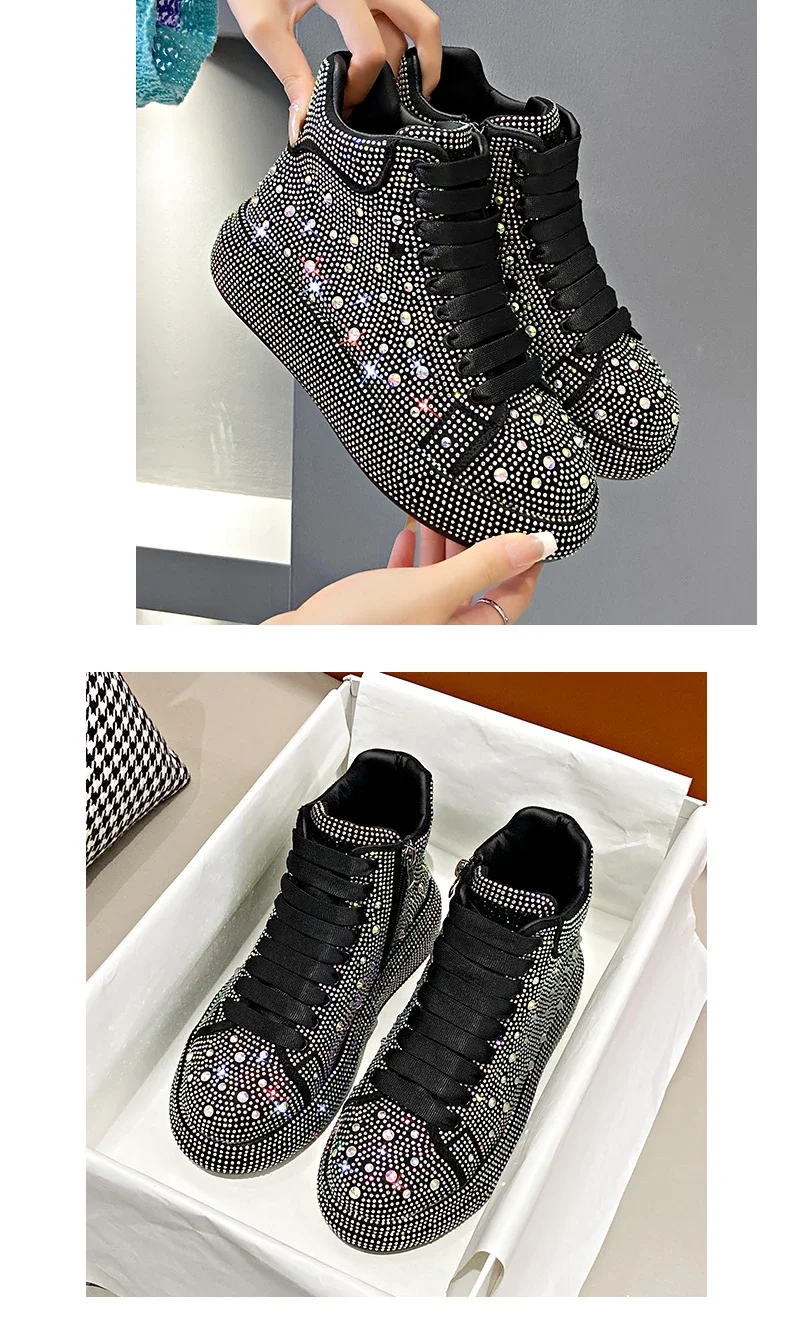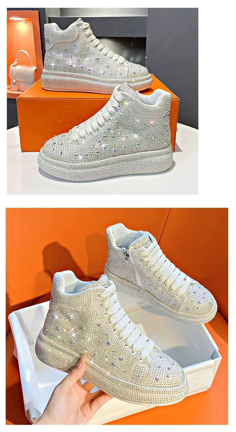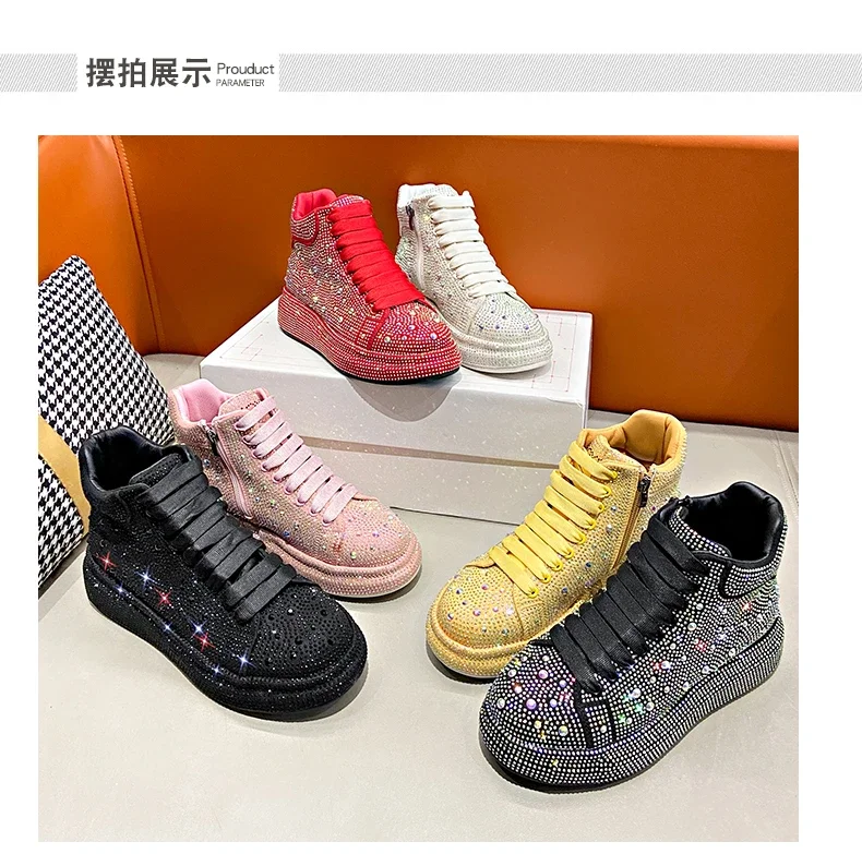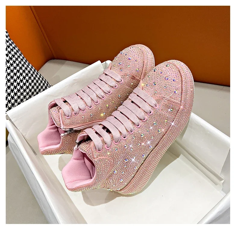 2024 New Luxury Designer Sneakers Full Diamond Shoes Versatile Thick Sole Water Diamond Casual Skateboard Shoes zapatos de mujer