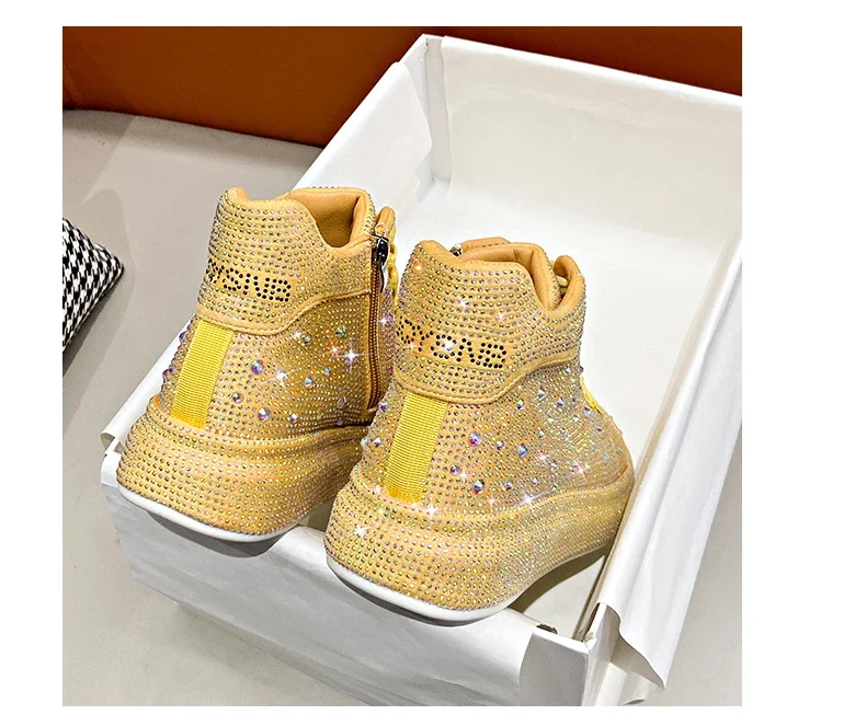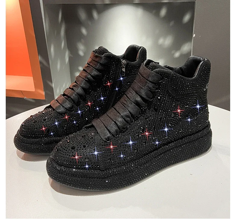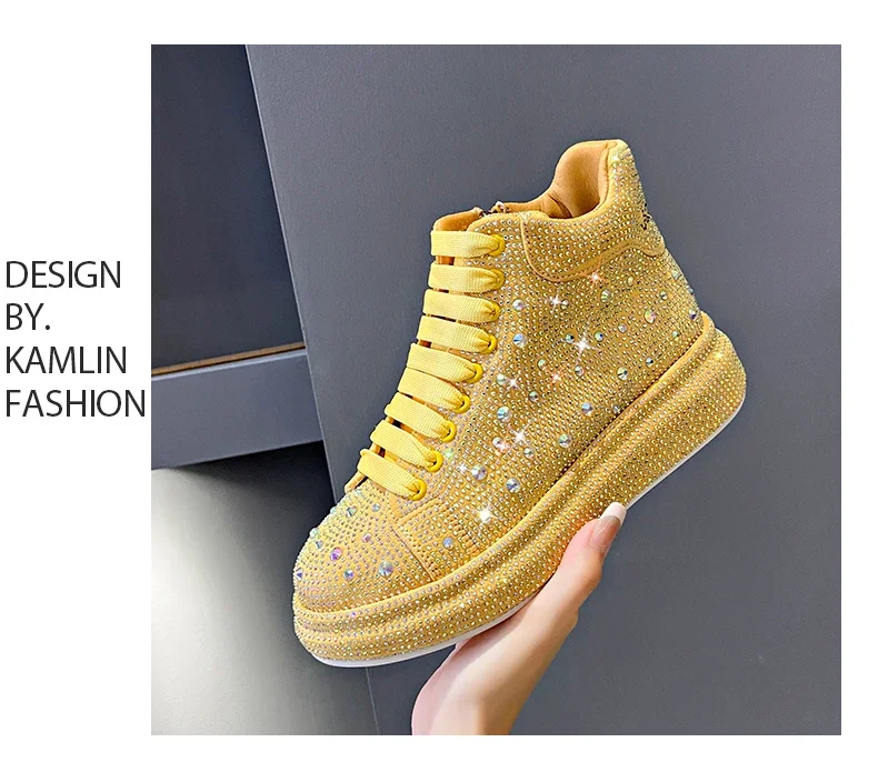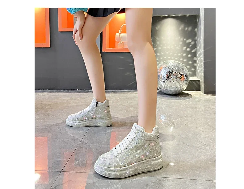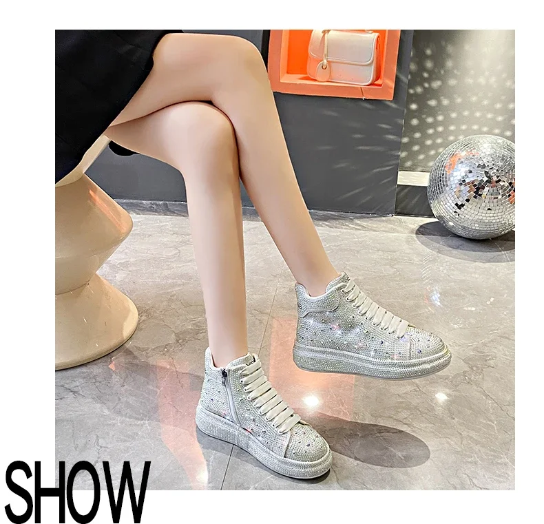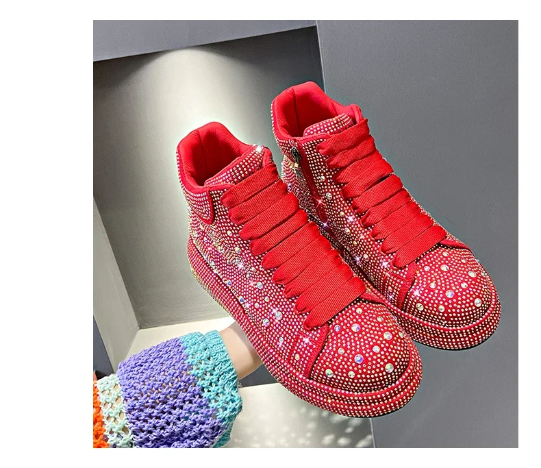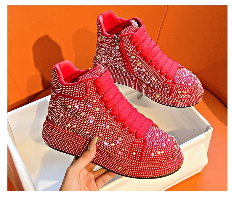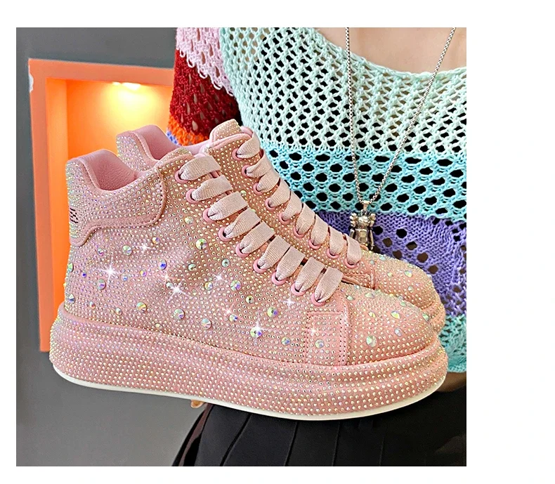 2024 New Luxury Designer Sneakers Full Diamond Shoes Versatile Thick Sole Water Diamond Casual Skateboard Shoes zapatos de mujer