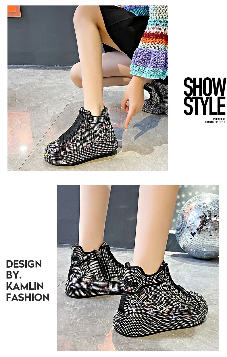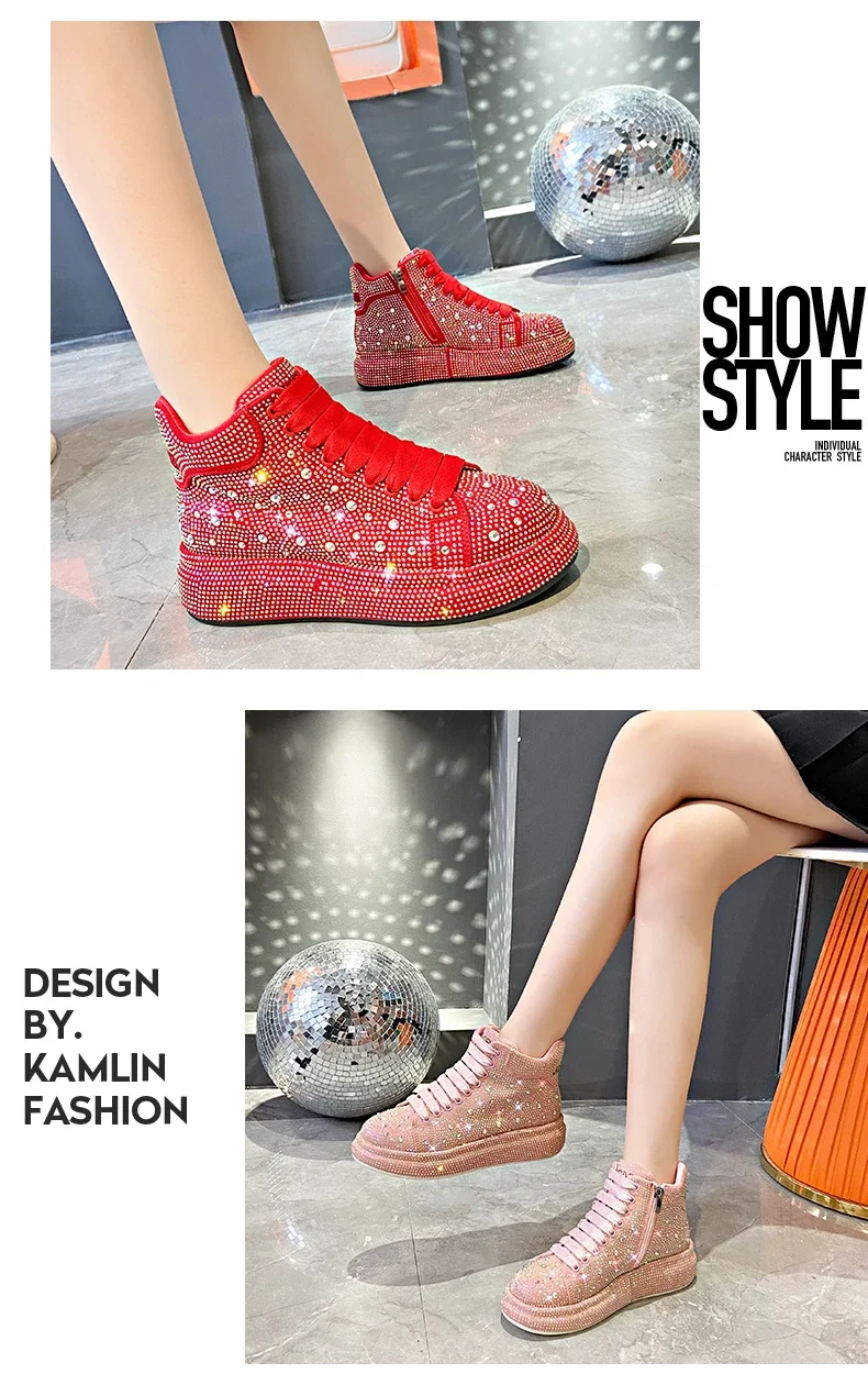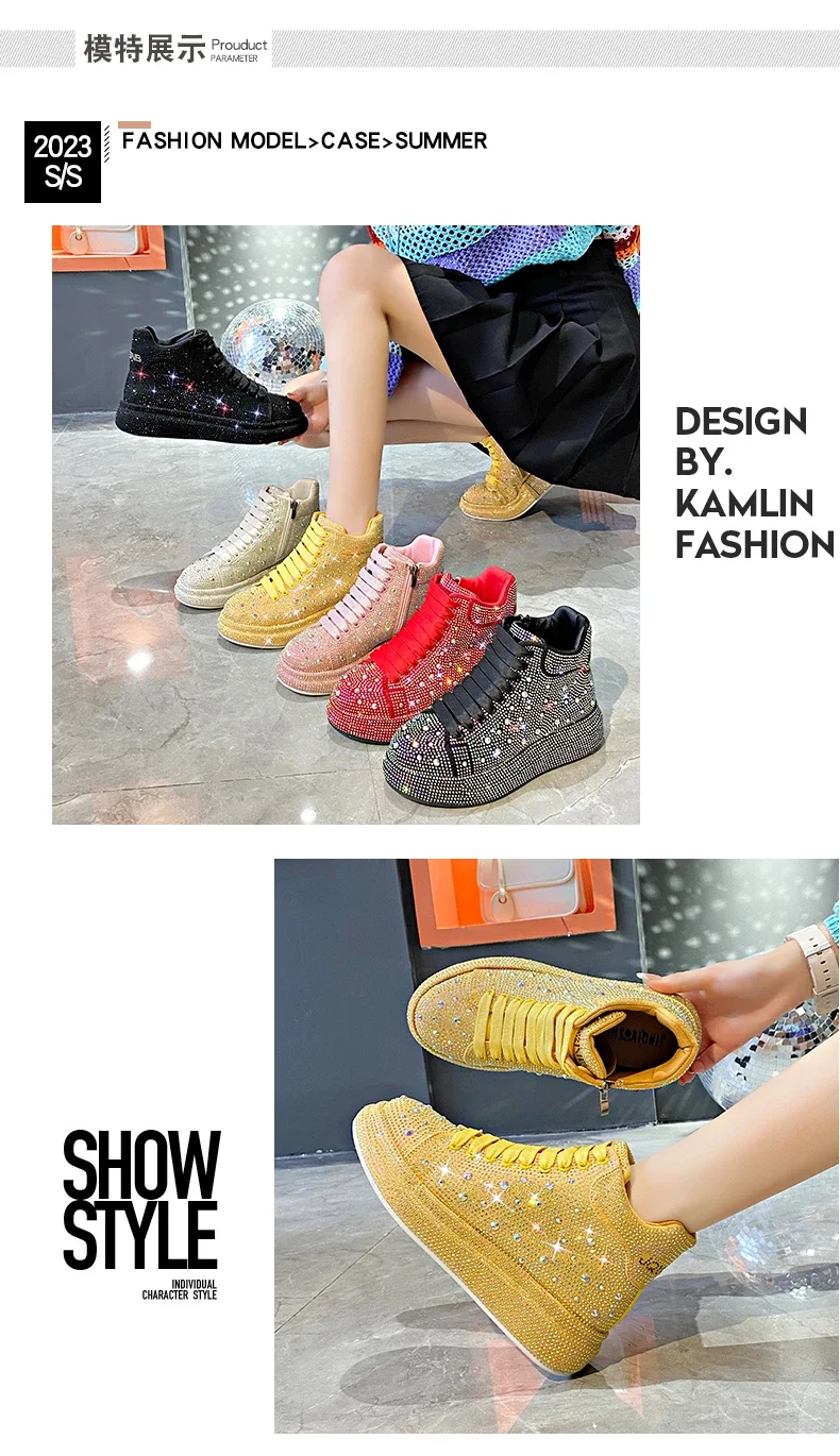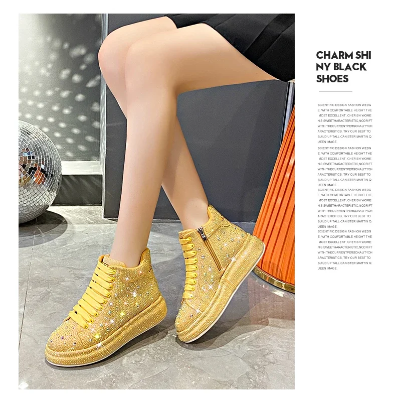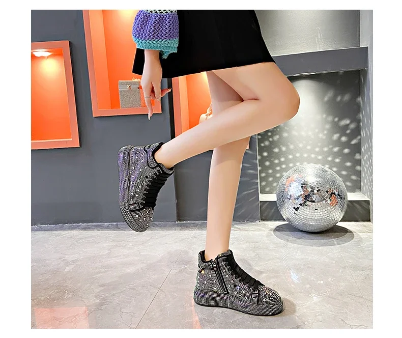 2024 New Luxury Designer Sneakers Full Diamond Shoes Versatile Thick Sole Water Diamond Casual Skateboard Shoes zapatos de mujer