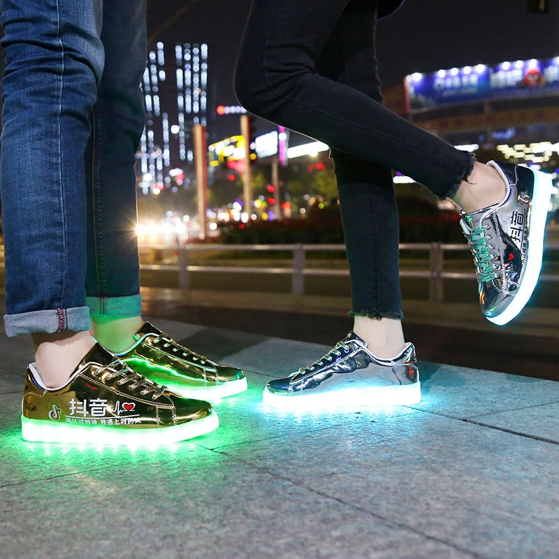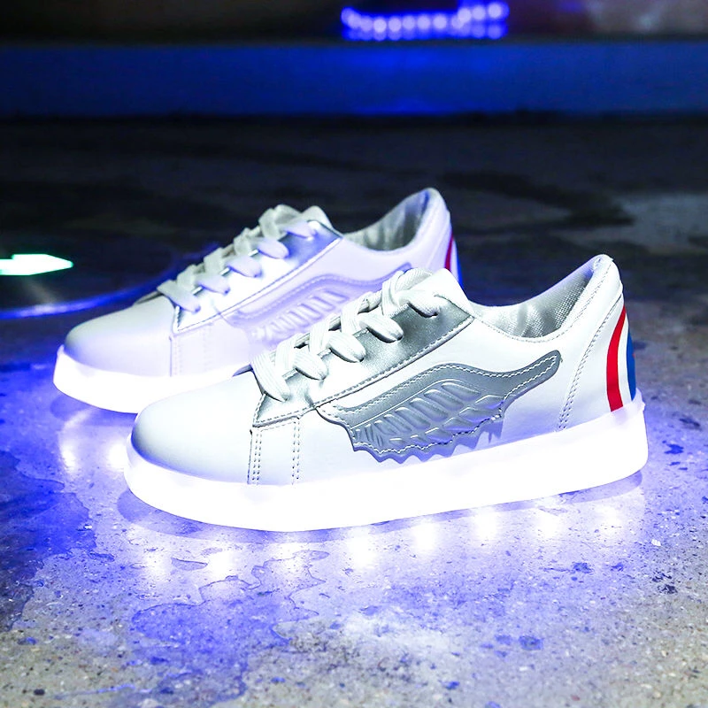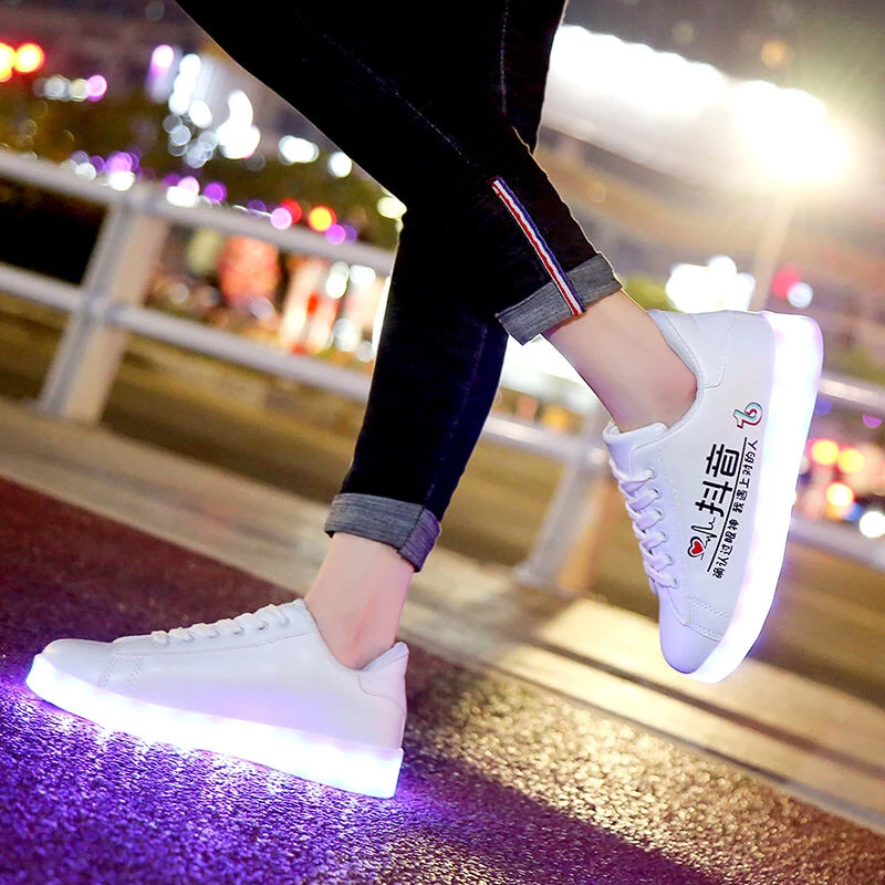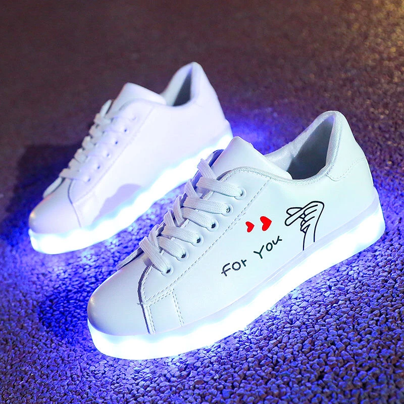 2024 New Usb Rechargeable Luminous with Lights for Women Men LED Shoes with Lighted up sole Adults lady Love pattern White