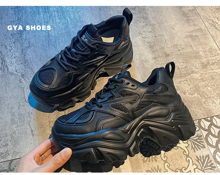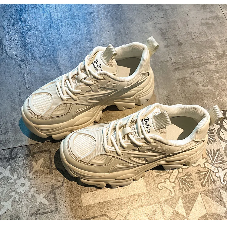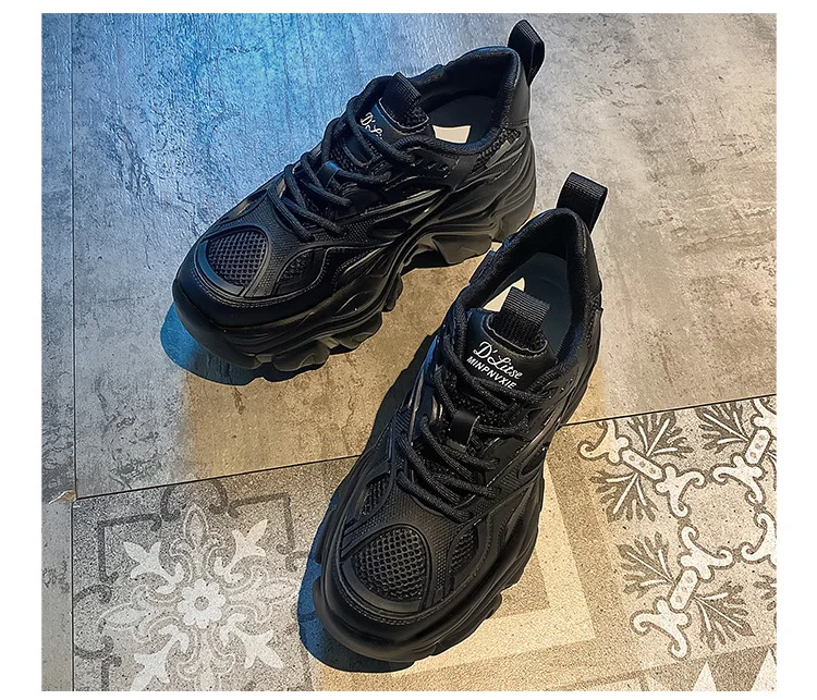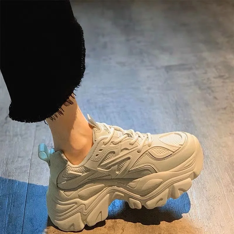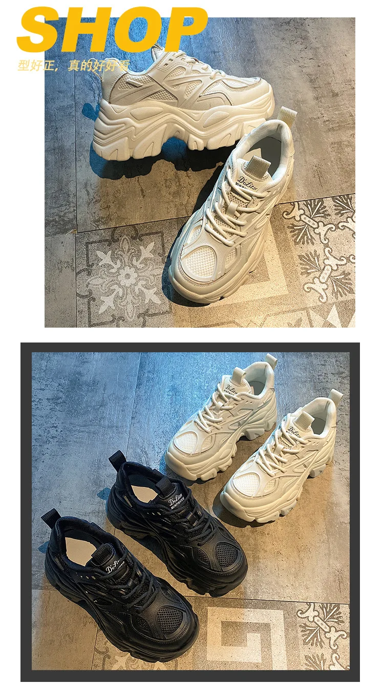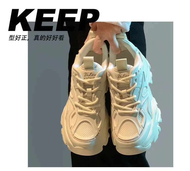 2024 Spring New Fashionable Pure Leather Strap Thick soled Sports Shoes with Height Increasing Casual Shoes platform sneakers
