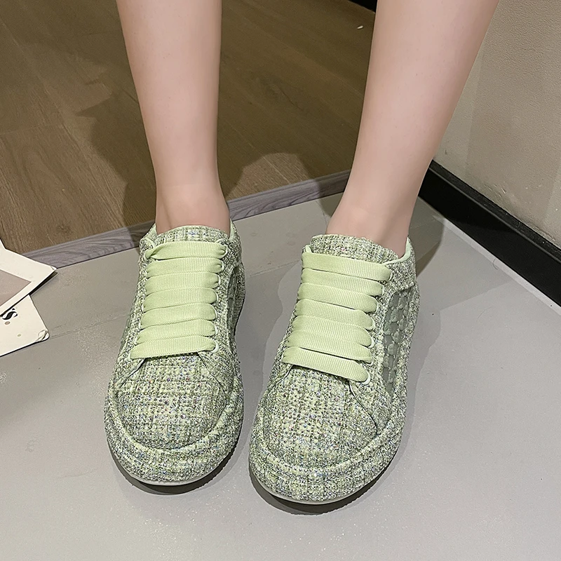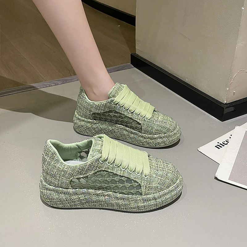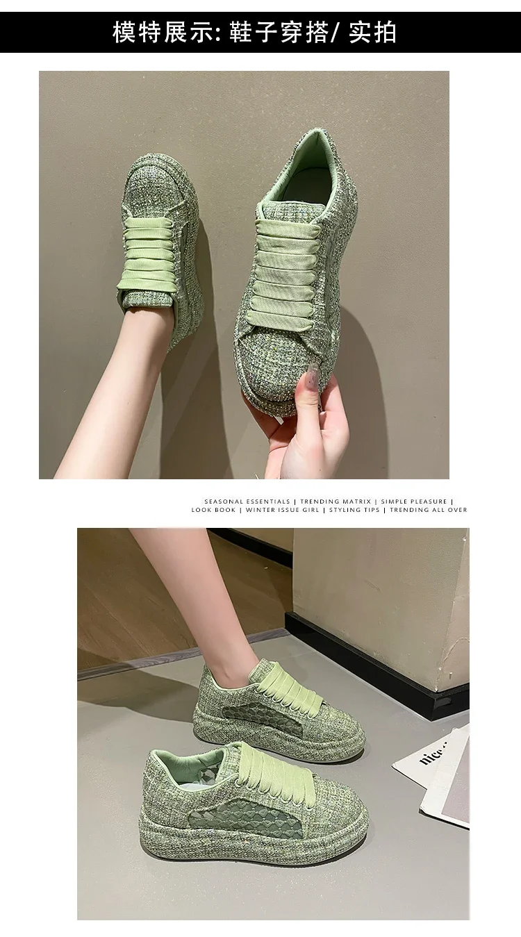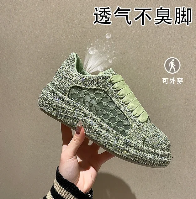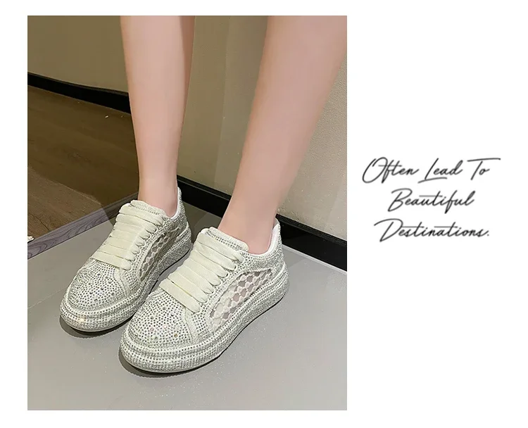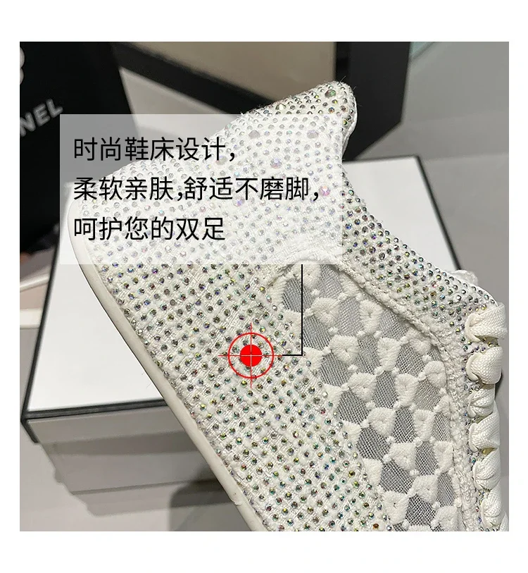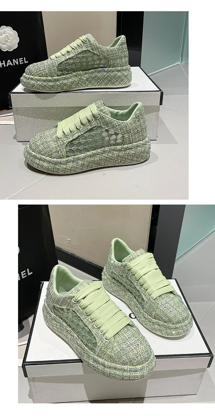 2024 Thick soled Shining Women’s Sports Shoes Luxury Designer Water Diamond Flat Shoes High quality Fashion Casual Shoes