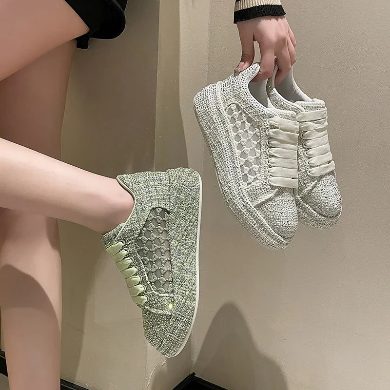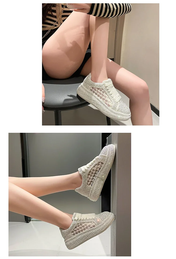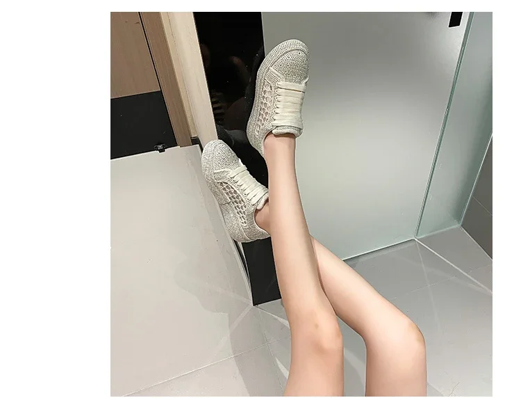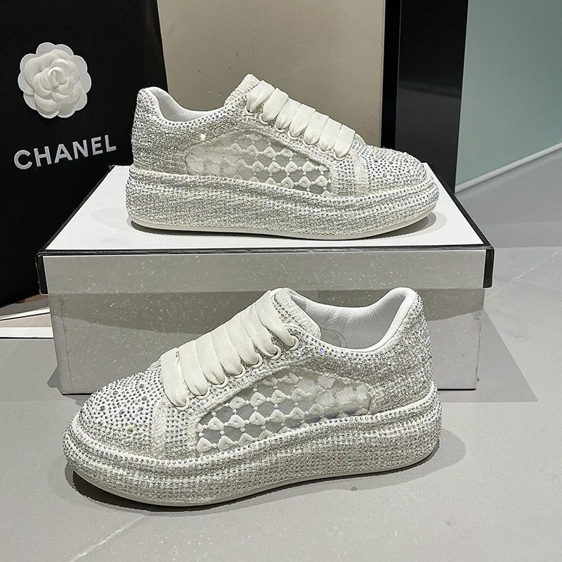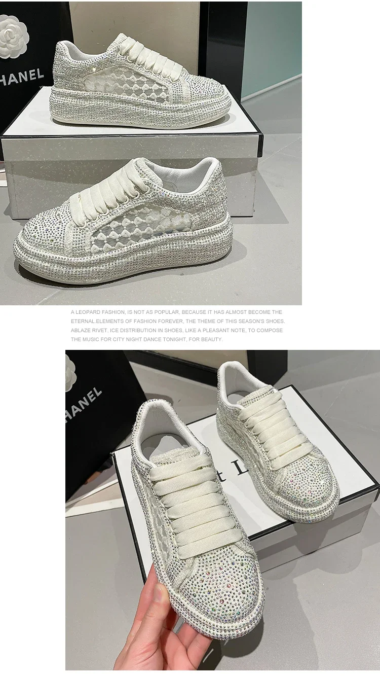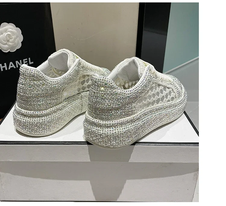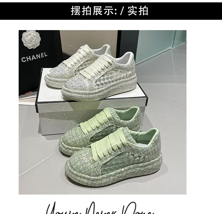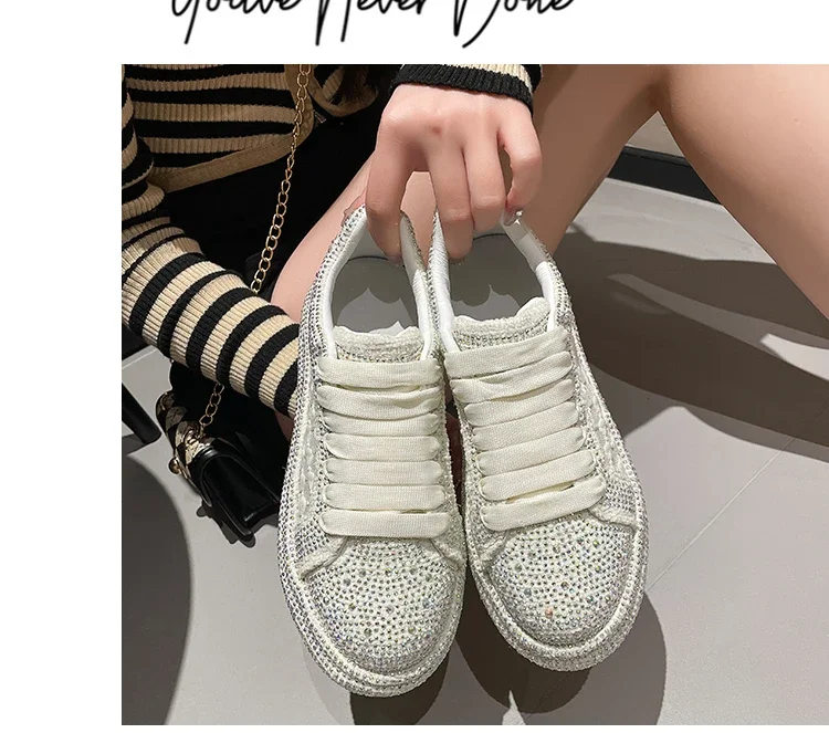 2024 Thick soled Shining Women's Sports Shoes Luxury Designer Water Diamond Flat Shoes High quality Fashion Casual Shoes