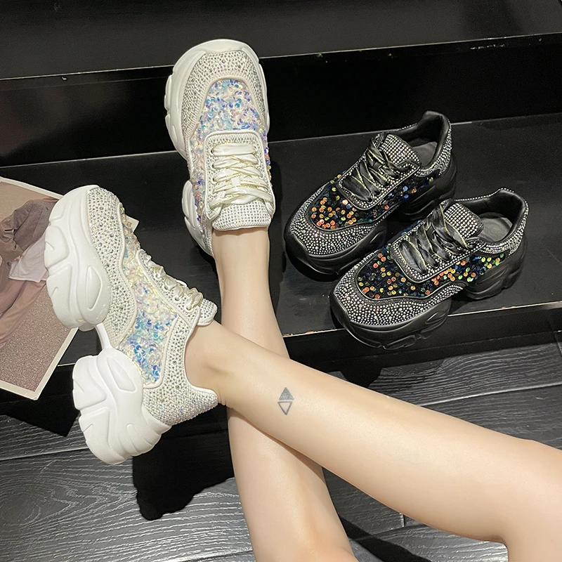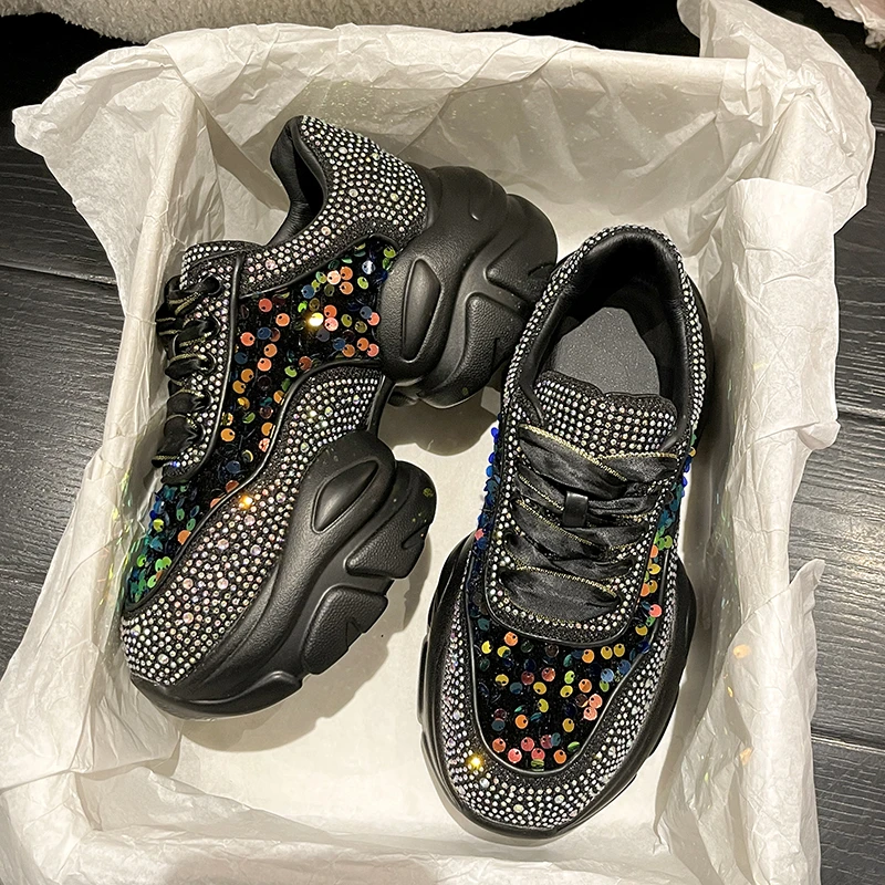 2025 Designer Sports Shoes Lace Water Diamond Women’s Casual Shoes Luxury Fashion Shining Women’s Shoes zapatillas de deporte