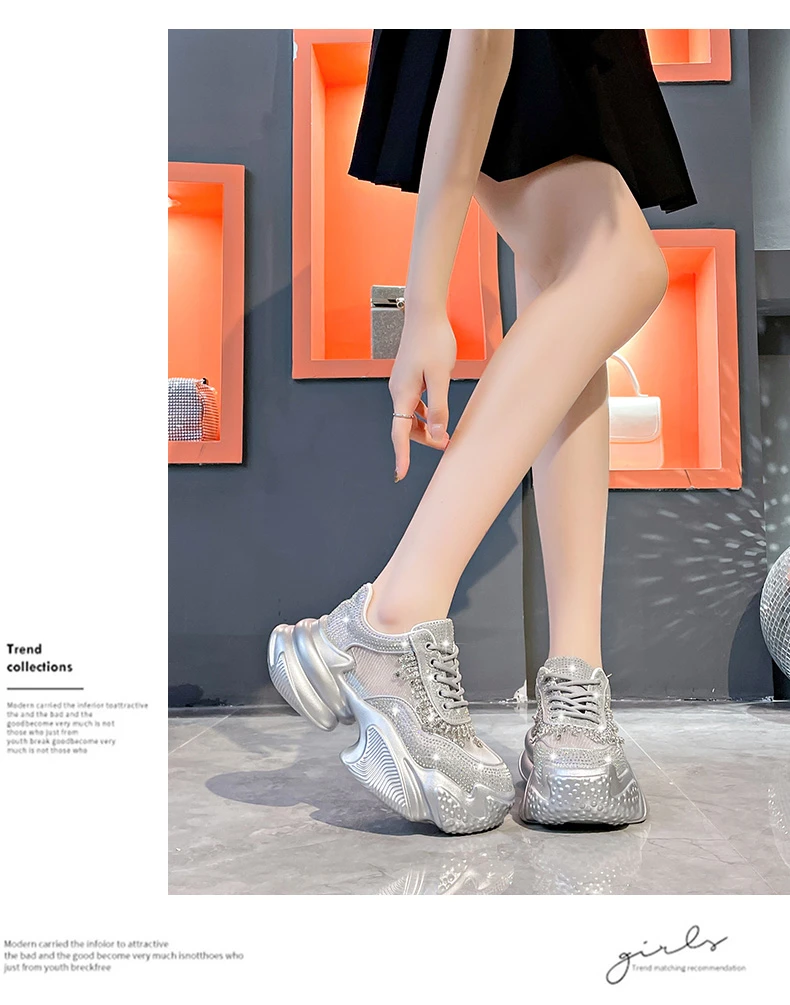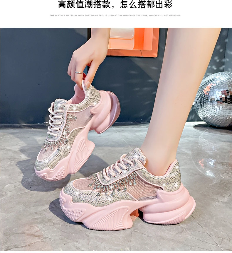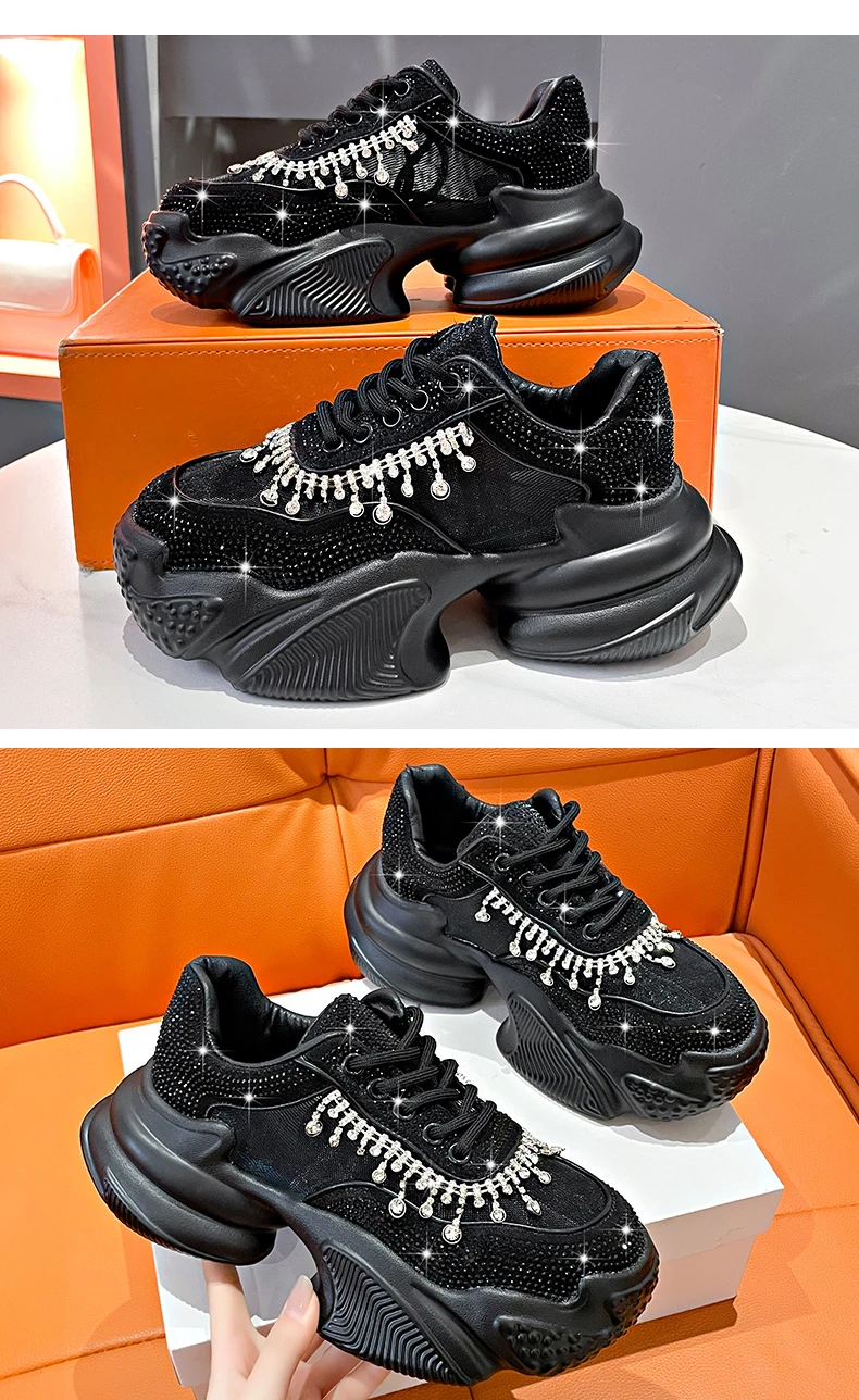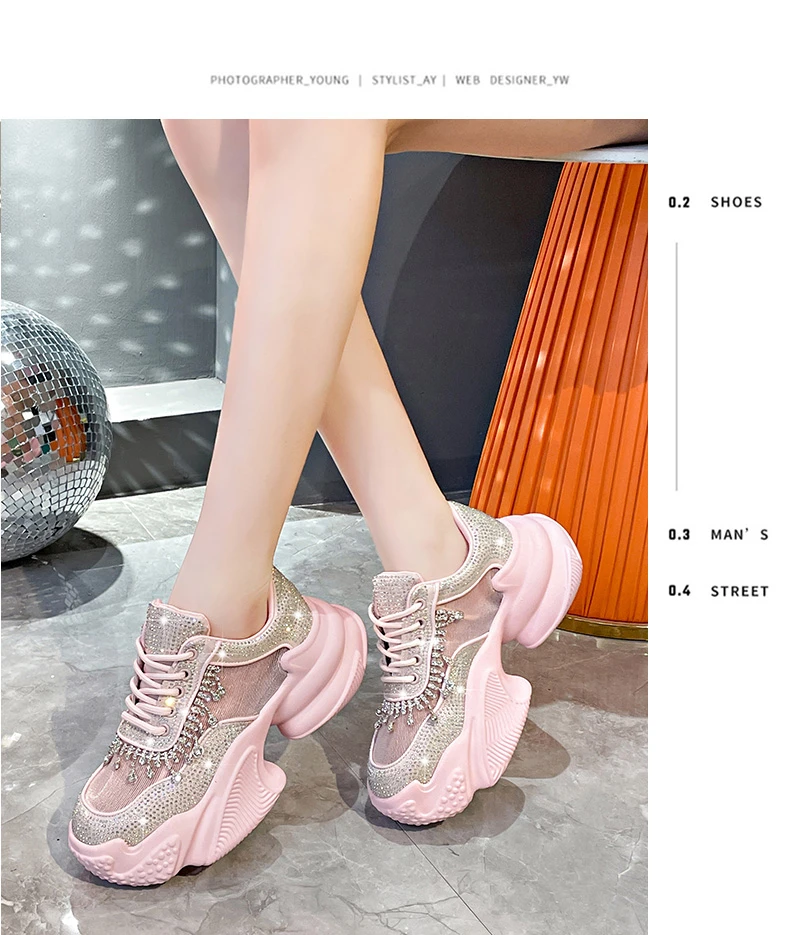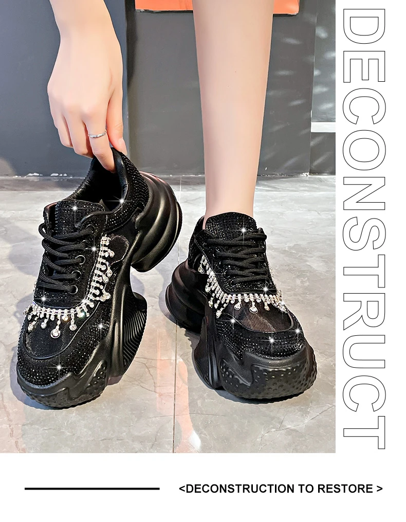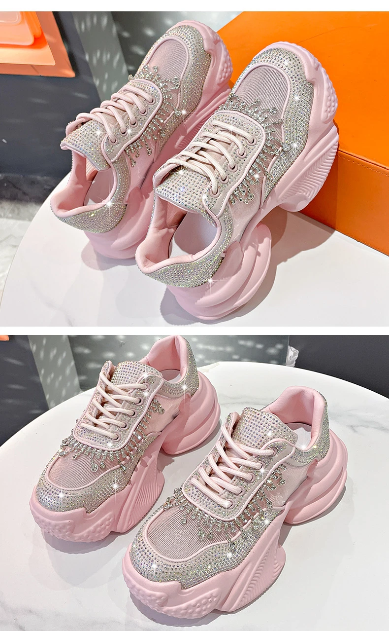 2025 Fashion Luxury Women’s Shoes New Rhinestone Womens Sneakers Diamond Breathable Designer Casual Platform Shoes Zapatos Mujer
