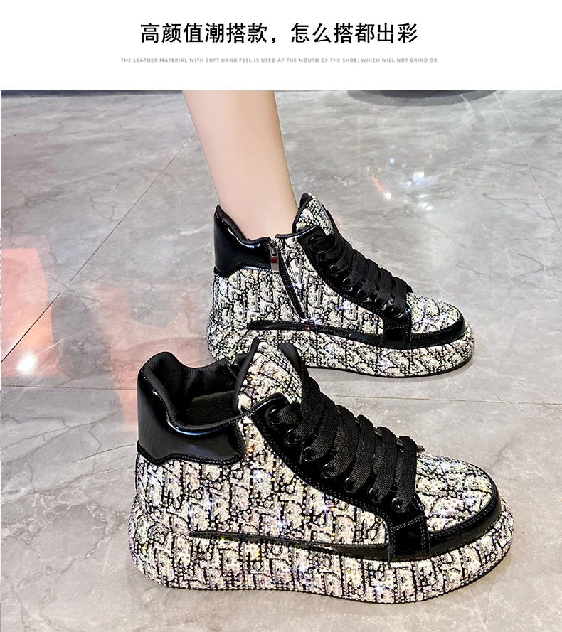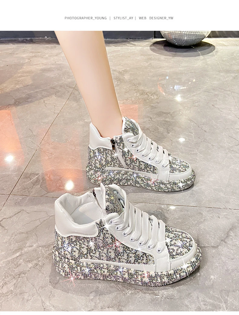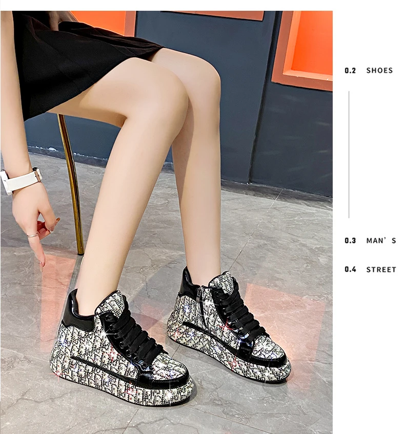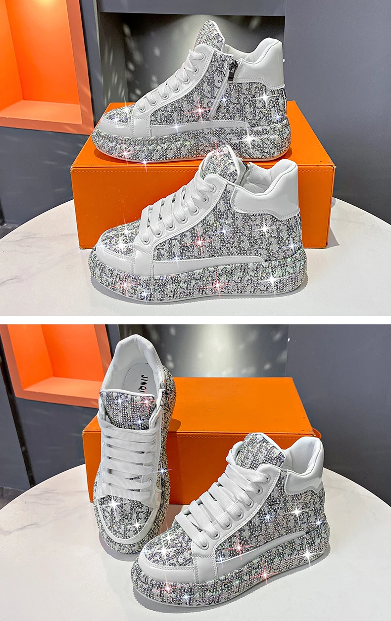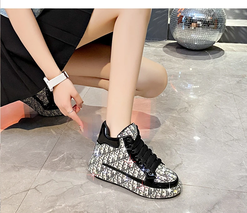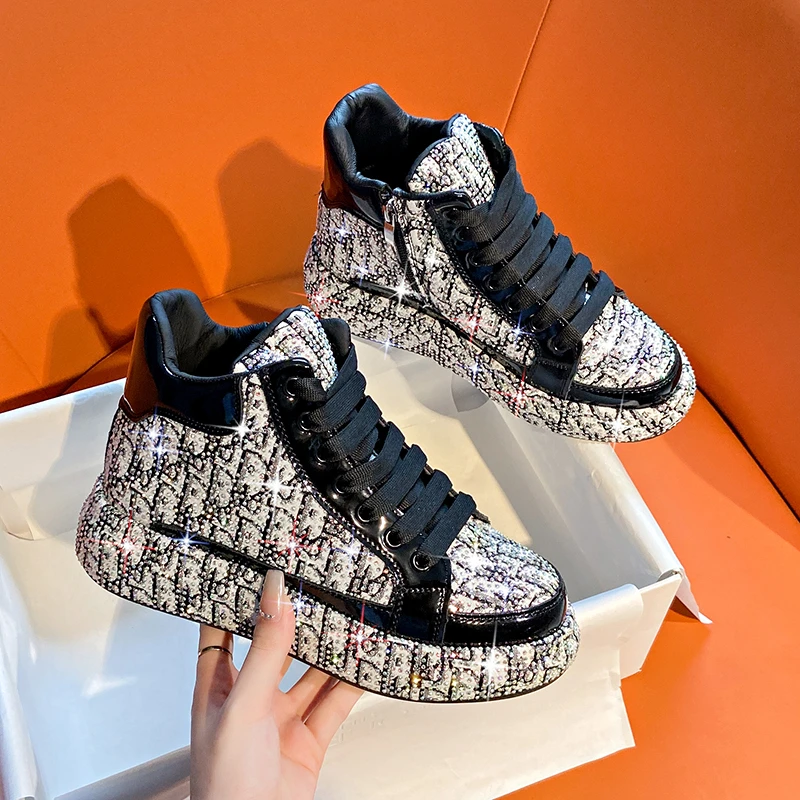 2025 Luxury Women’s Sports Shoes New Printed Embroidery Designer Water Diamond Sports Shoes Shining Thick soled Vulcanized Shoes