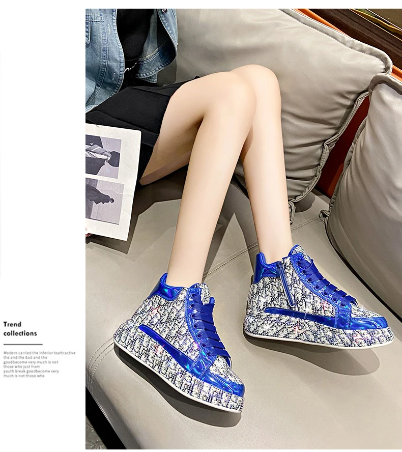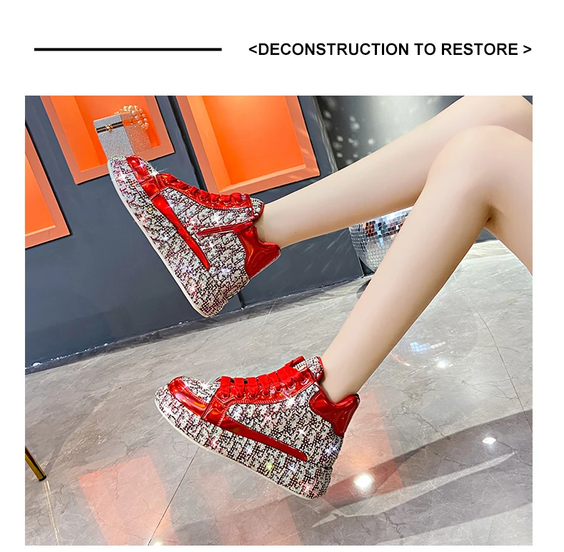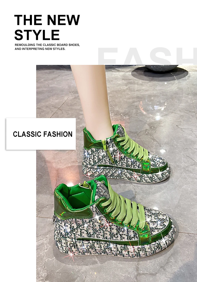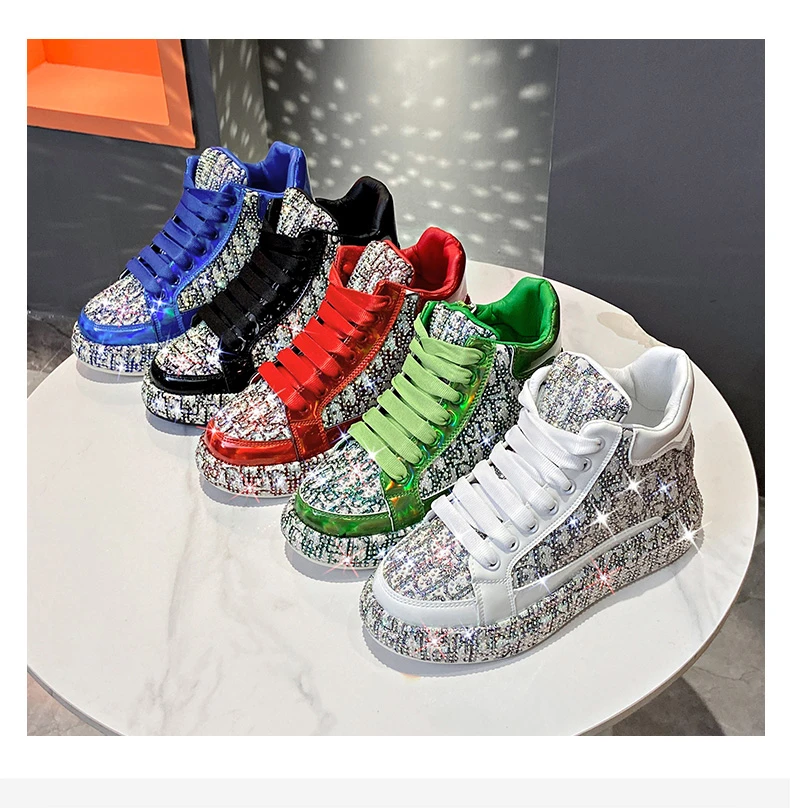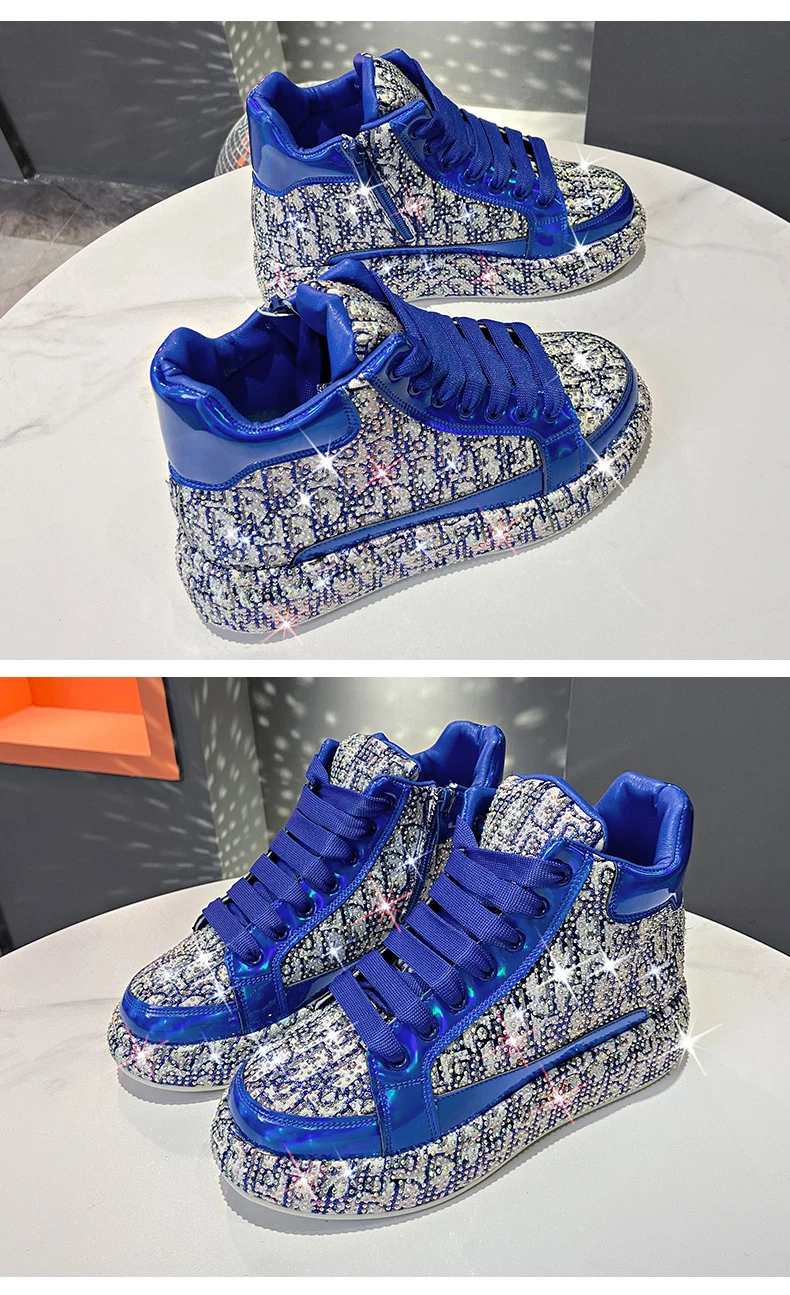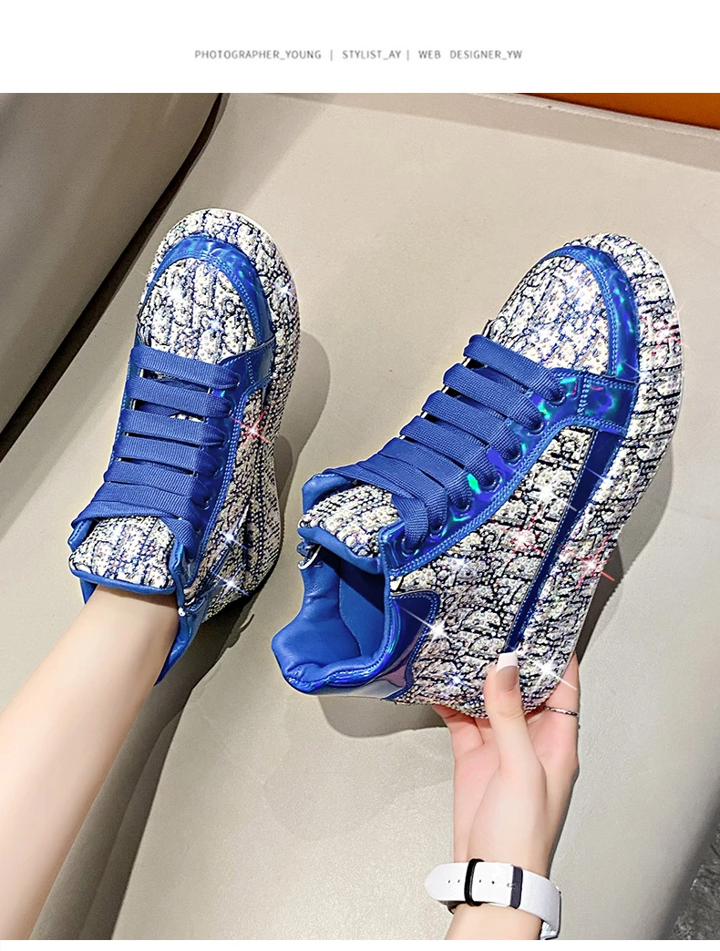 2025 Luxury Women’s Sports Shoes New Printed Embroidery Designer Water Diamond Sports Shoes Shining Thick soled Vulcanized Shoes