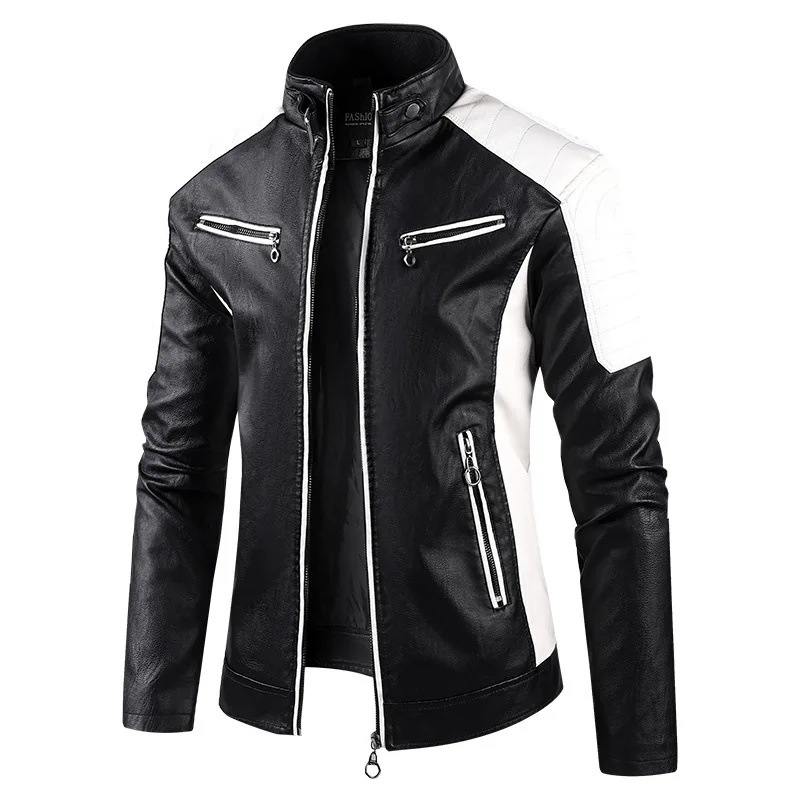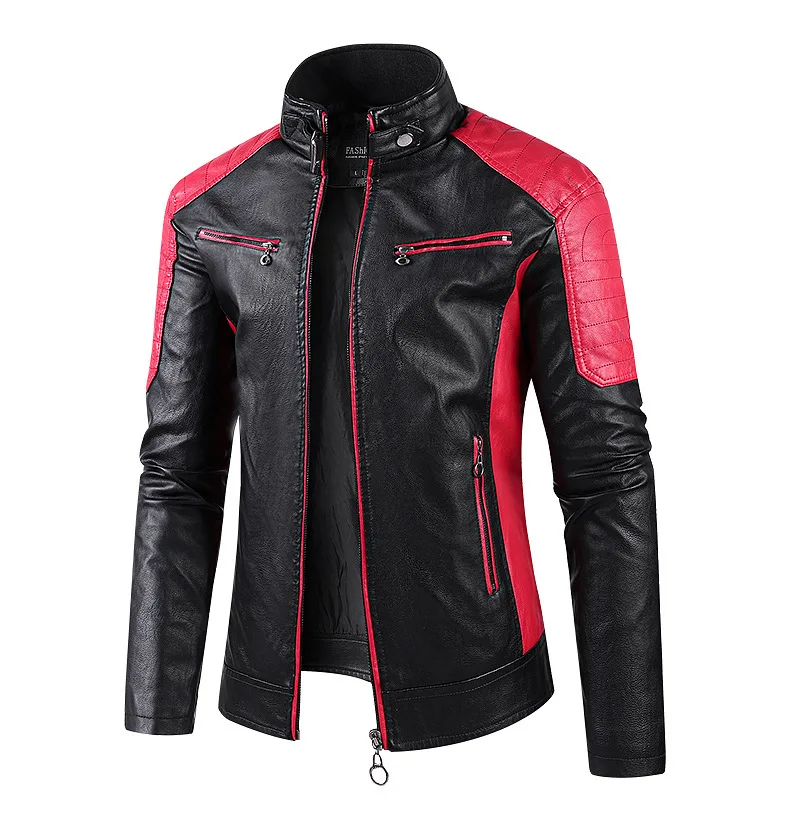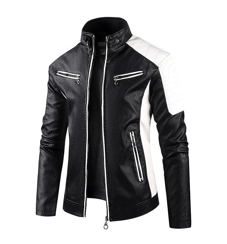 跨境外贸男装皮衣插色立领PU皮机车服外套春秋季薄款休闲皮夹克男