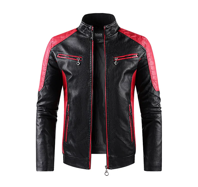 2025 New Color Blocked Stand Up Collar PU Leather Motorcycle Bike Jackets for Men,multi-color Spring Autumn Thin Casual PU Coat