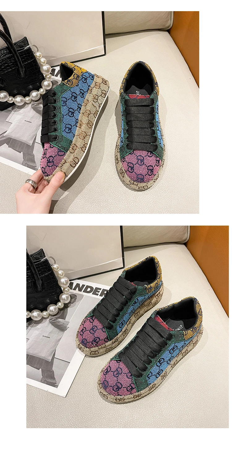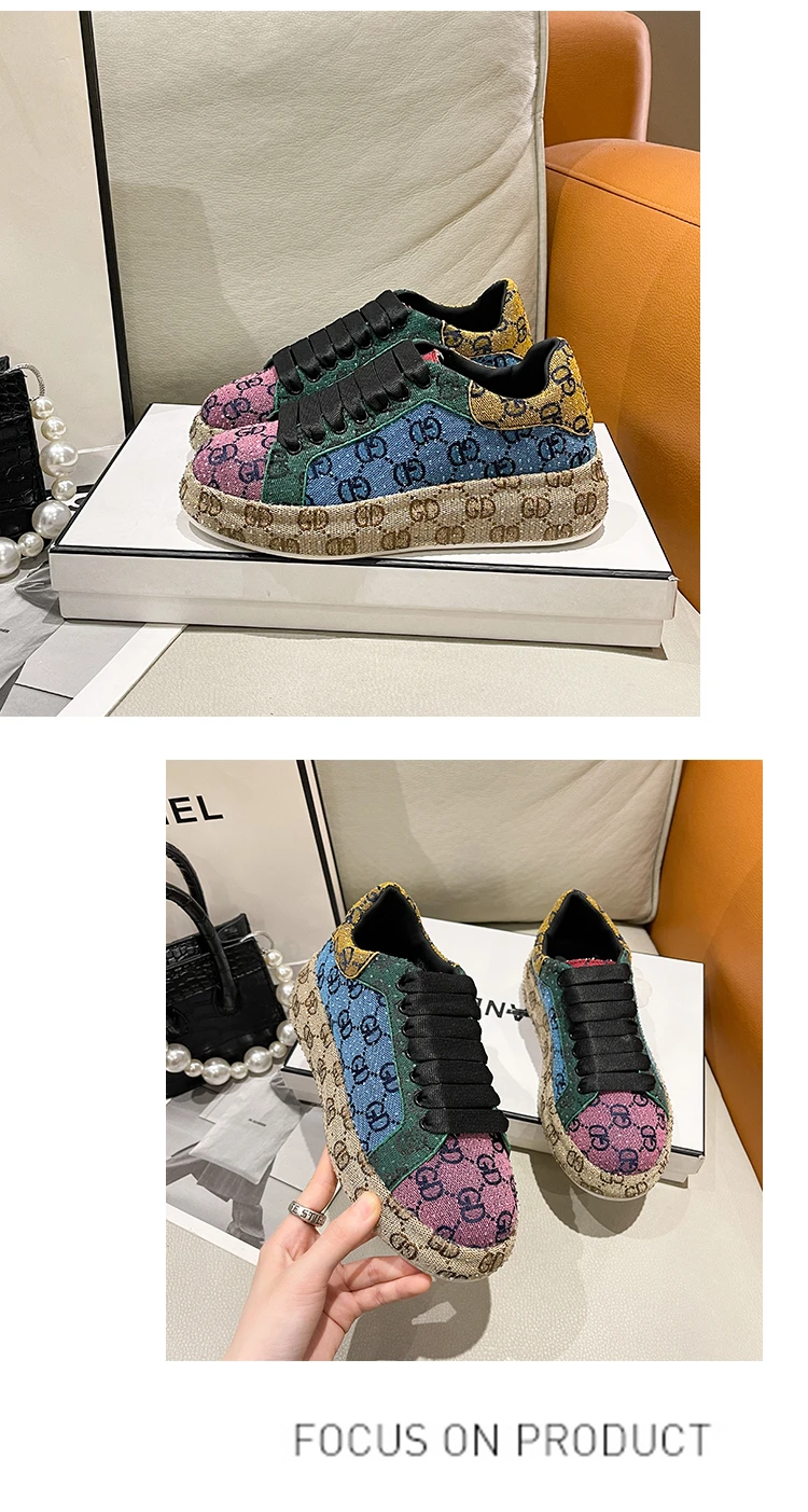 2025 New Khaki Full Diamond Women Sports Shoes Fashion Luxury Platform Casual Shoes Women’s Party Designer Shining Women’s Shoes
