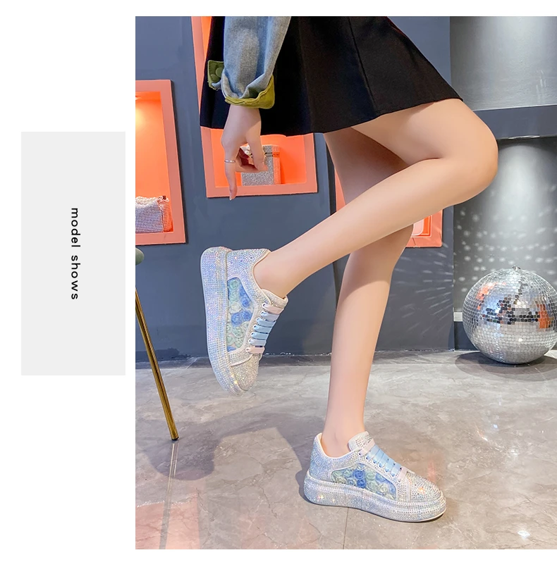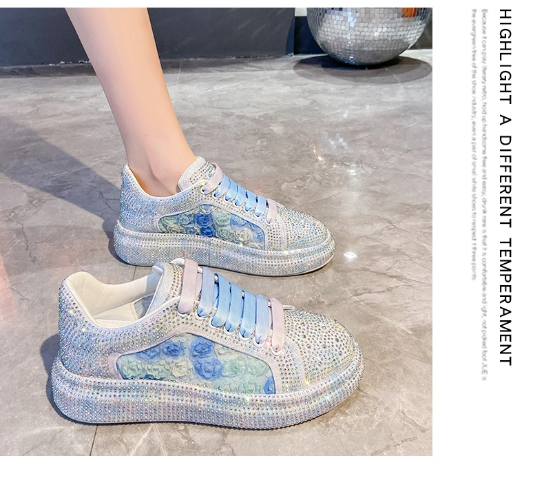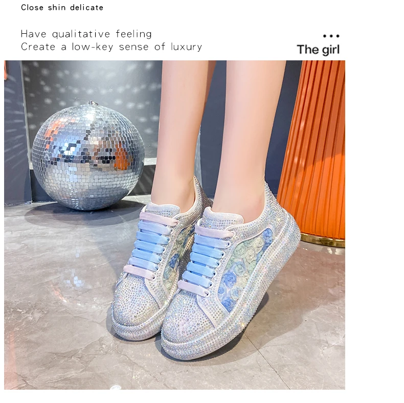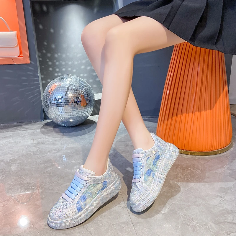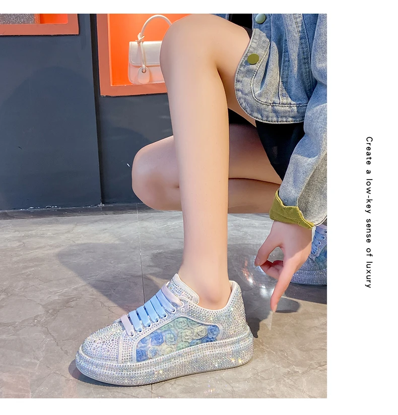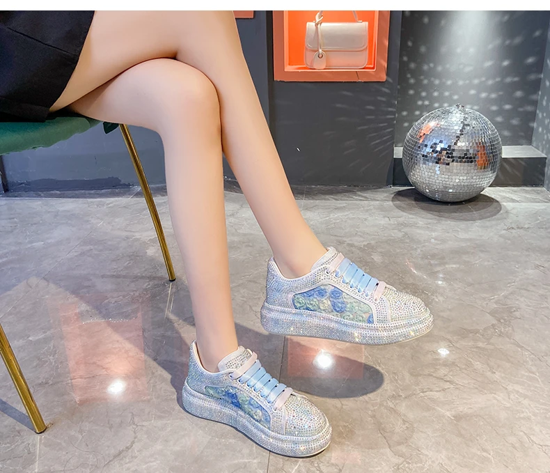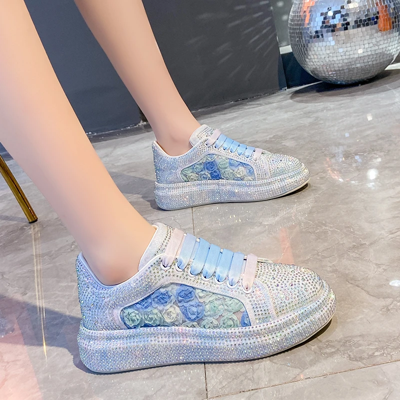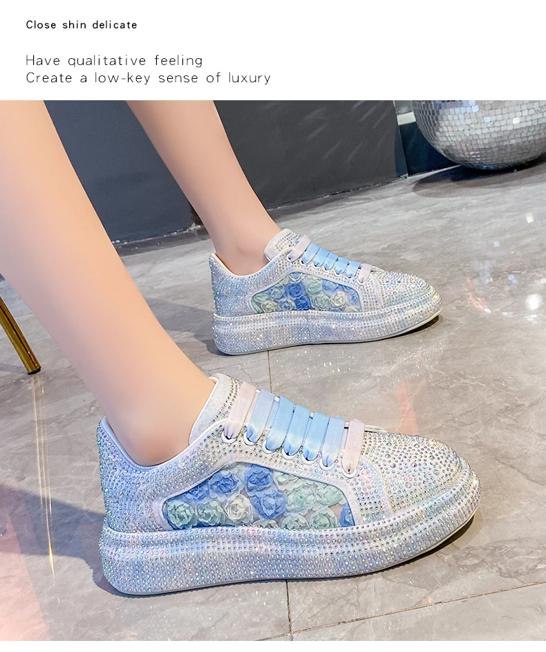 2025 Spring Autumn Women’s Fashion Pink Water Diamond Printed Shoes Luxury Thick soled Sports Shoes Designer Water Diamond Shoes