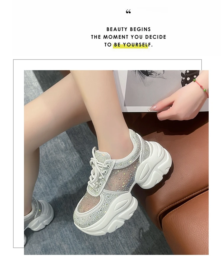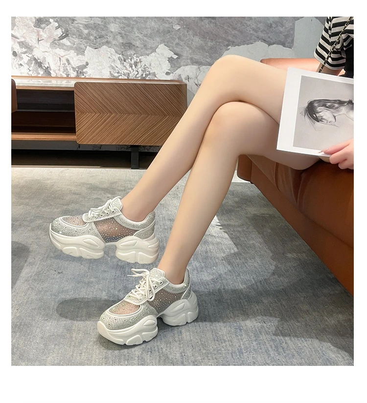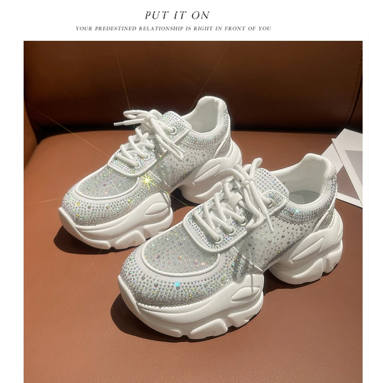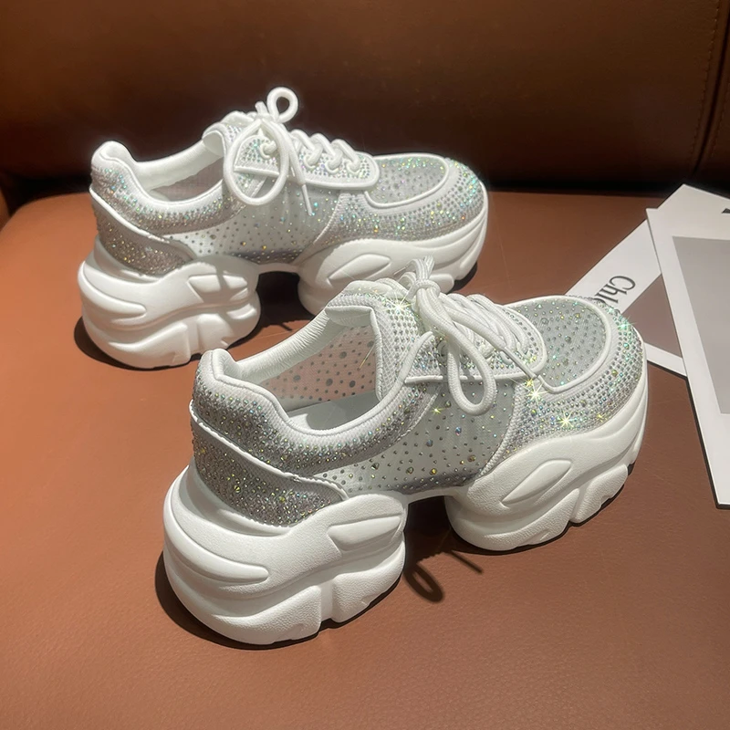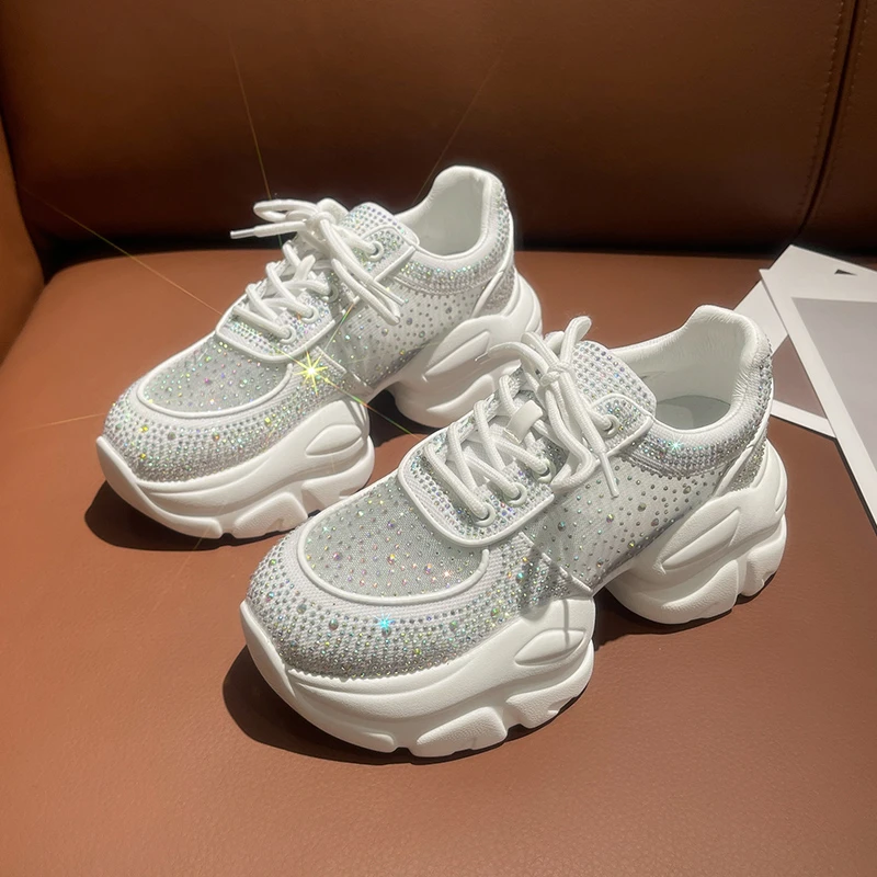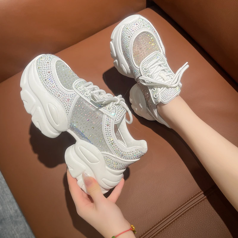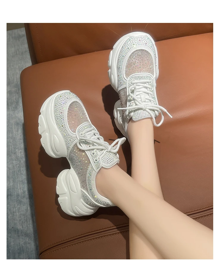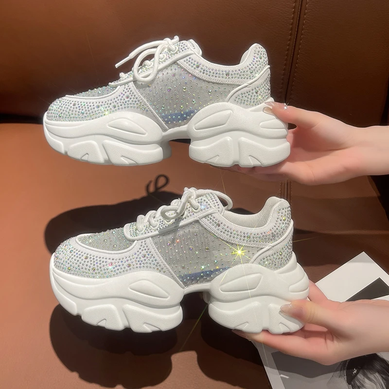 2025 Women’s Designer Anti slip Thick soled Sports Shoes Women’s Mesh Full Diamond Shoes Lace Up Luxury Women’s Vulcanized Shoes