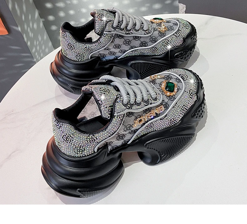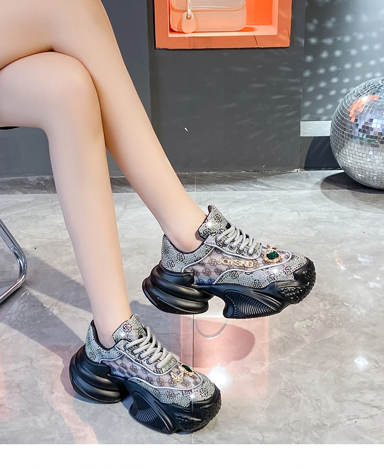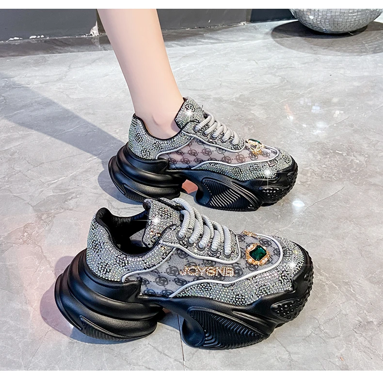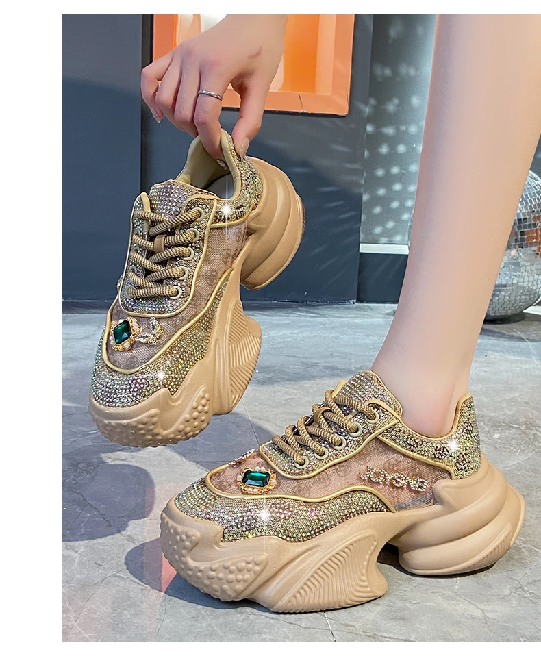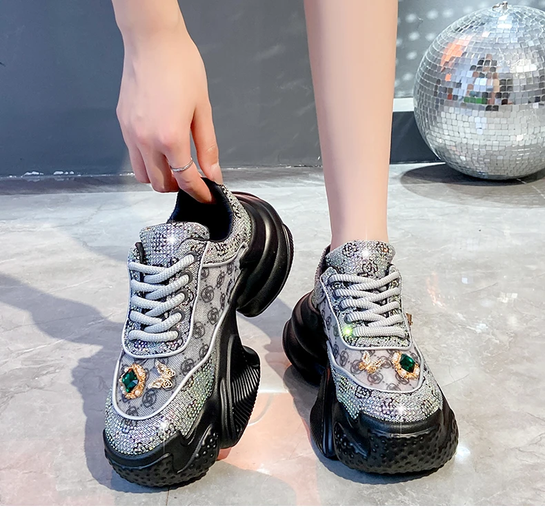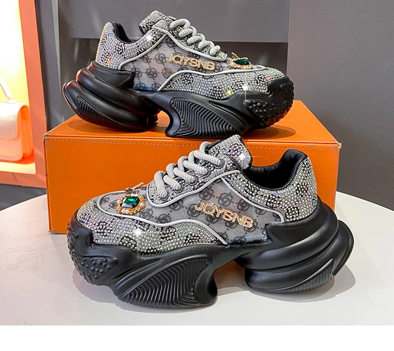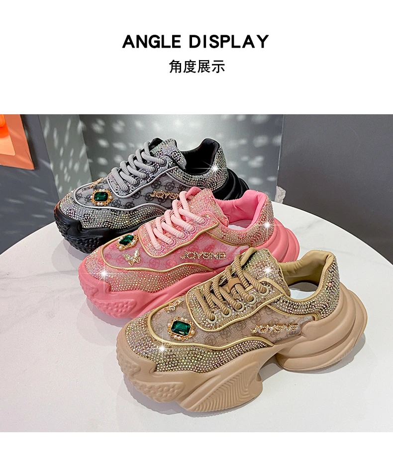 2025 Women’s Luxury Shoes Vulcanized Sports Shoes Shining Water Diamond Thick Bottom Lace Comfortable Designer Casual Shoes