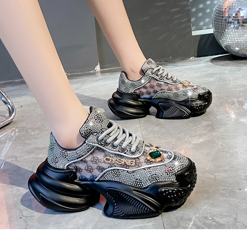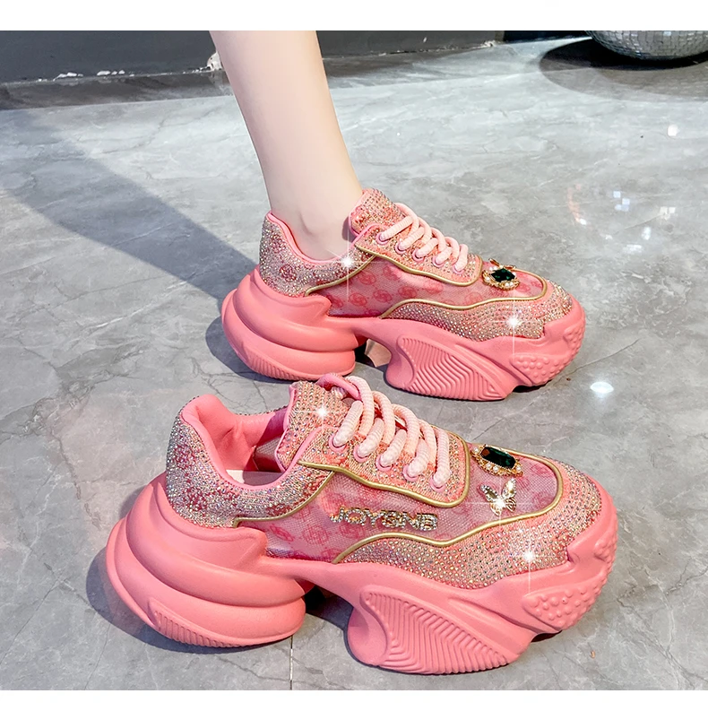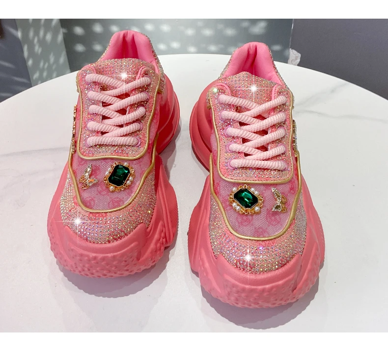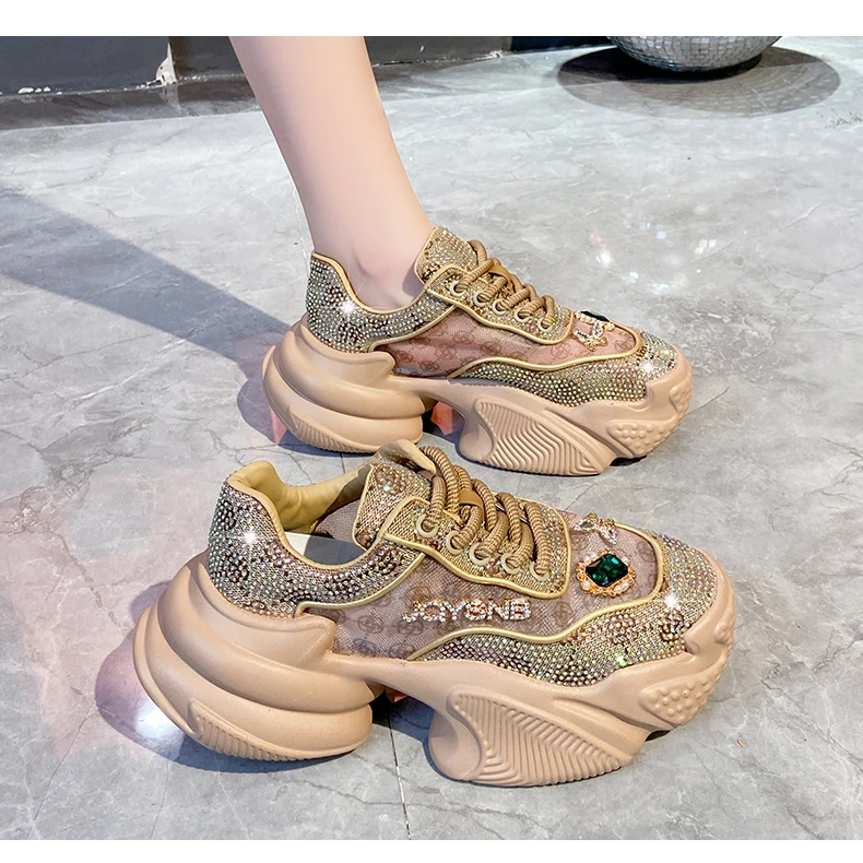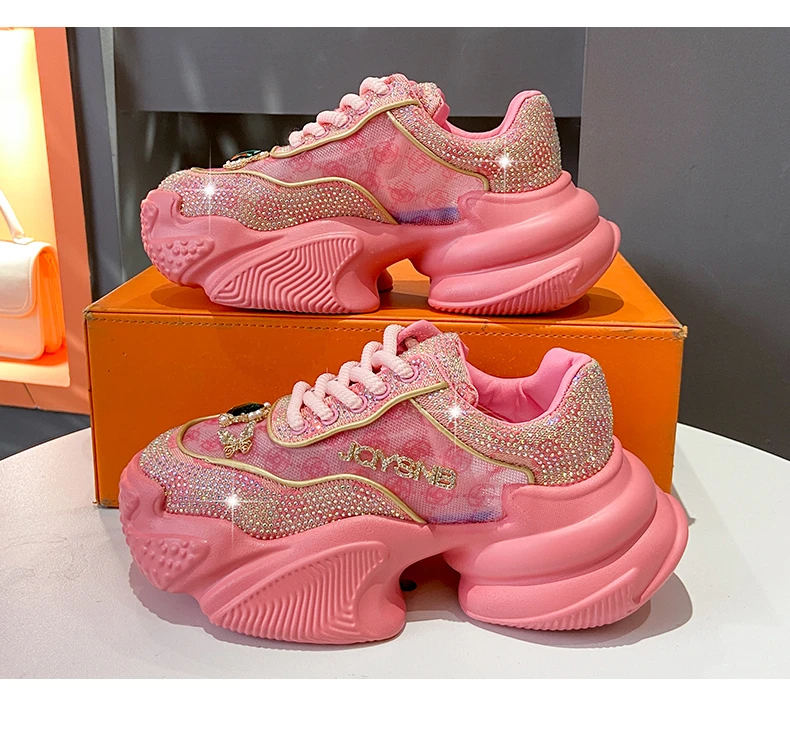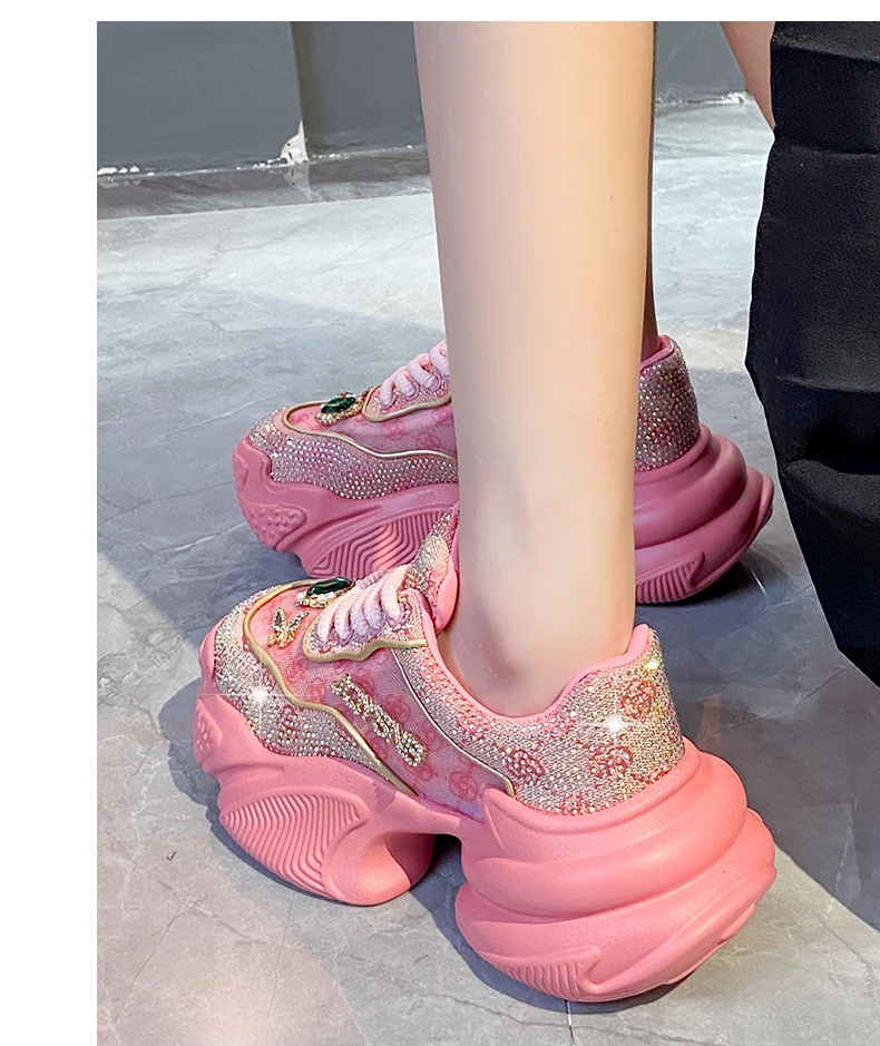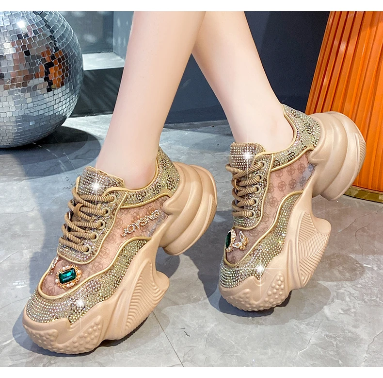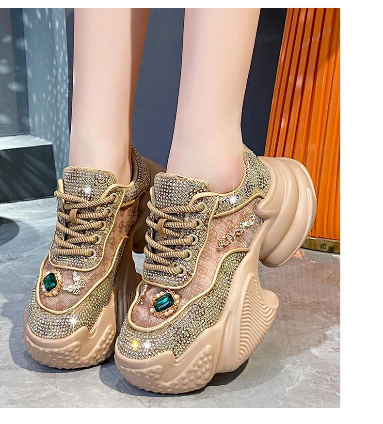 2025 Women’s Luxury Shoes Vulcanized Sports Shoes Shining Water Diamond Thick Bottom Lace Comfortable Designer Casual Shoes