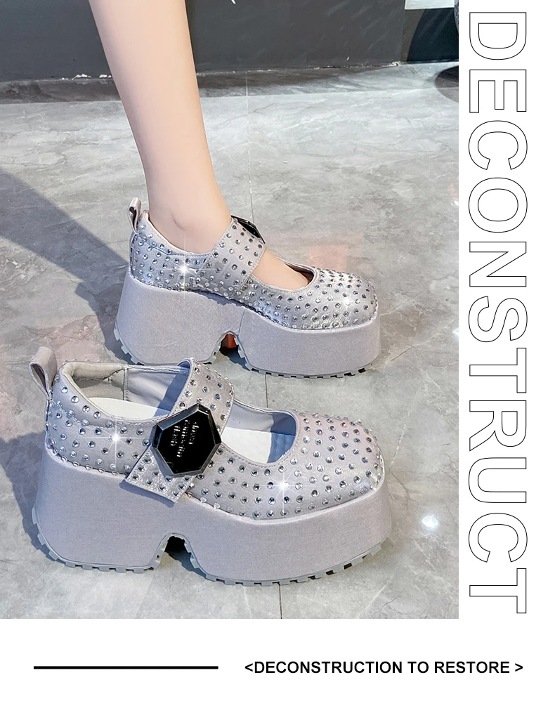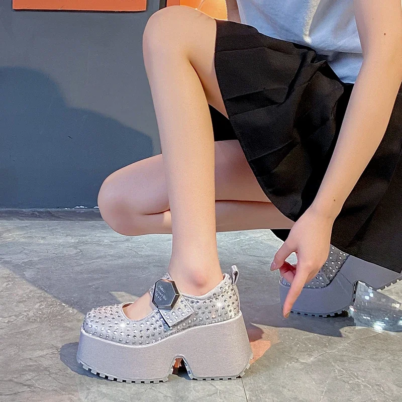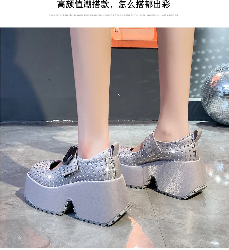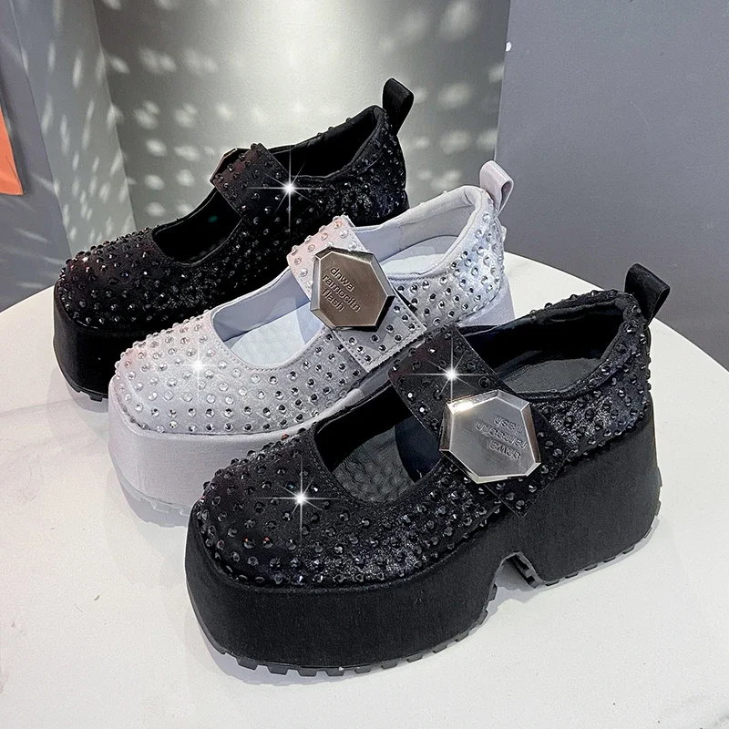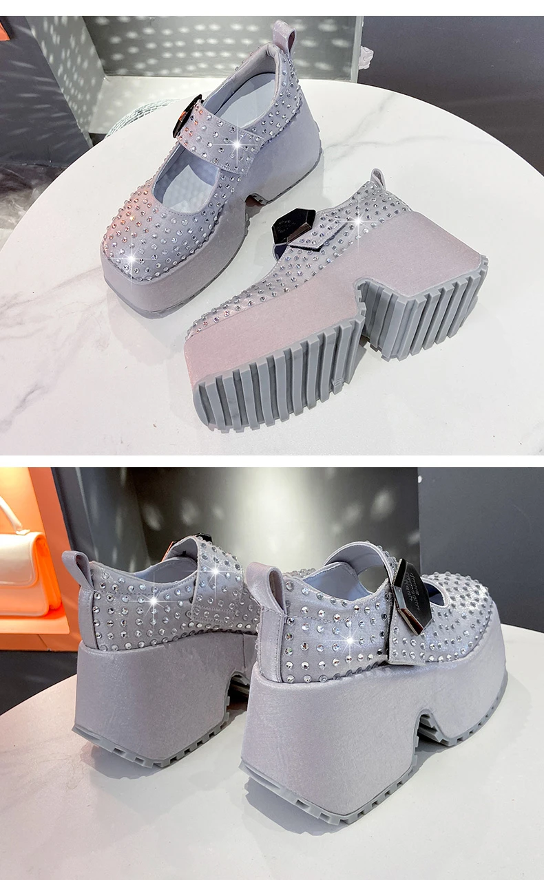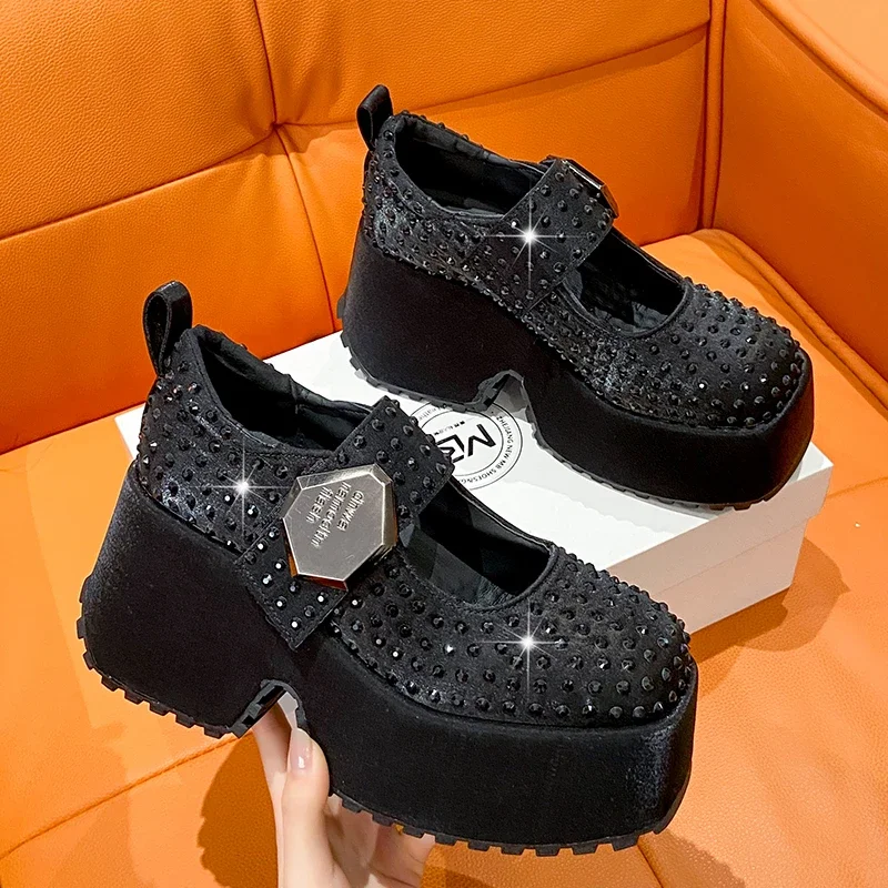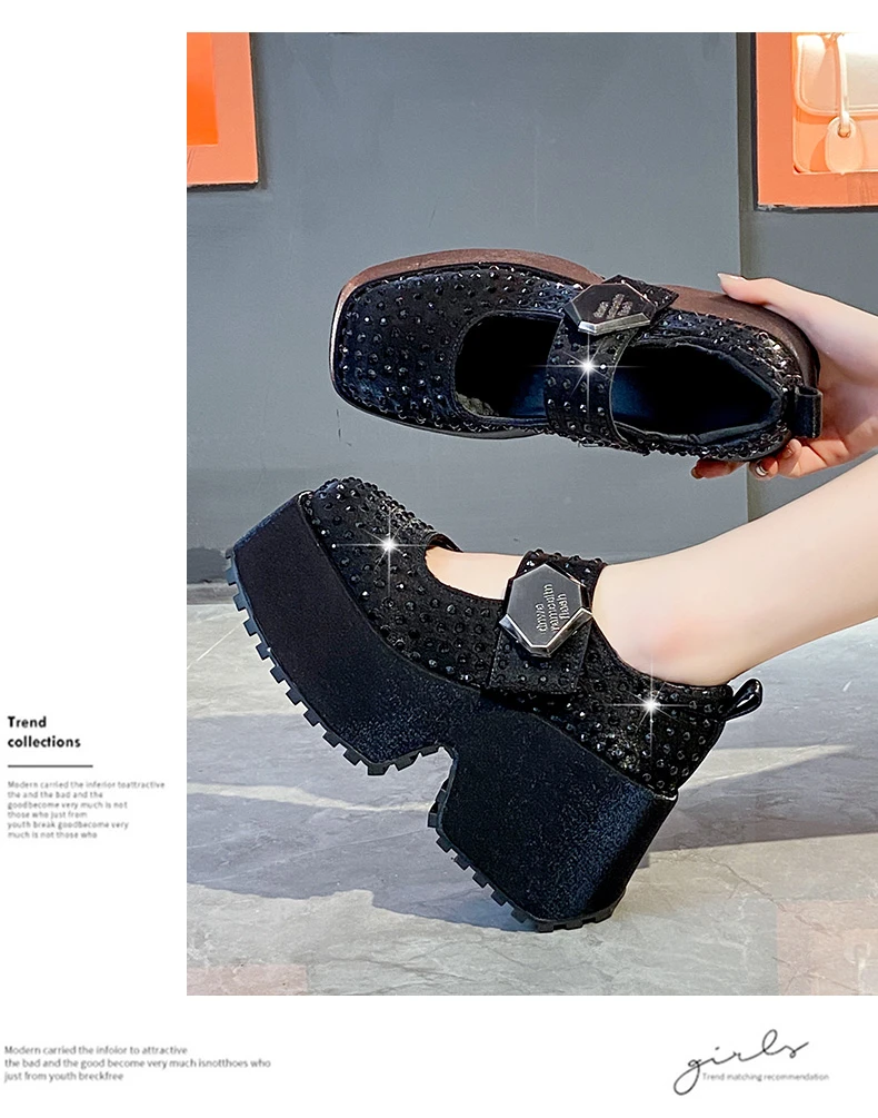 2025 Women’s Square Head Thick Bottom Full Diamond Luxury Thick Bottom Fashion Sports Shoes Comfortable Designer Single Shoes