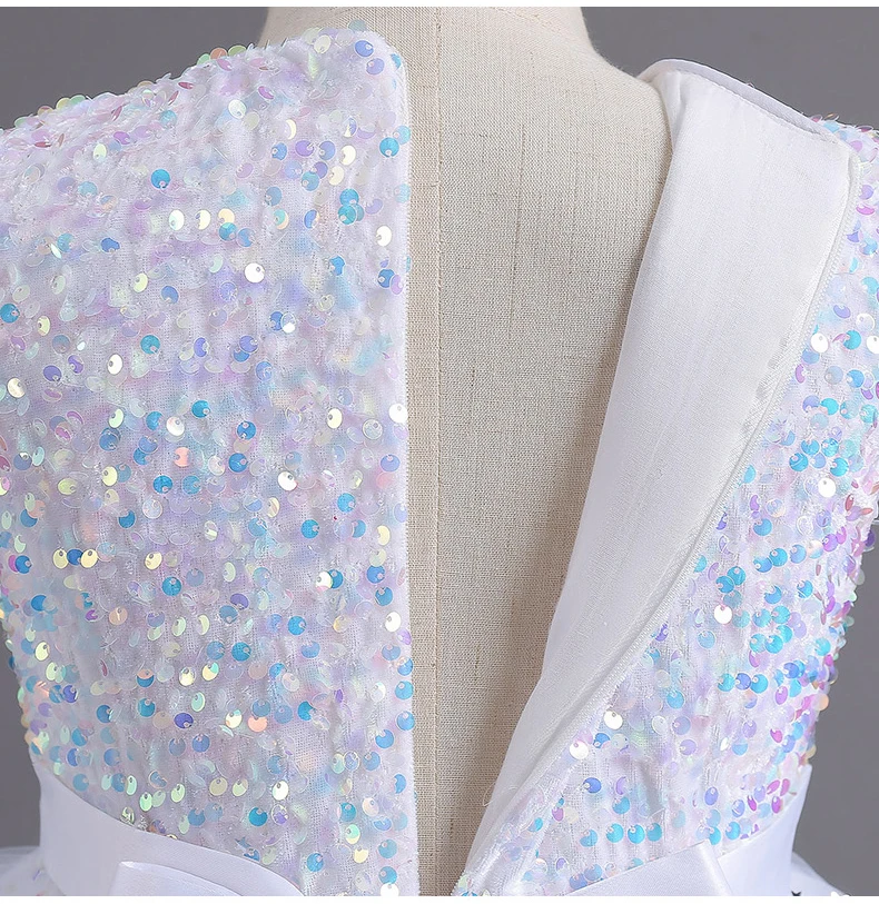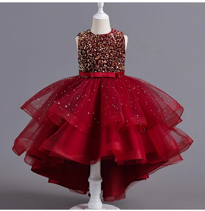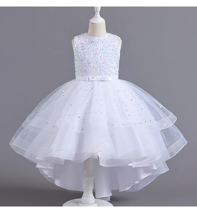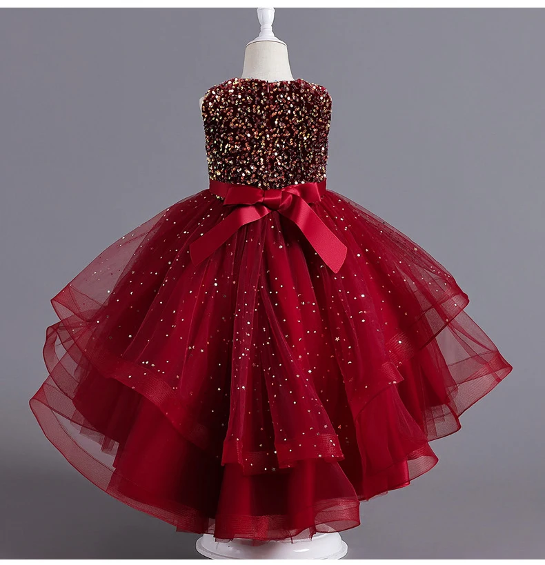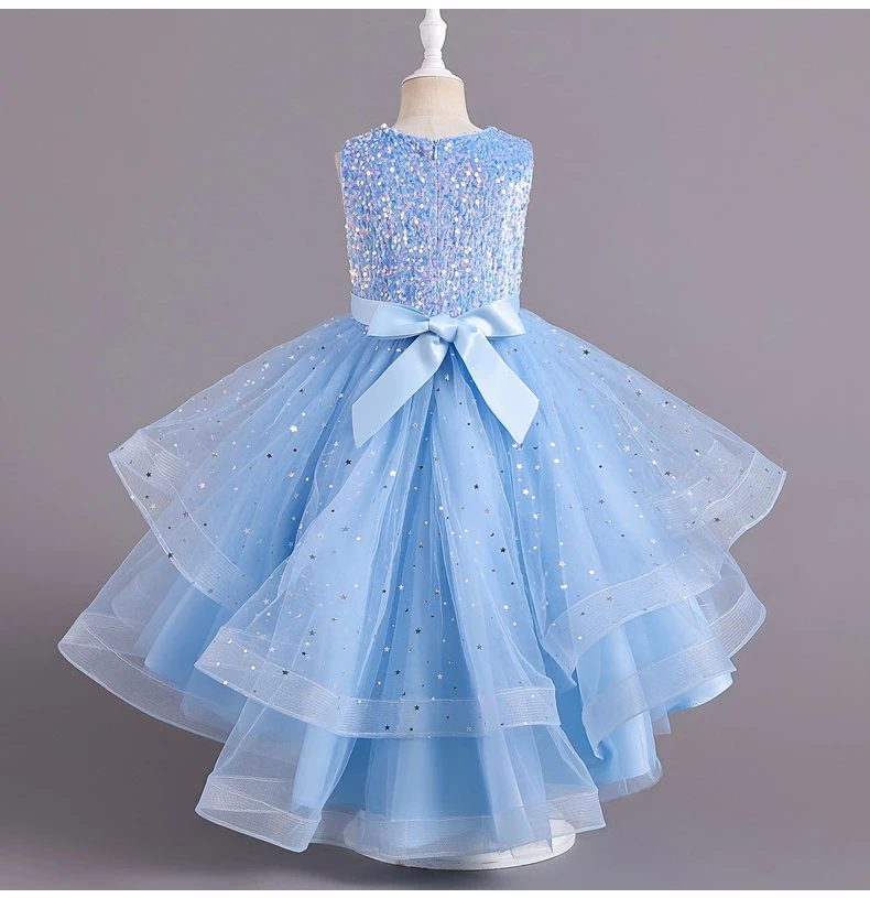 A88 Children Mesh Gown Girls Sleeveless Dress Pink Wedding Evening Party Princess Dresses For Kids Girl