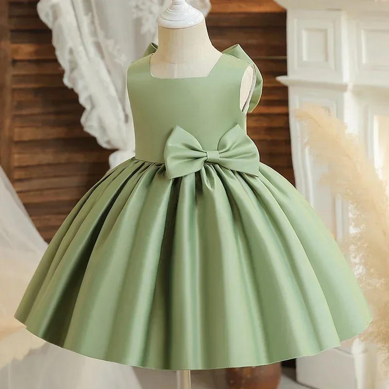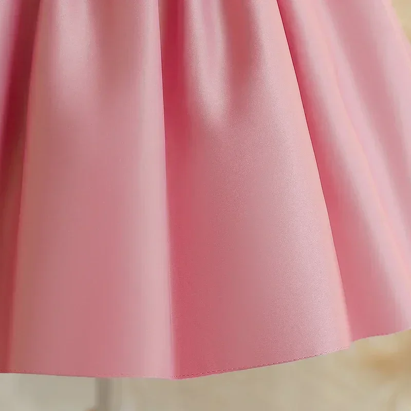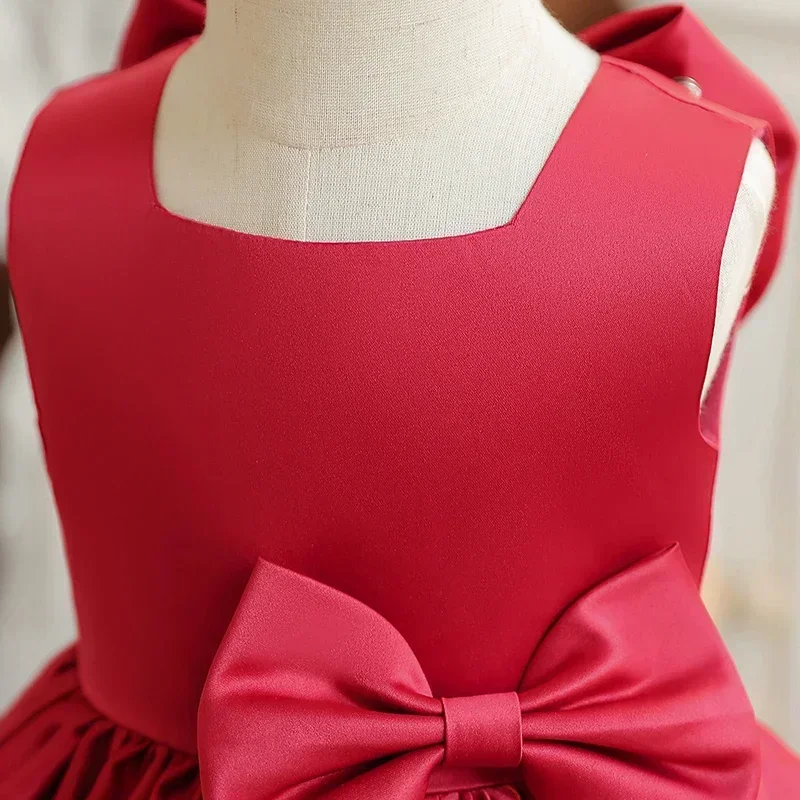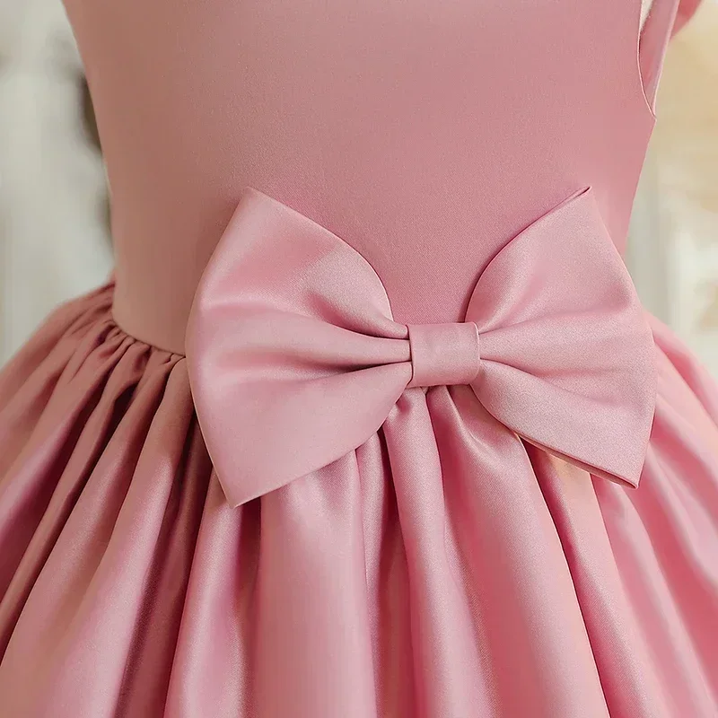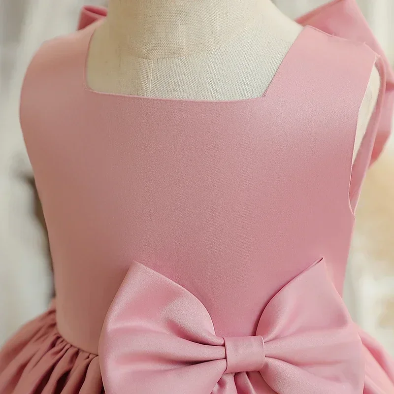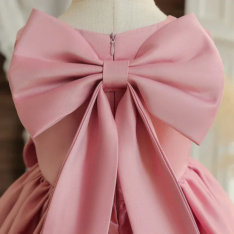 Big Bow Sweet Baby Girls Pink Dress Solid Elegant Toddler Kids Christening Birthday Vestidos Weddings Party Girls Princess Dress