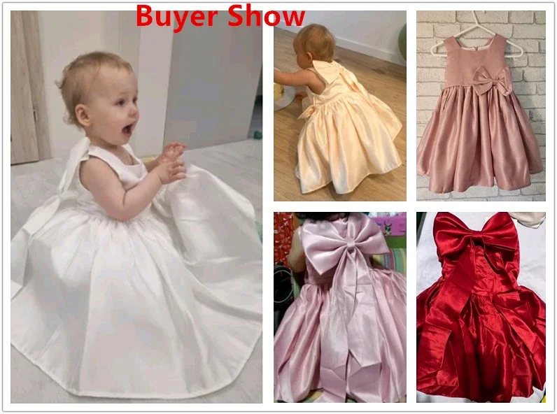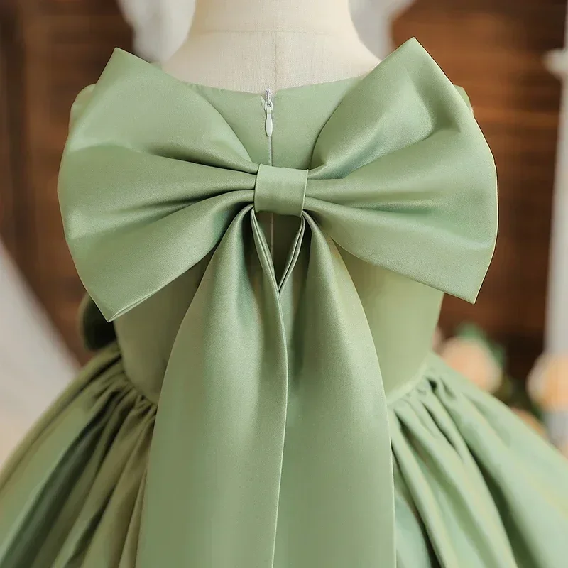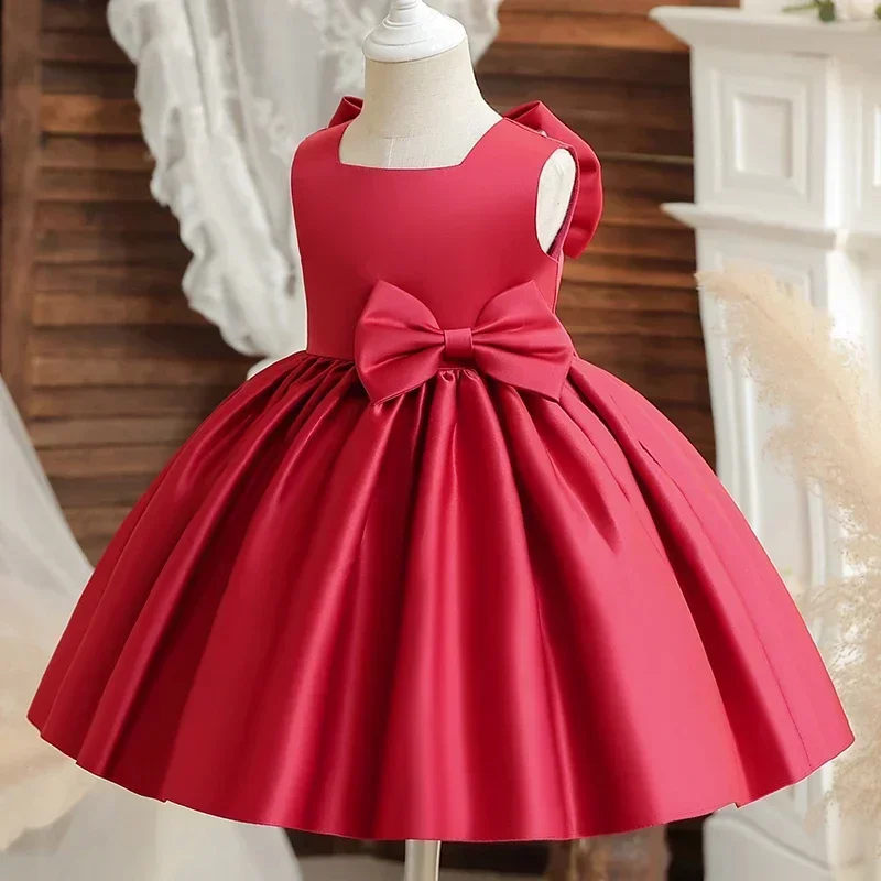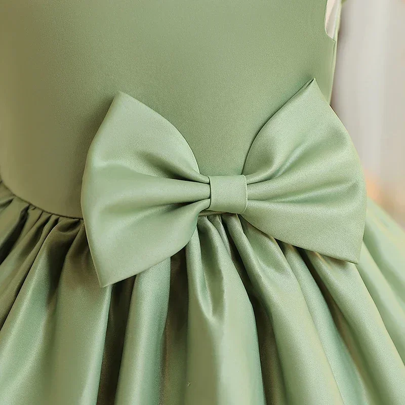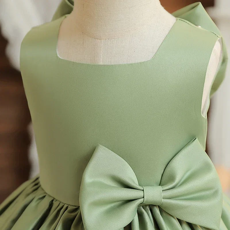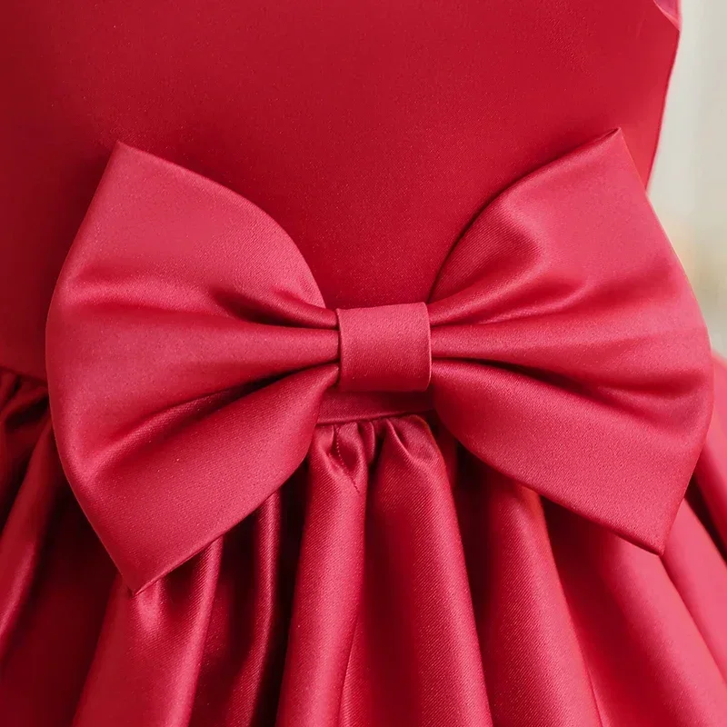 Big Bow Sweet Baby Girls Pink Dress Solid Elegant Toddler Kids Christening Birthday Vestidos Weddings Party Girls Princess Dress