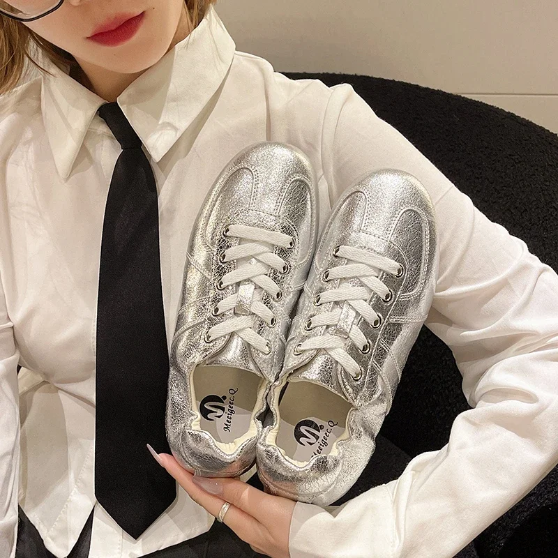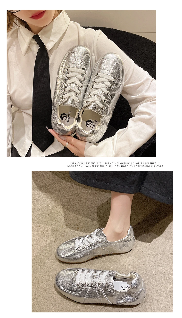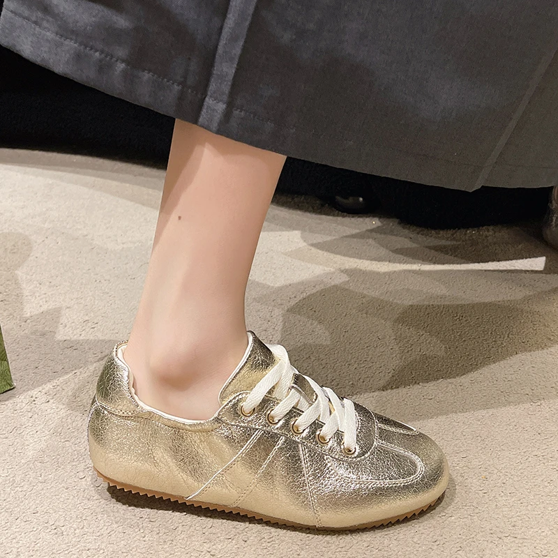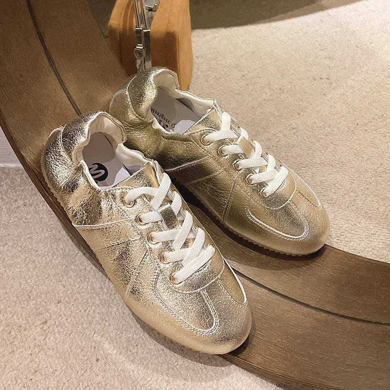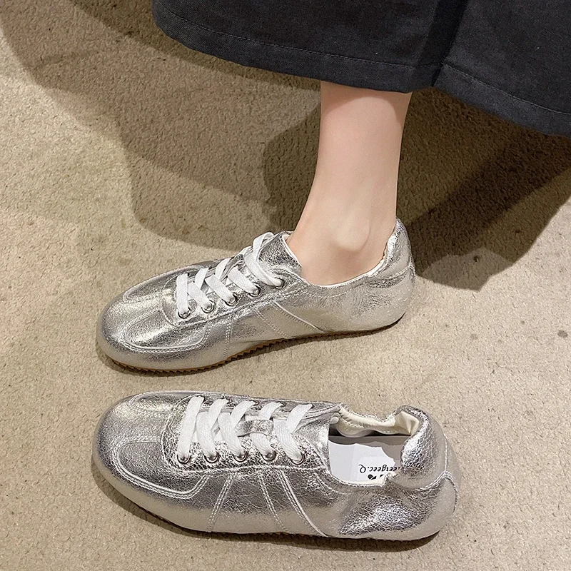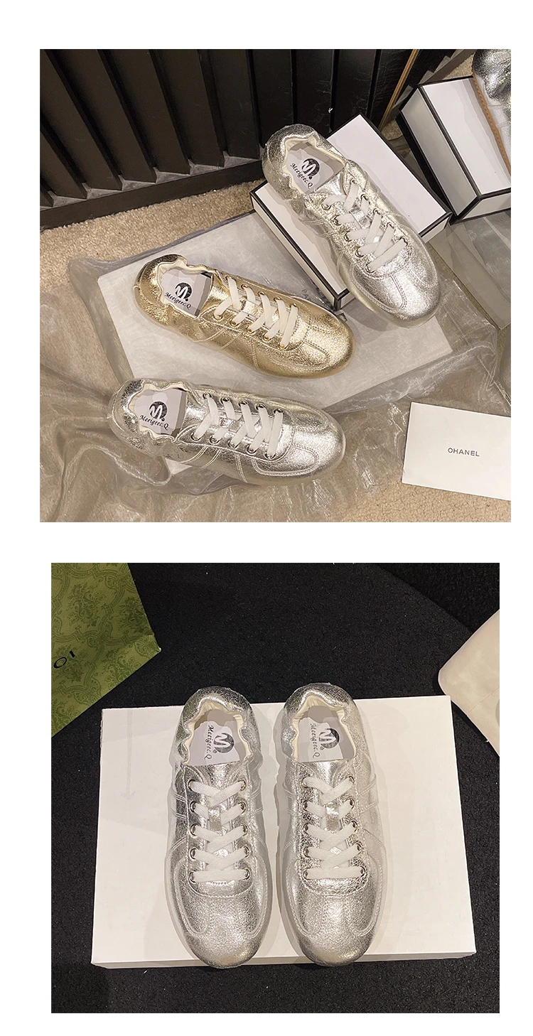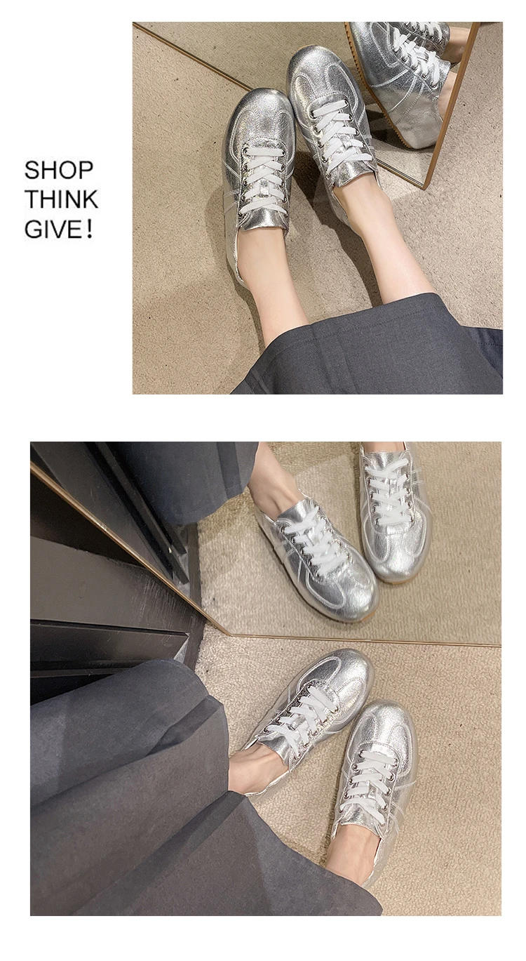 Casual Flat Sneakers Women Bright surface Patchwork Running Shoes Woman Round Toe Lace Up Leisure Outdoors Women’s Sports Shoes