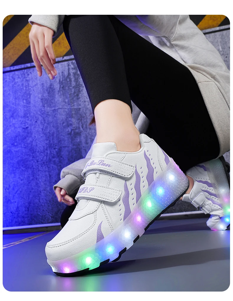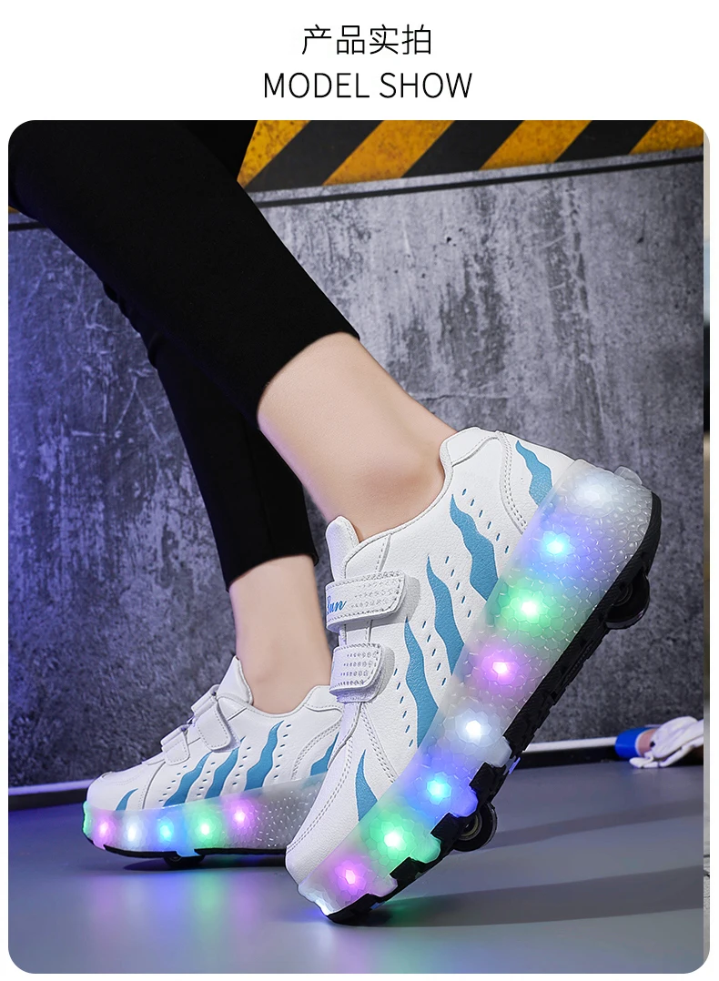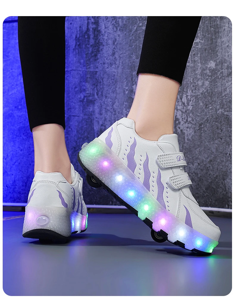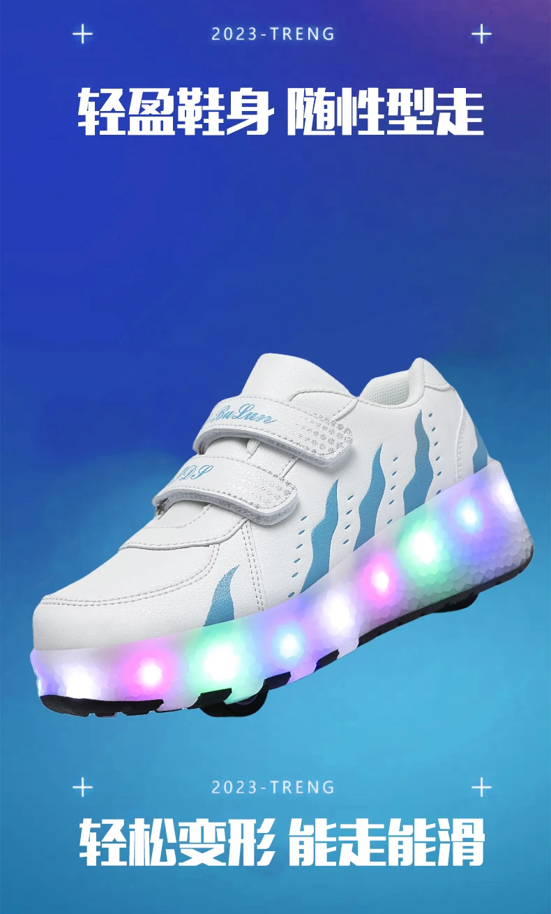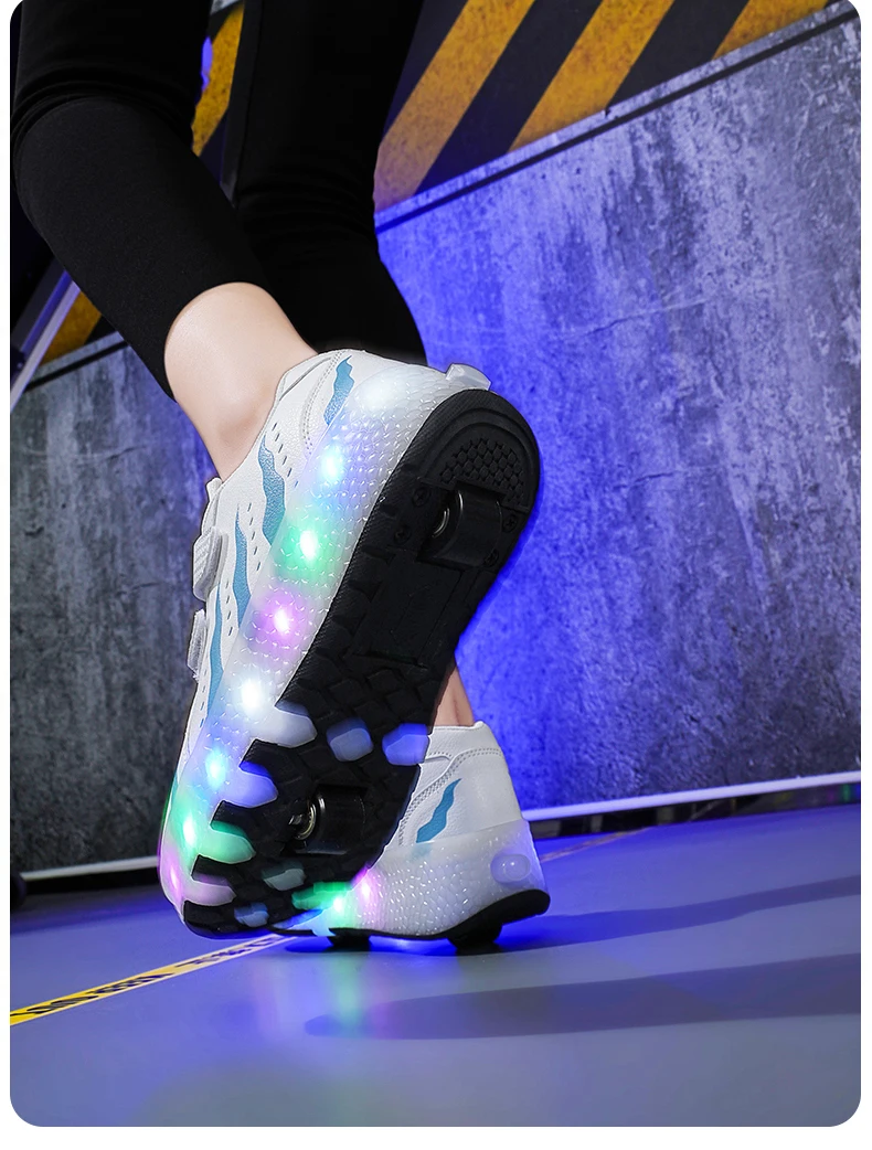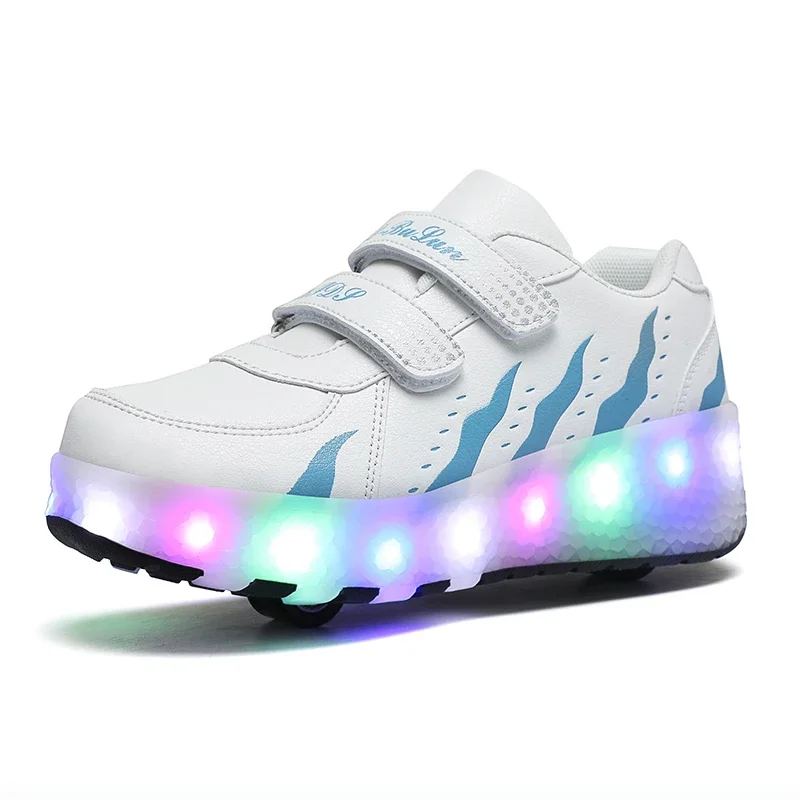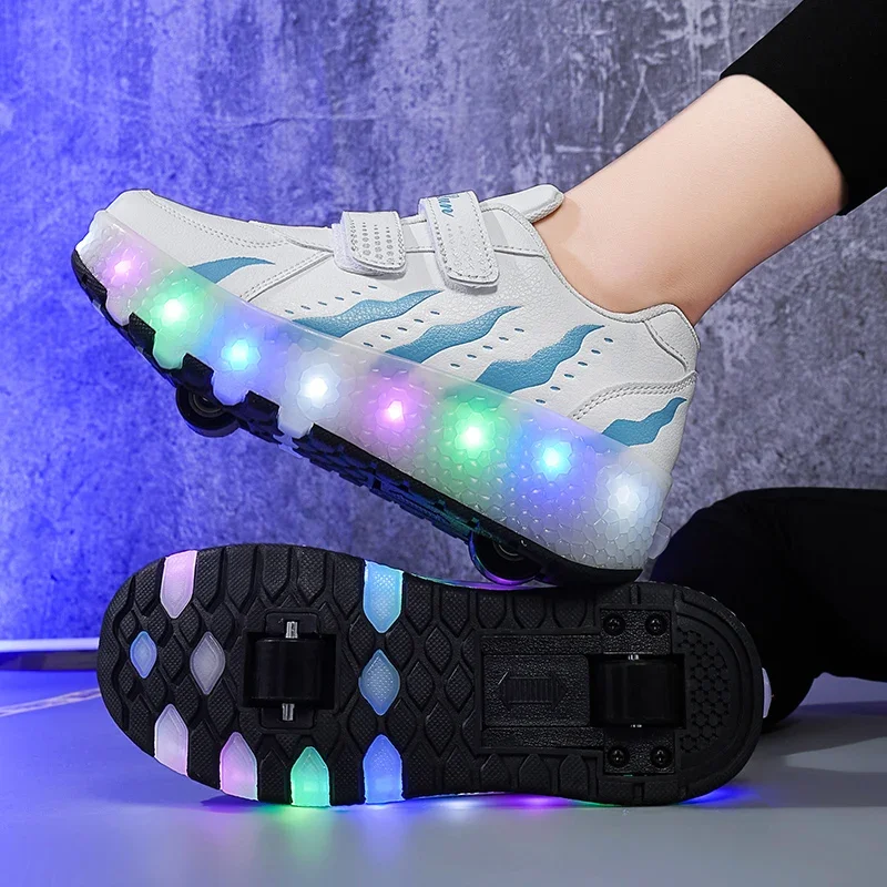 Children Walk Roller Skate Shoes LED Lights Deformation Boys Girls Skating Shoes Casual Parkour Kids Detachable 2 Wheels Sneaker