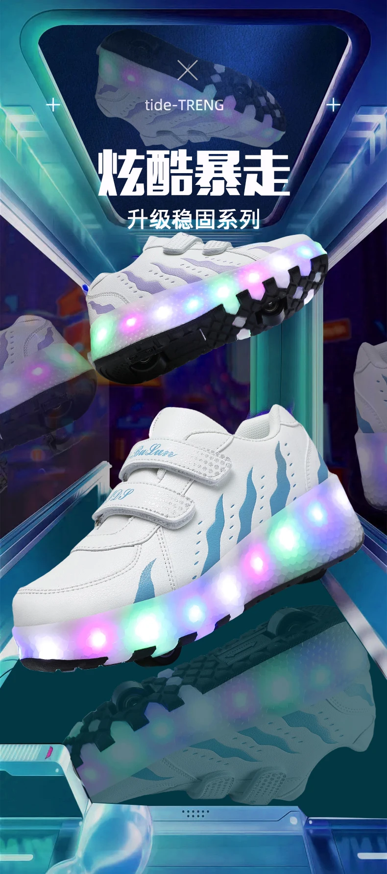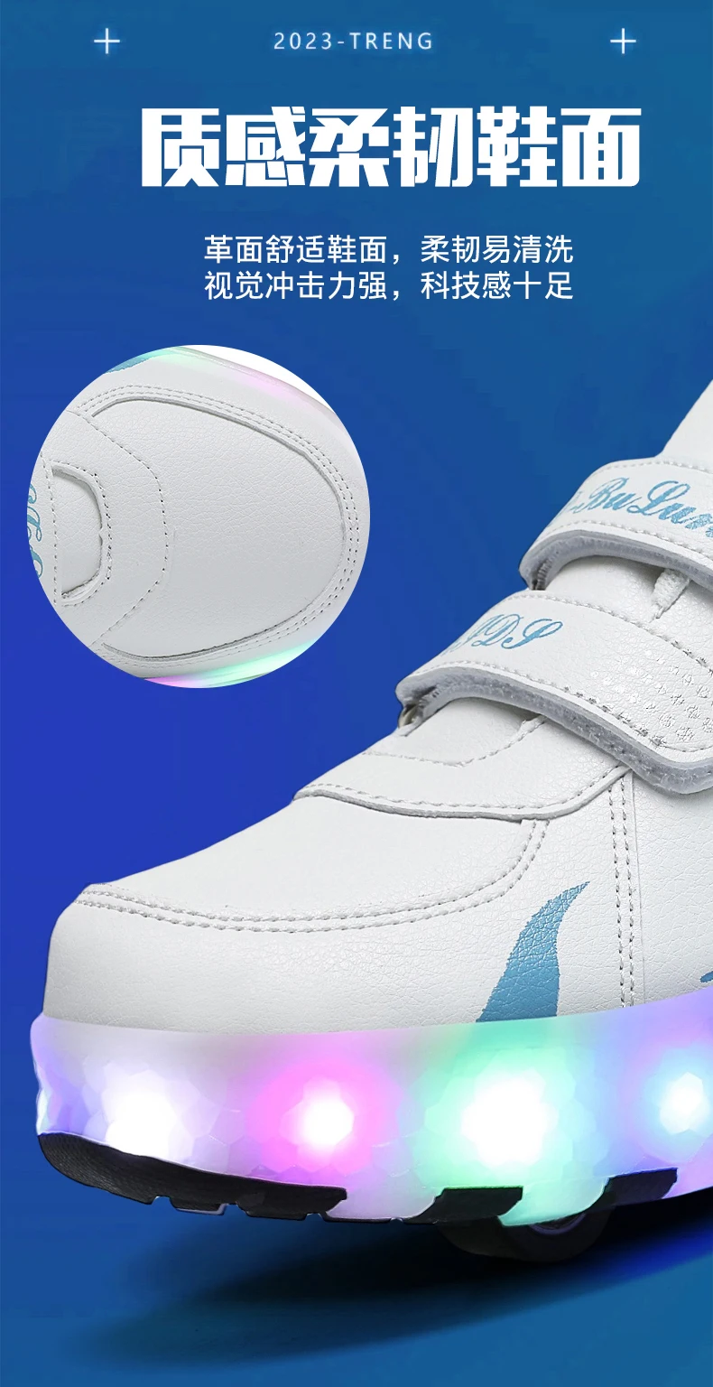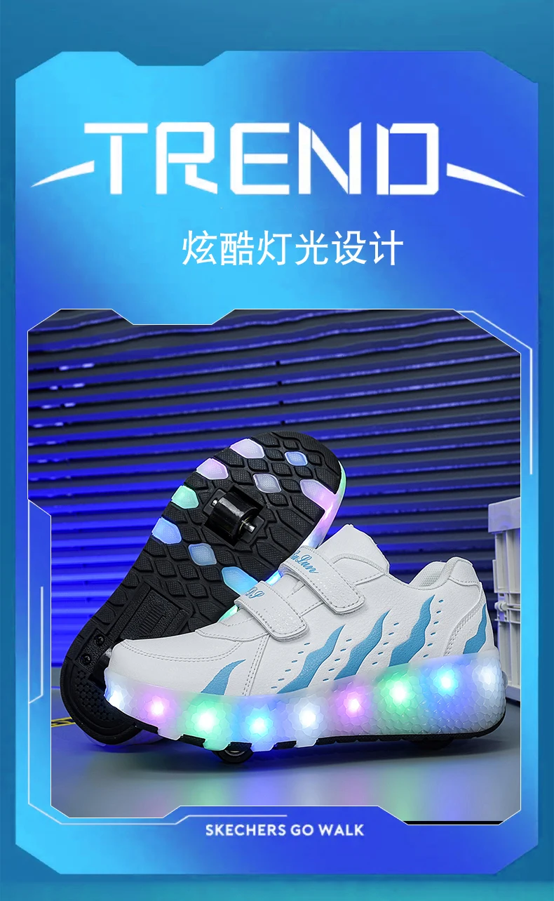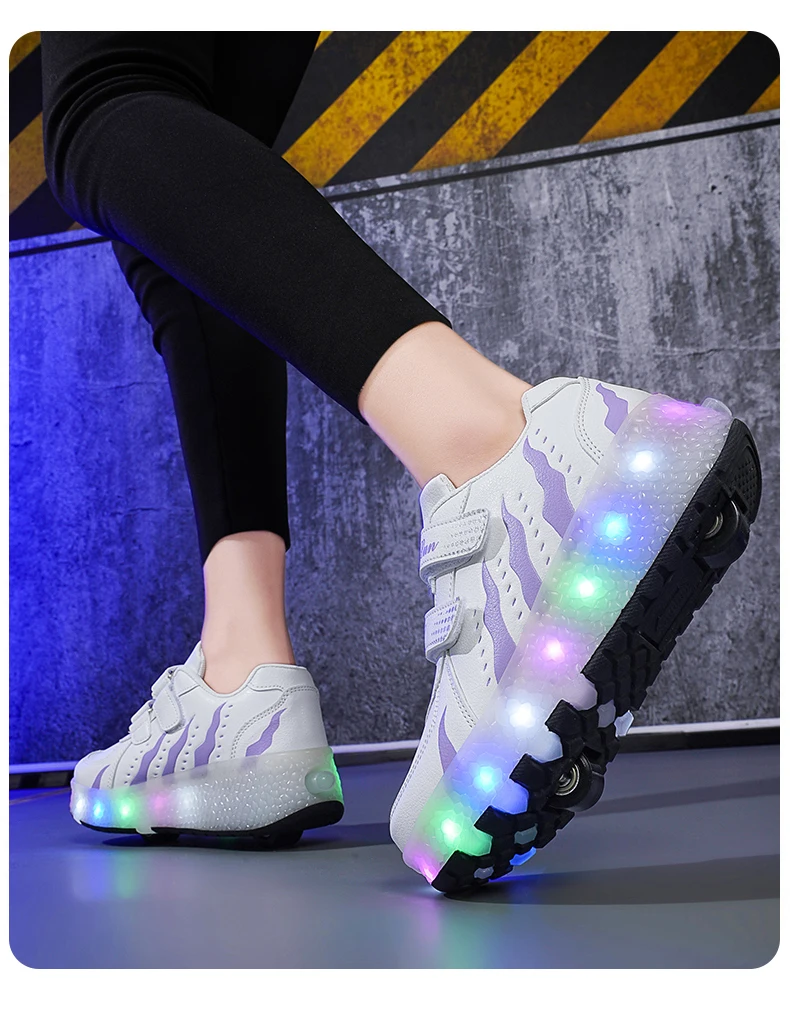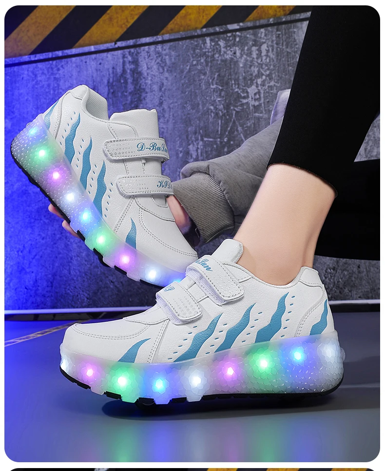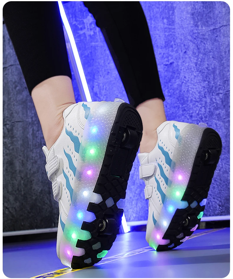Children Walk Roller Skate Shoes LED Lights Deformation Boys Girls Skating Shoes Casual Parkour Kids Detachable 2 Wheels Sneaker