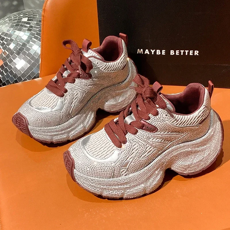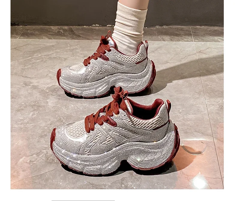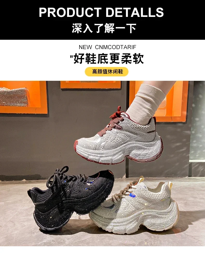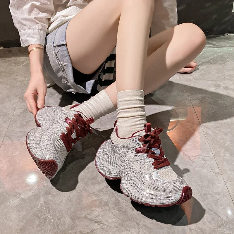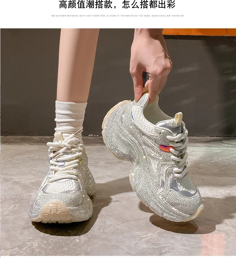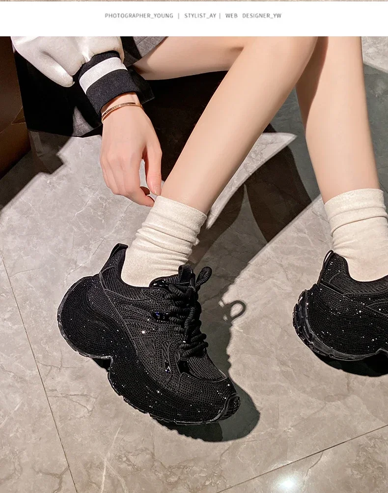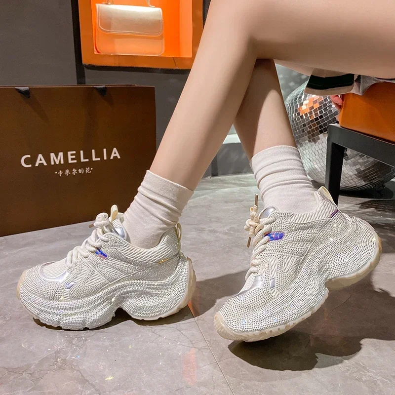 Chunky Sneakers Women Bling Running Shoes Fashion Casual Luxury Designer Breathable Height Increased Casual shoes zapatillas