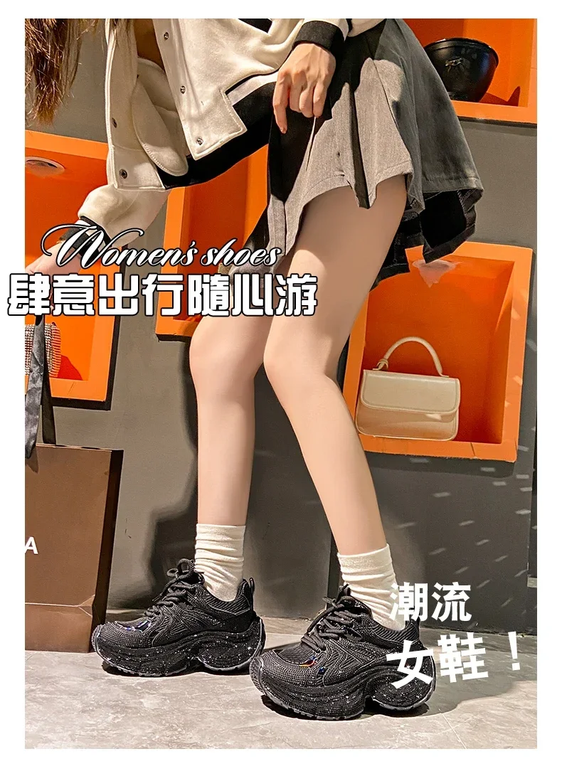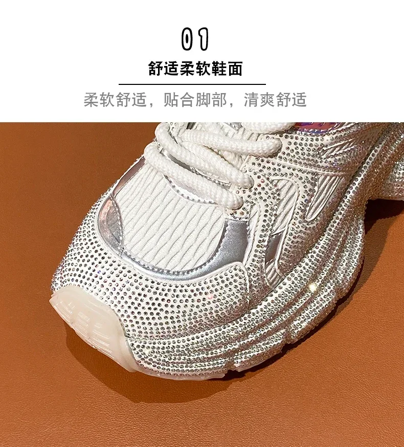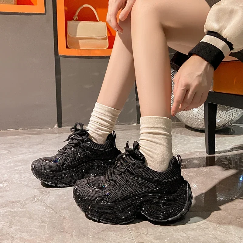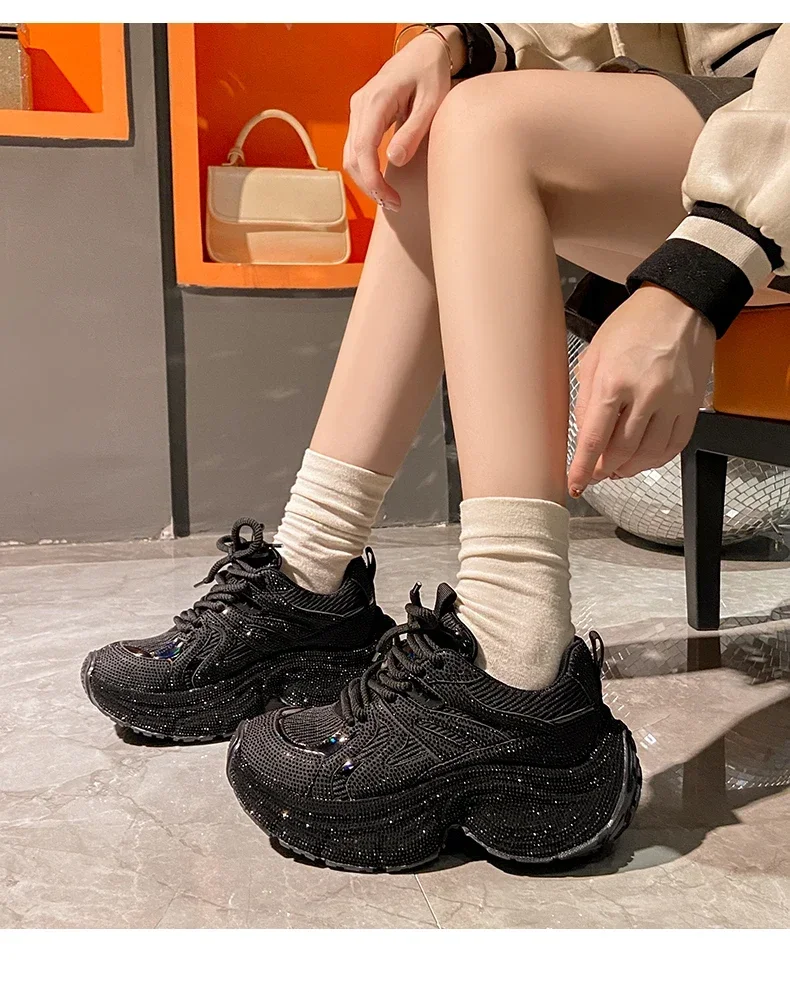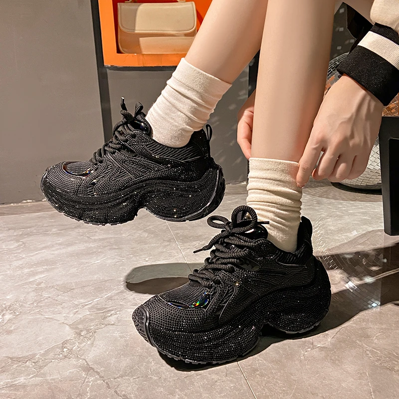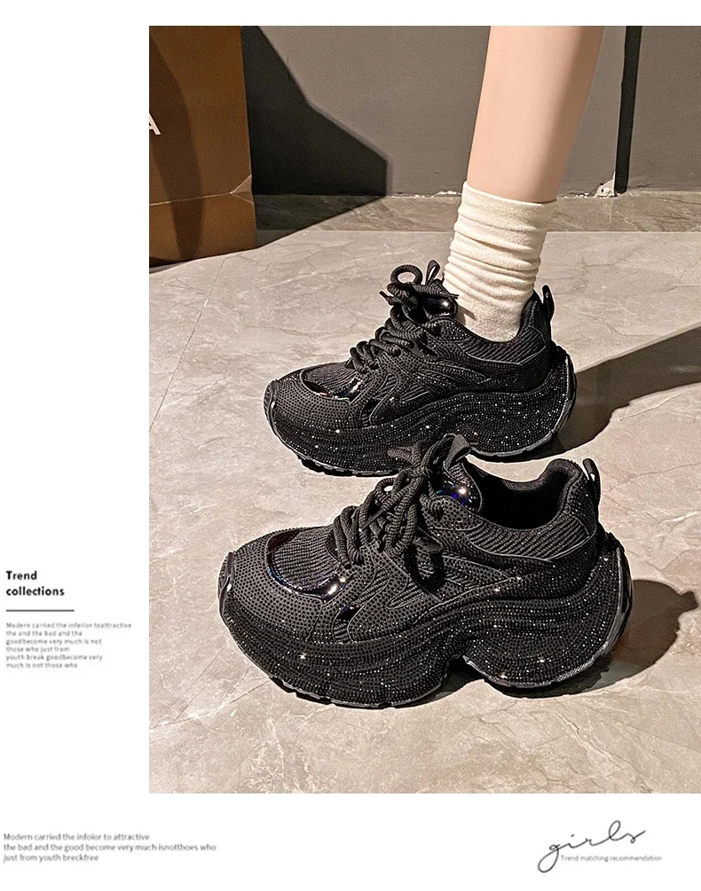 Chunky Sneakers Women Bling Running Shoes Fashion Casual Luxury Designer Breathable Height Increased Casual shoes zapatillas