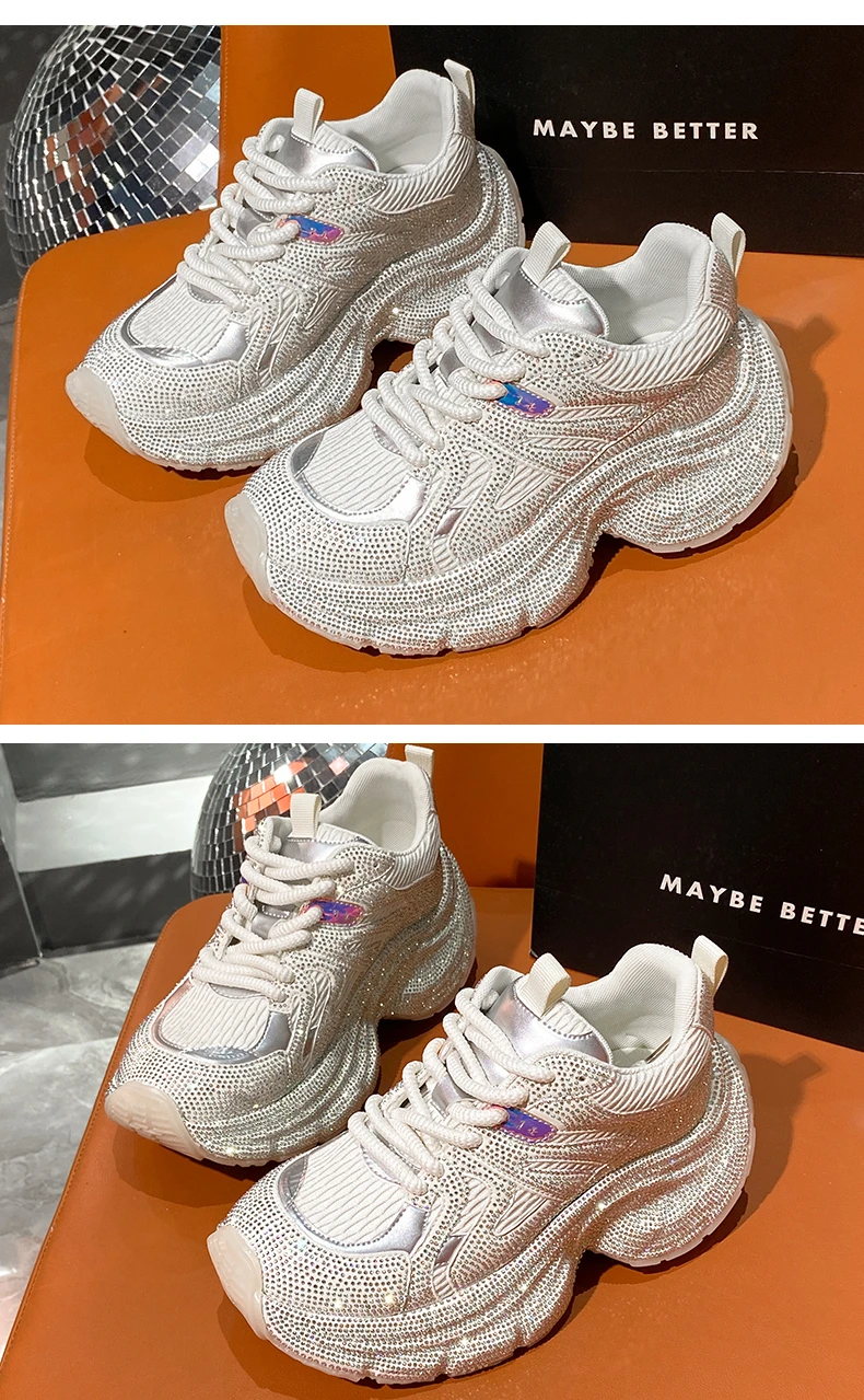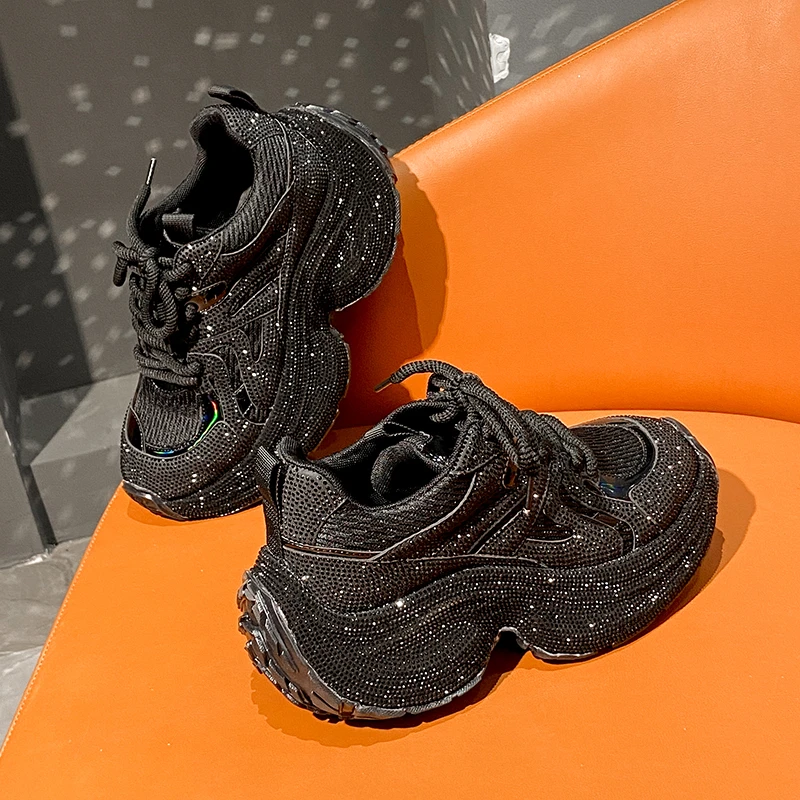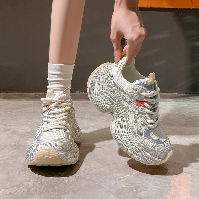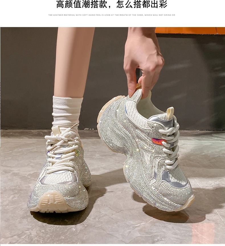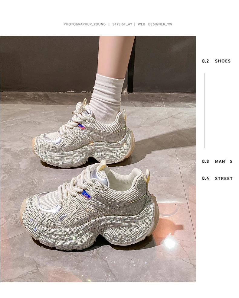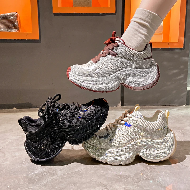 Designer Fashion Casual Shoes Crystal Thick soled Sneakers Luxury Women’s Shoes Women’s Platform Tennis Shoes Zapatos de Mujer