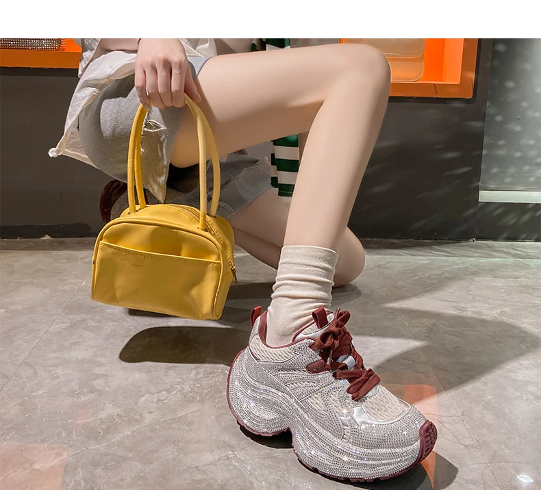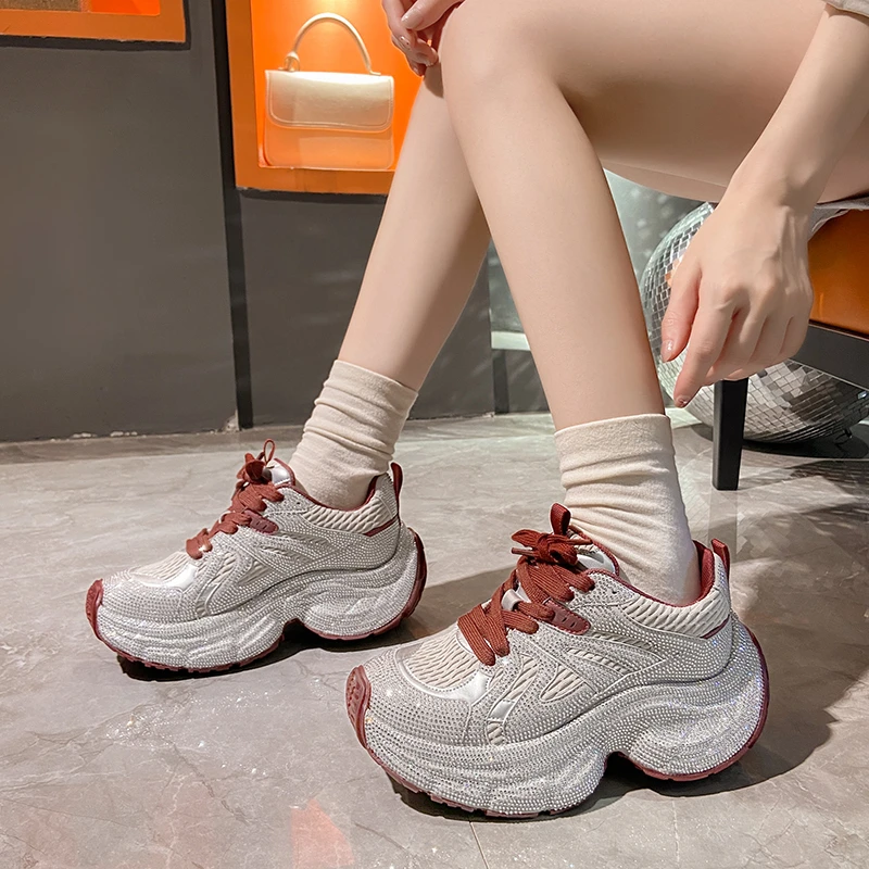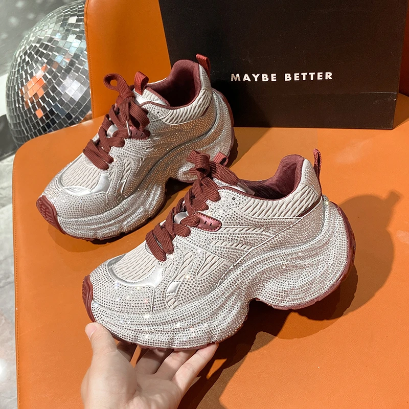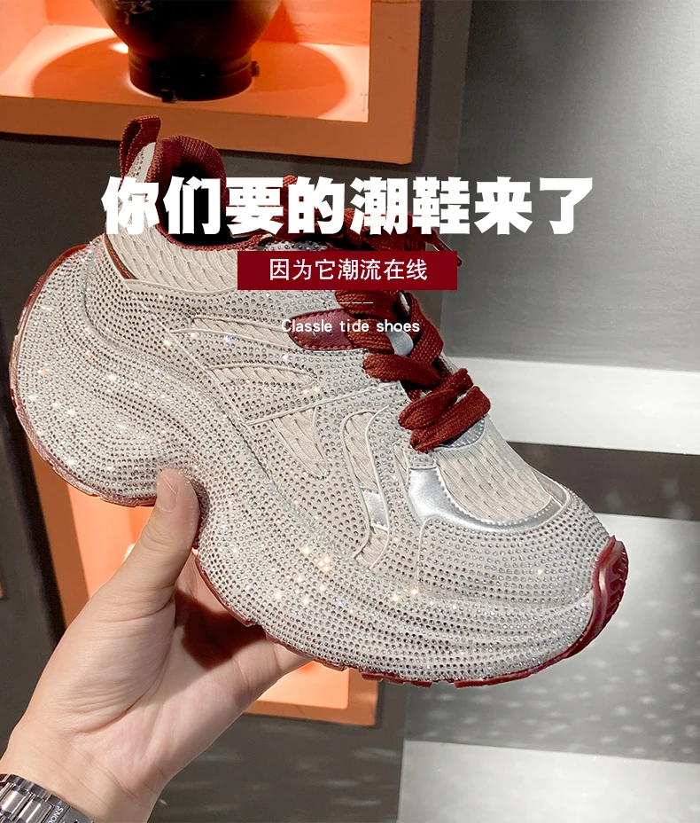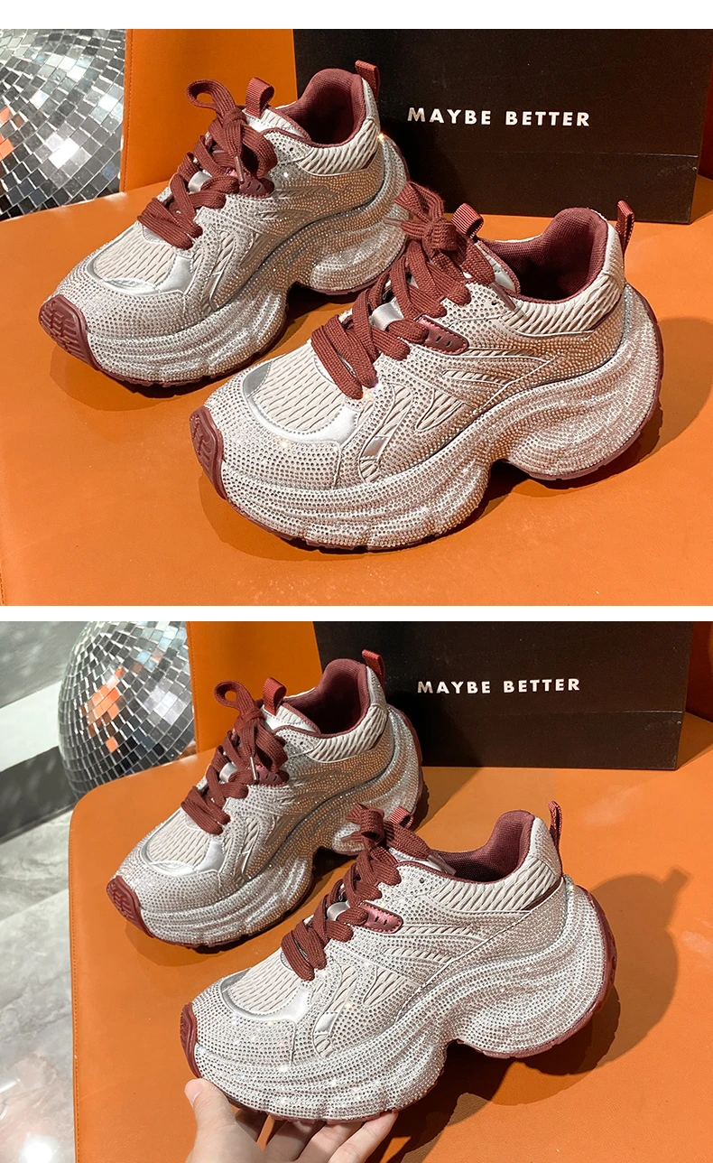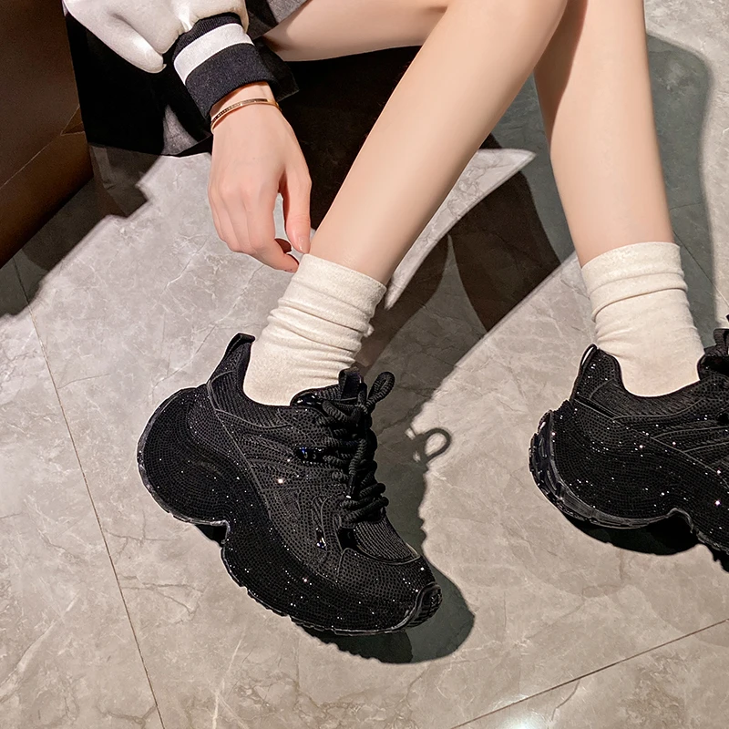 Designer Fashion Casual Shoes Crystal Thick soled Sneakers Luxury Women’s Shoes Women’s Platform Tennis Shoes Zapatos de Mujer