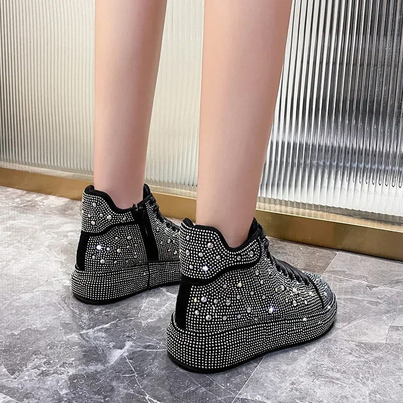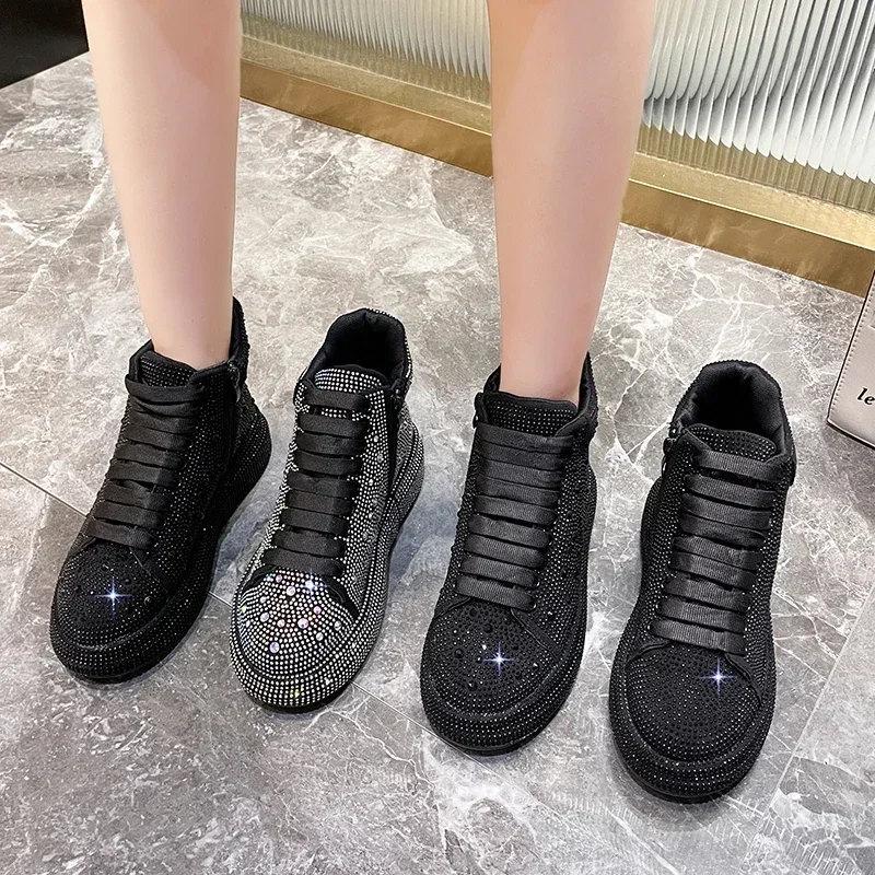 Designer Fashion Sports Shoes Spring Autumn New Style Lace up Water Diamond Women’s Casual Shoes Luxury Shining Women’s Shoes