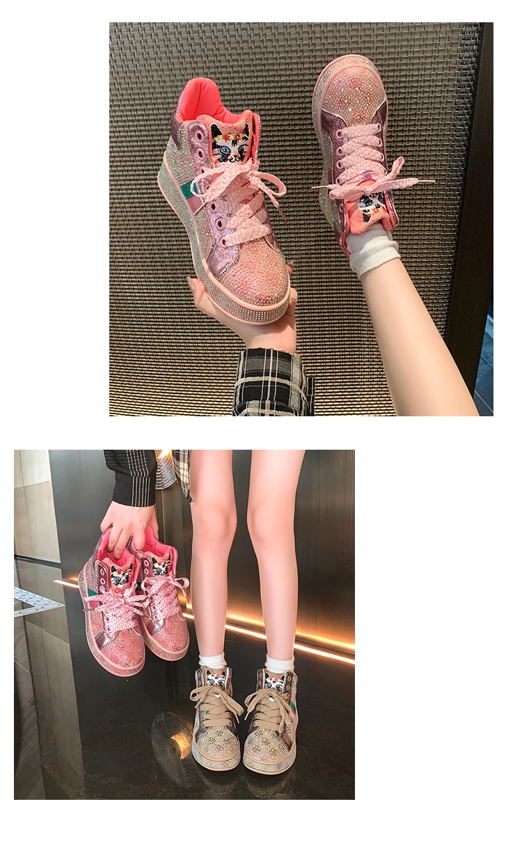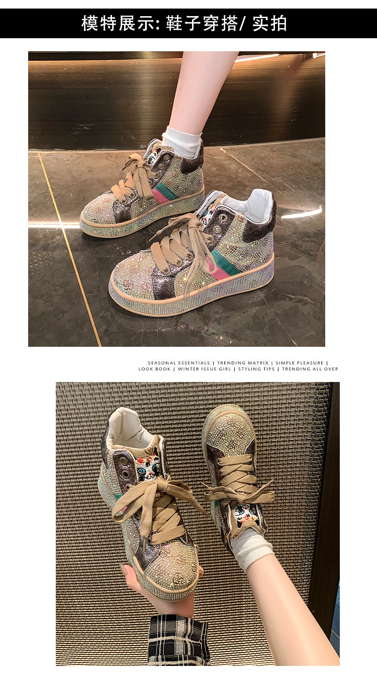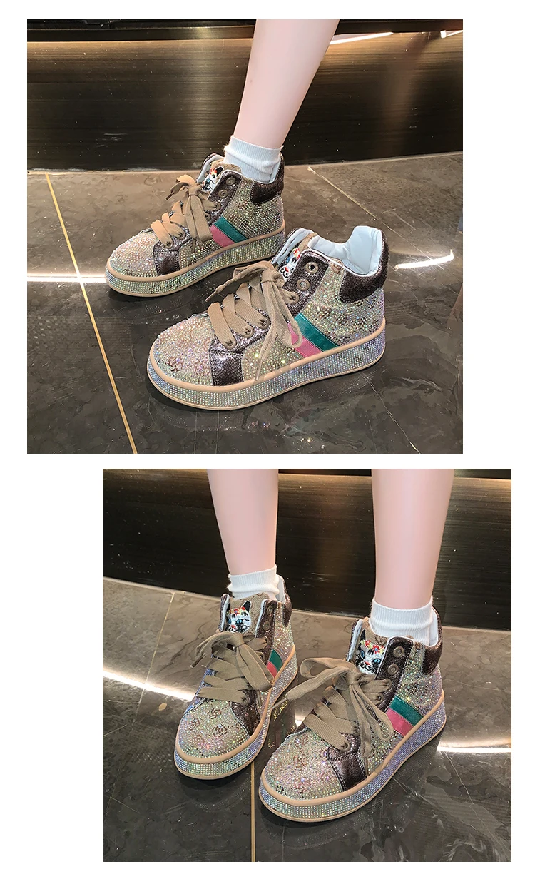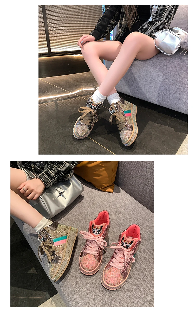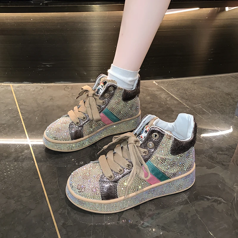 Designer shoe Leather Lace Up Women’s Fashion Platform Sneakers Black White Women’s Luxury rhinestone Casual Shoes zapatillas
