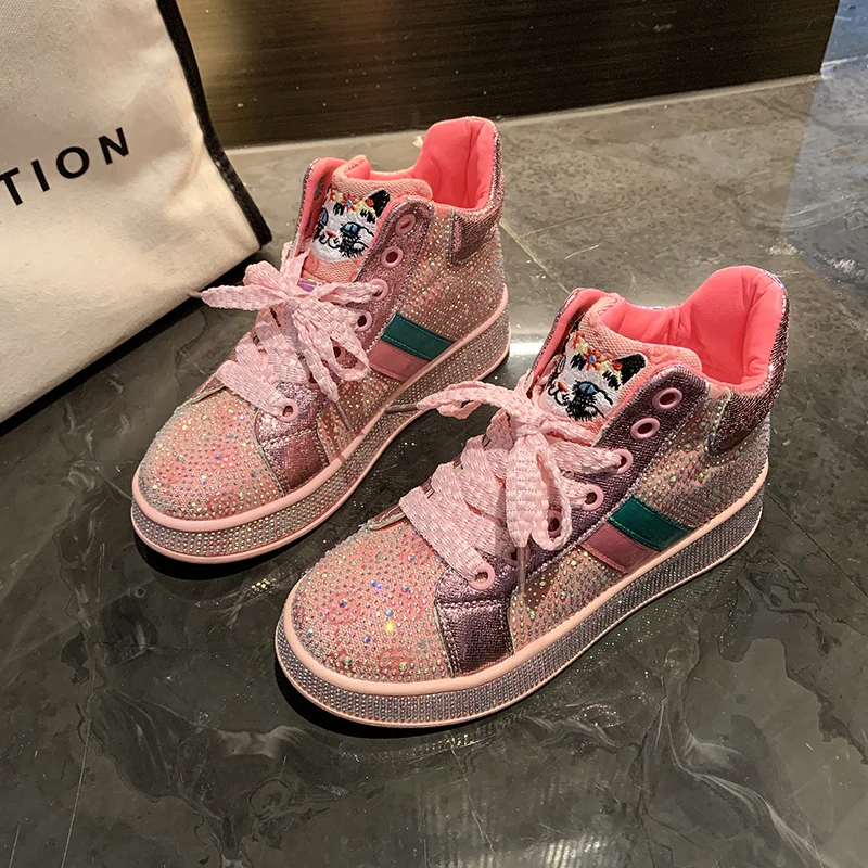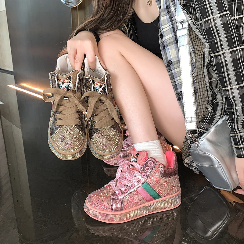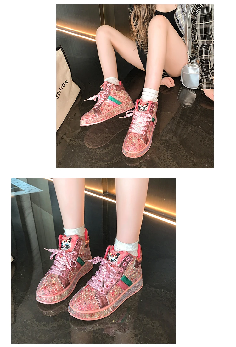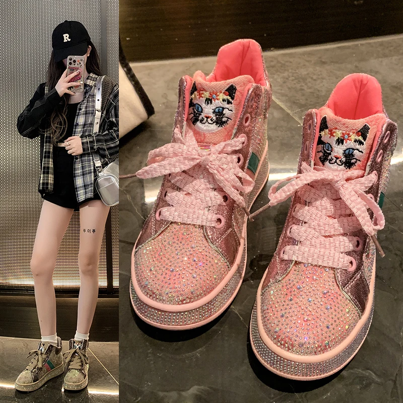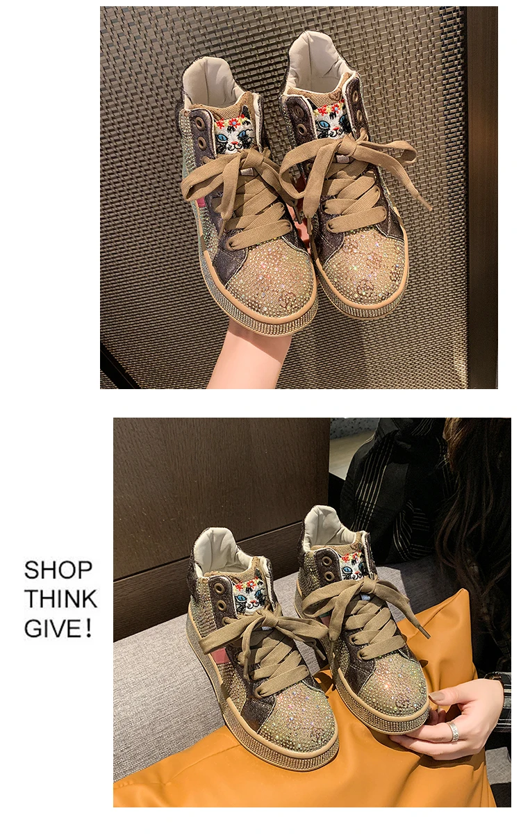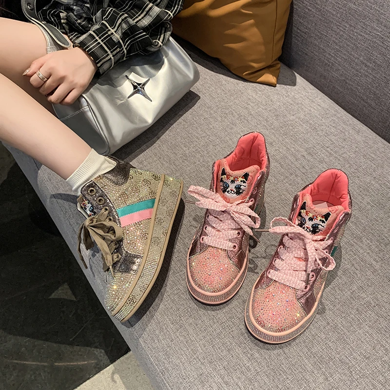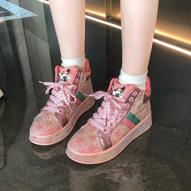Designer shoe Leather Lace Up Women’s Fashion Platform Sneakers Black White Women’s Luxury rhinestone Casual Shoes zapatillas