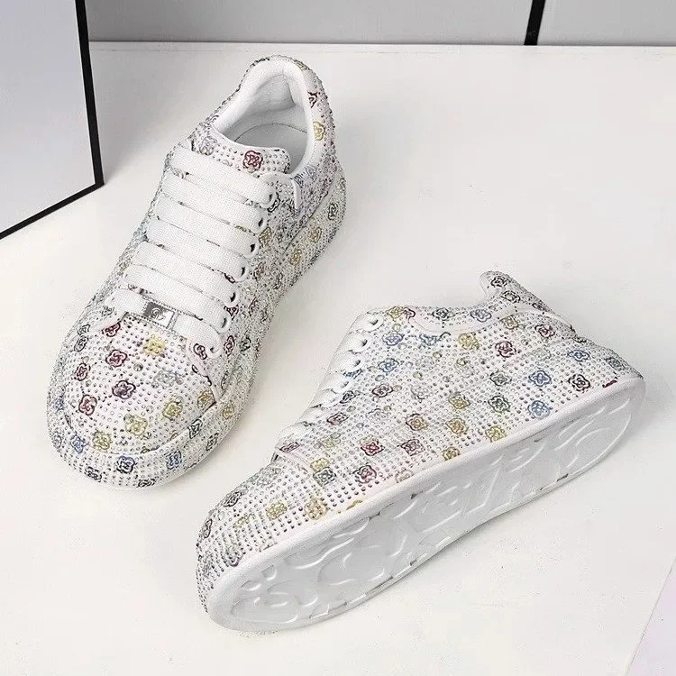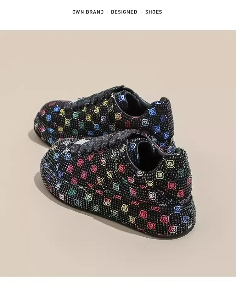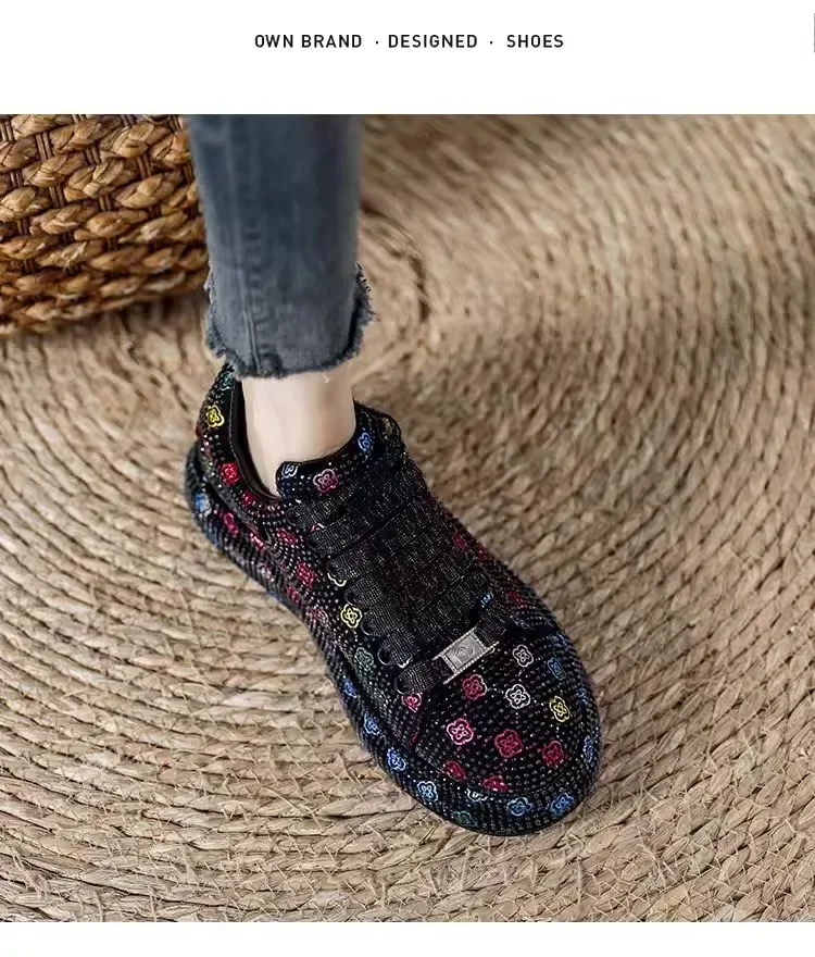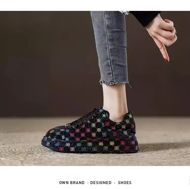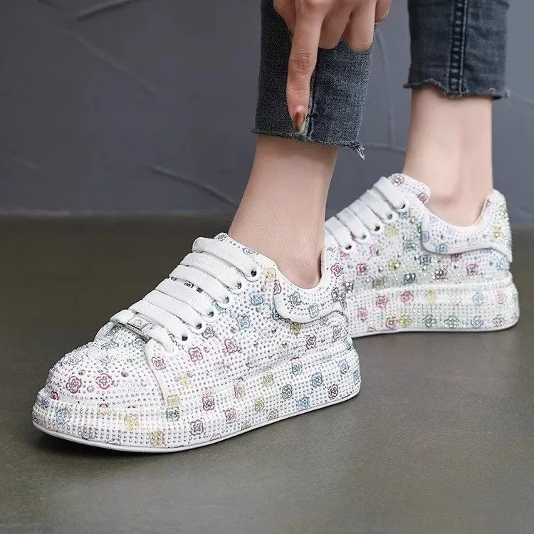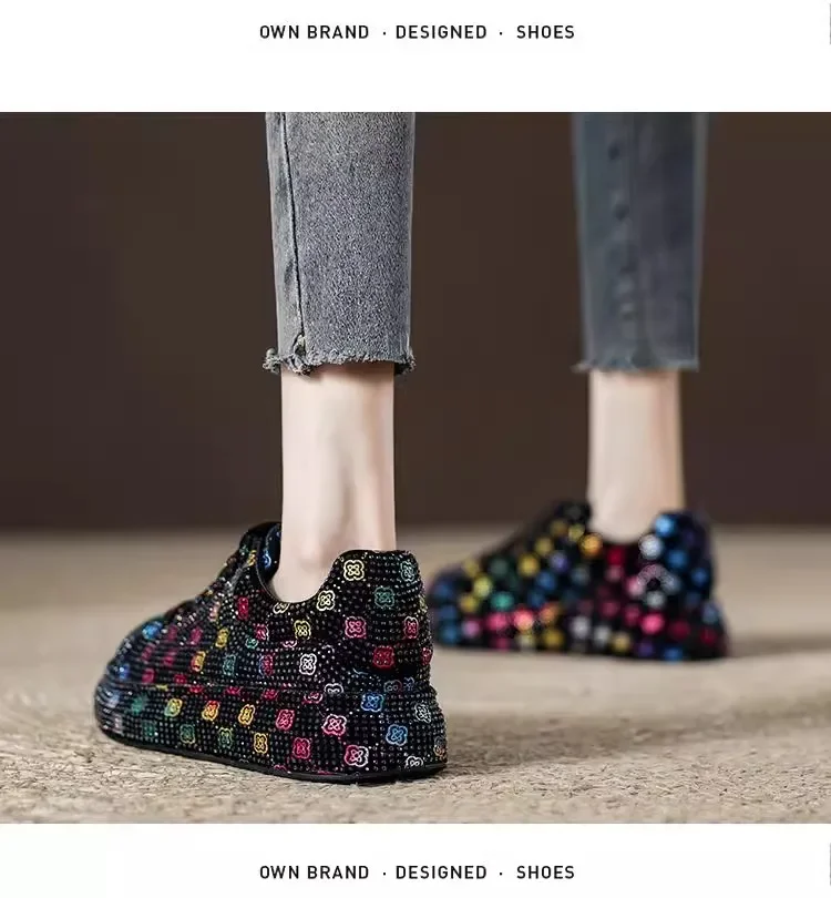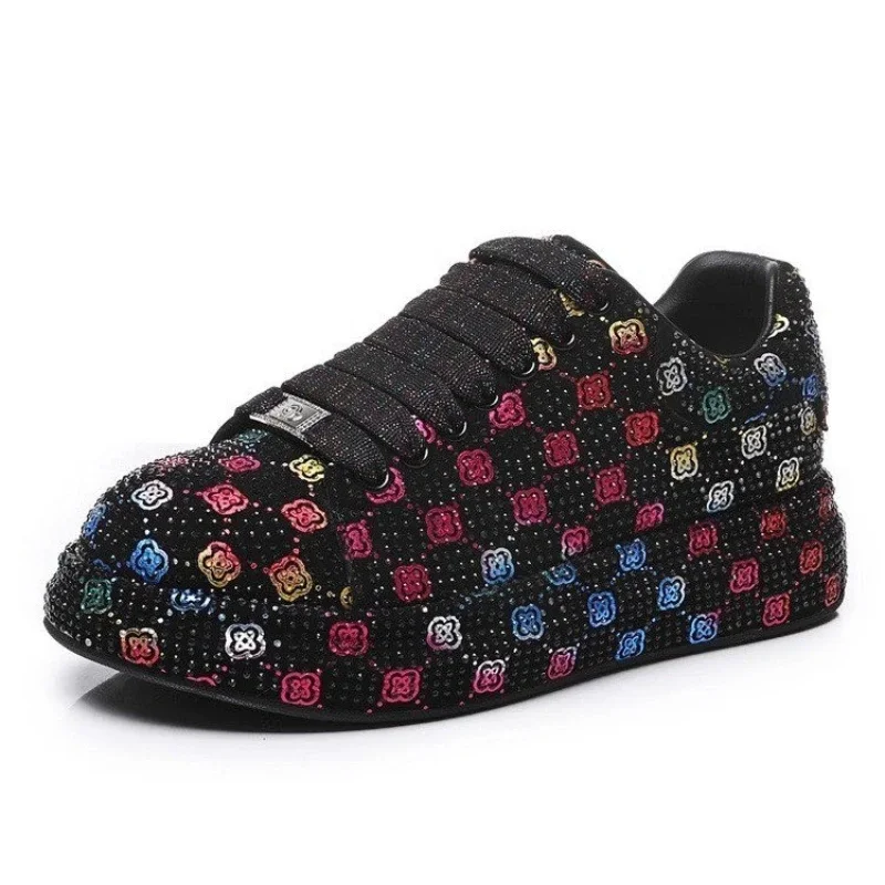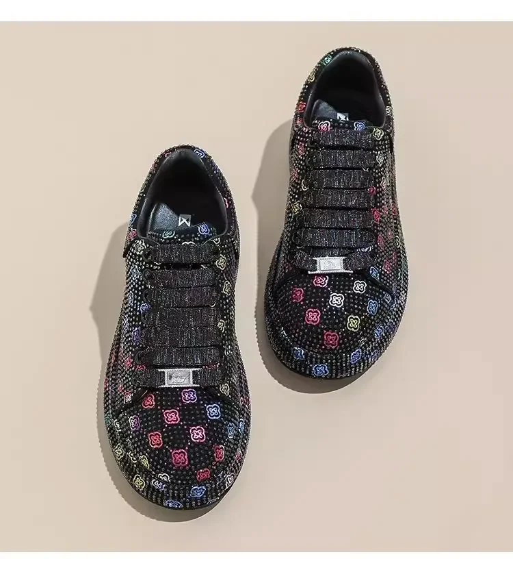 Designer Women’s Platform Sneakers Black White Women’s Shiny Crystal Sneakers Fashion Casual Luxury Water Diamond Shoes zapatos