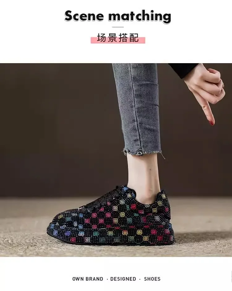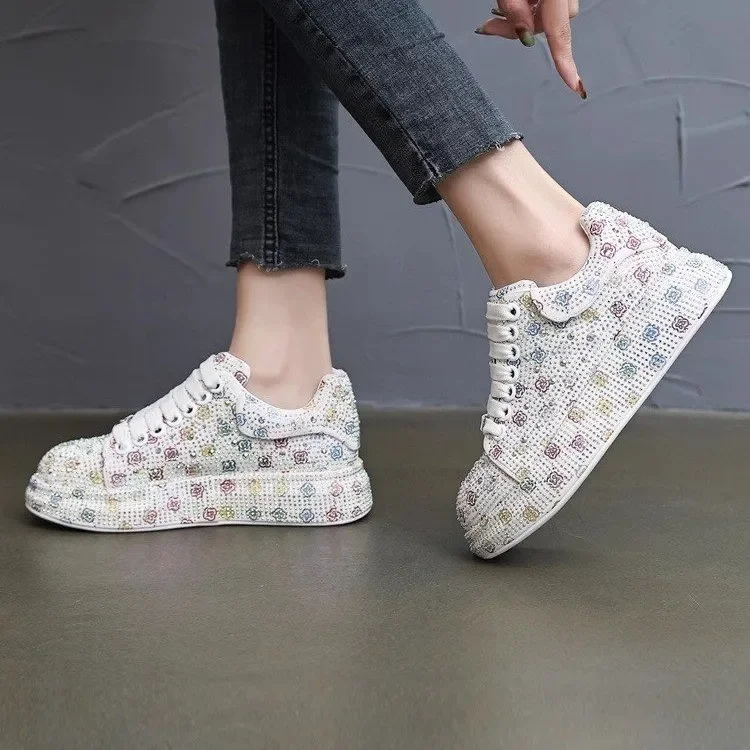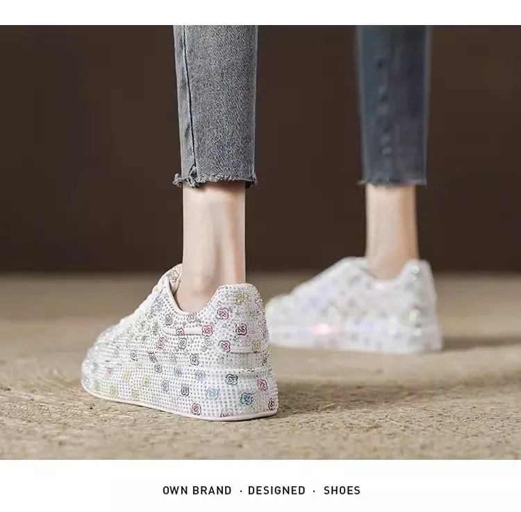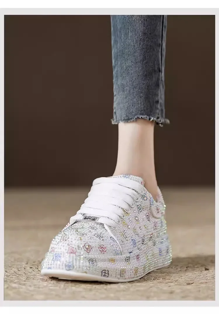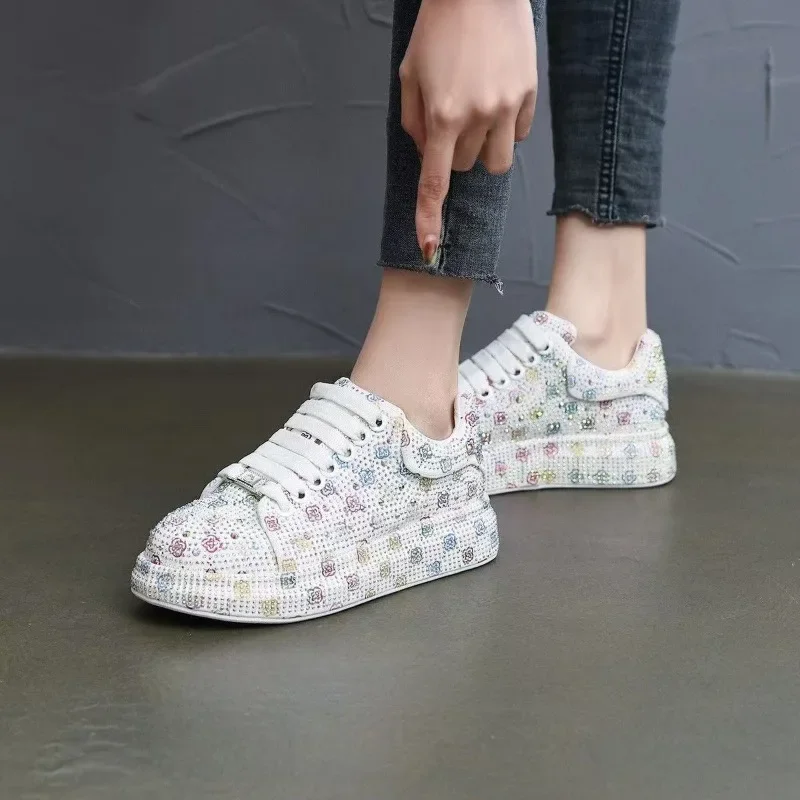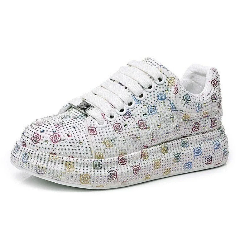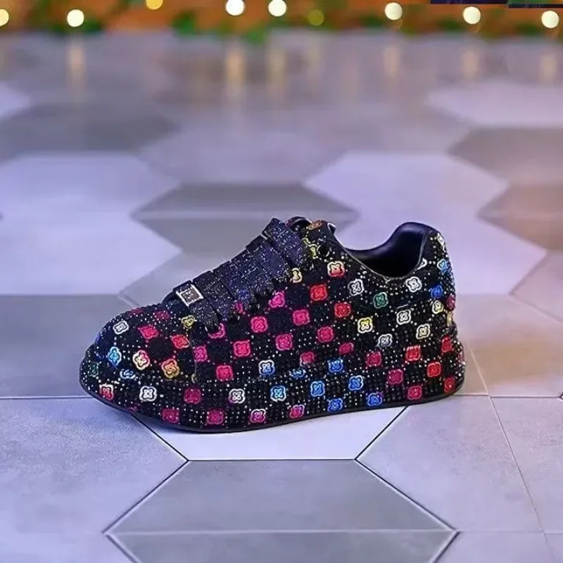 Designer Women’s Platform Sneakers Black White Women’s Shiny Crystal Sneakers Fashion Casual Luxury Water Diamond Shoes zapatos