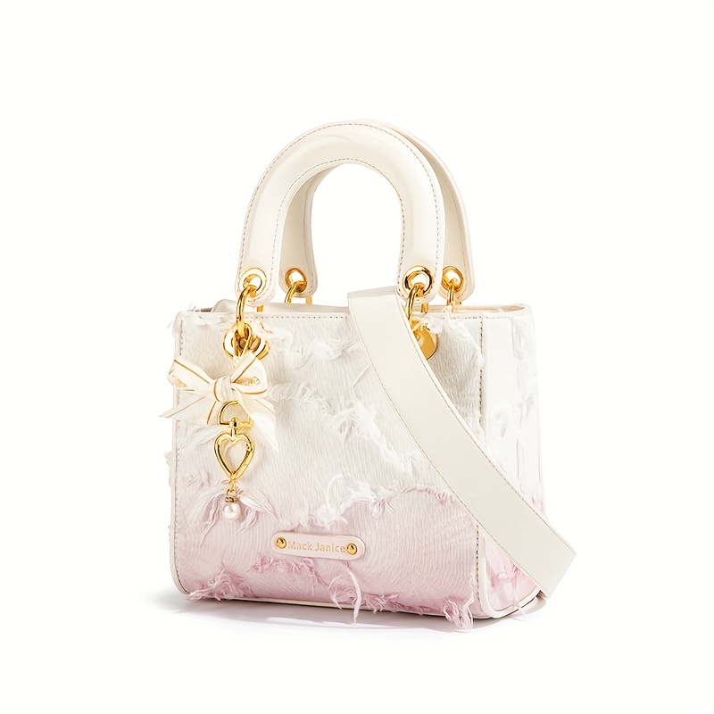 Elegant Gradient Pink Handbag for Wo – Luxury Small Square Handbag with Detachable Shoulder Strap, Buckle Closure, And Golden-Tone Hardware, Purse Accessorie