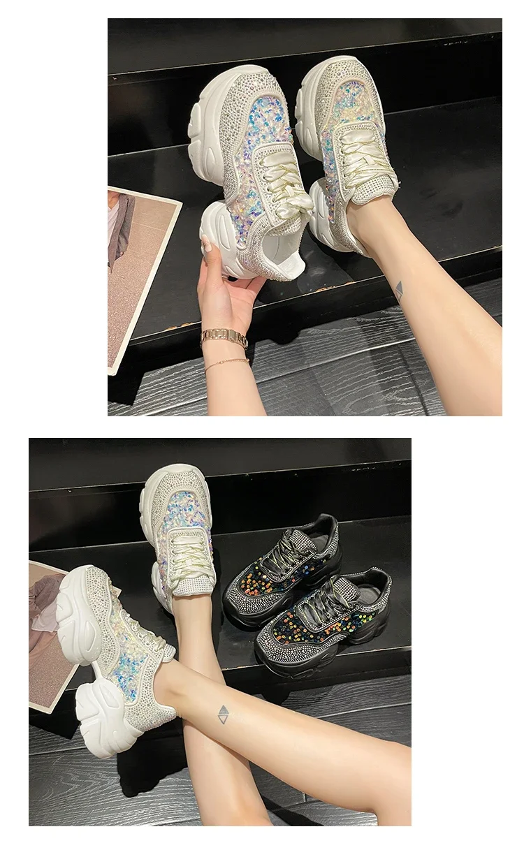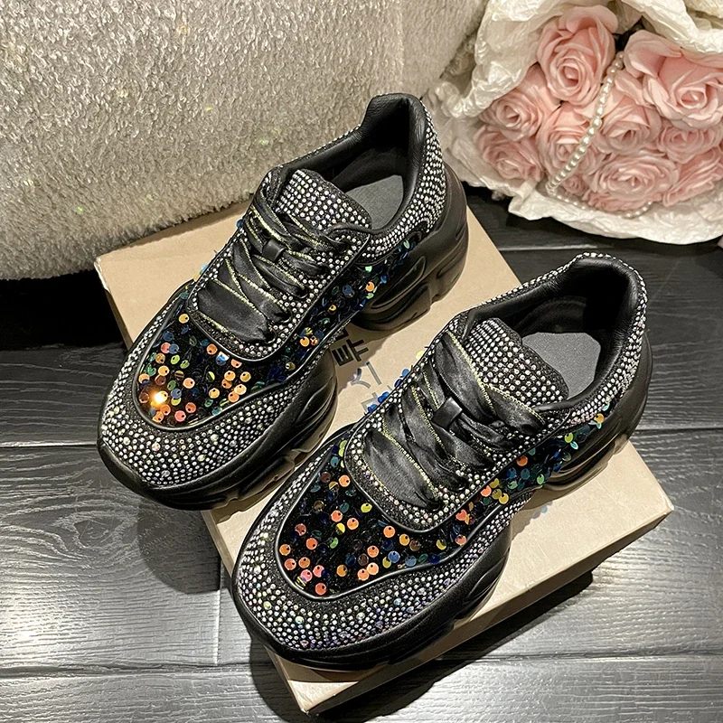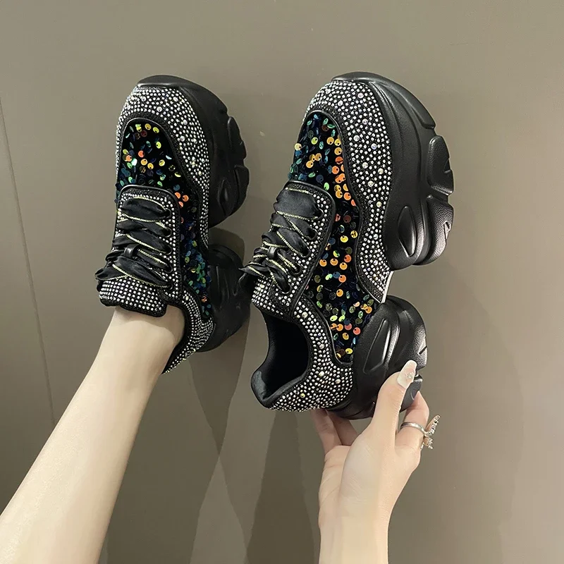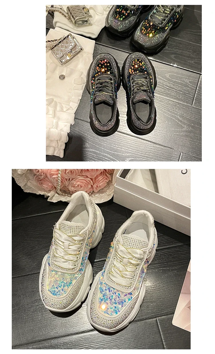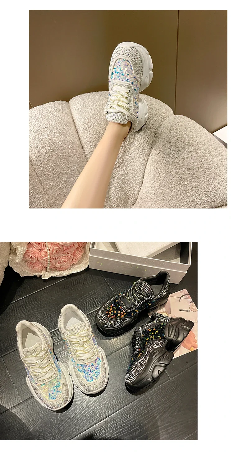 Fashion Shiny Ladies Shoes Sneakers Women Trend 2024 New Spring Platform Lace Up Rhinestone Women Casual Shoes zapatos de mujer