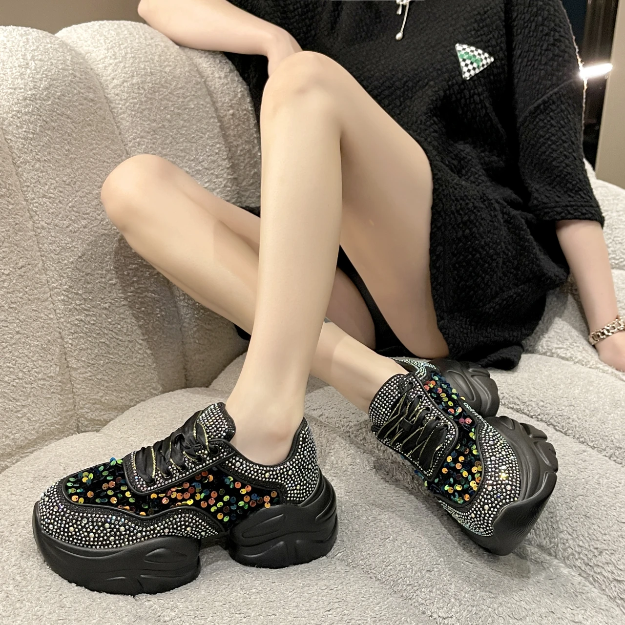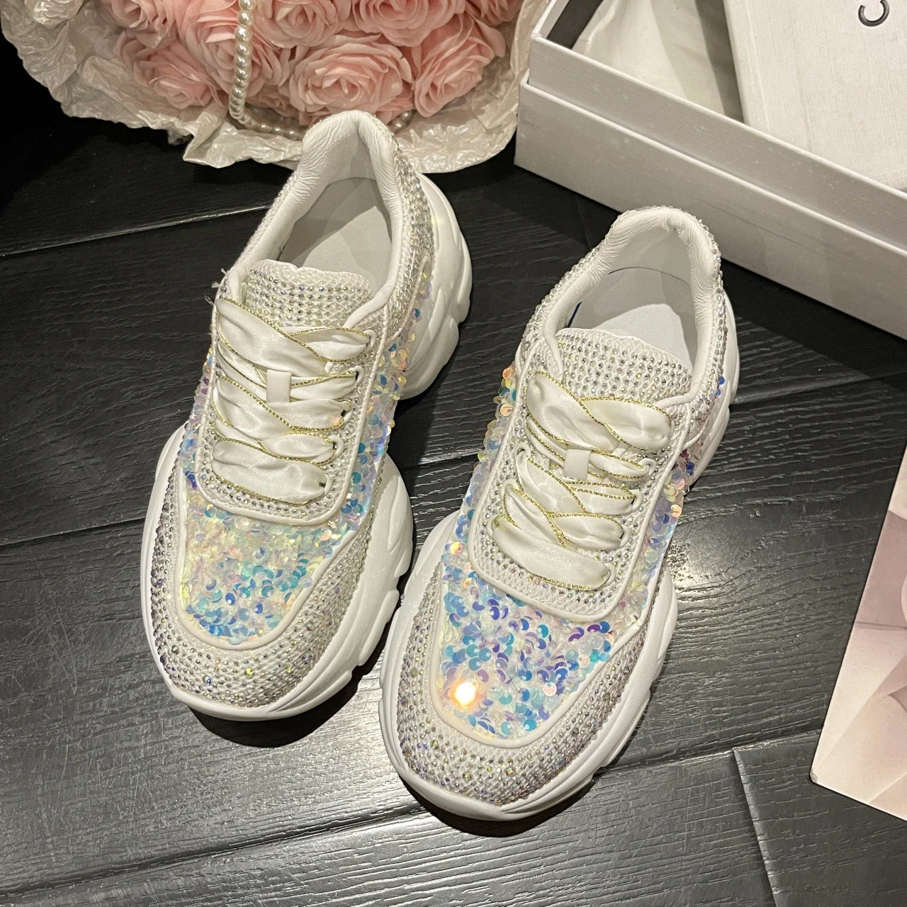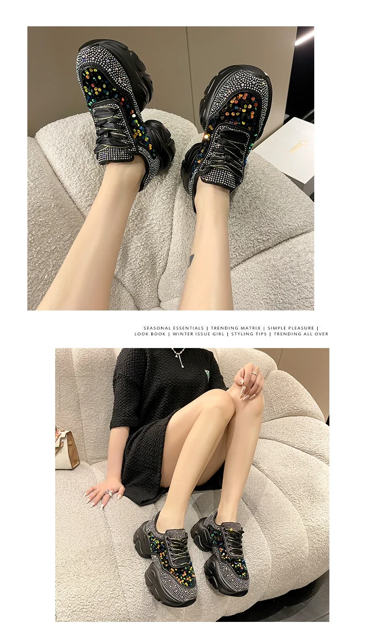 Fashion Shiny Ladies Shoes Sneakers Women Trend 2024 New Spring Platform Lace Up Rhinestone Women Casual Shoes zapatos de mujer