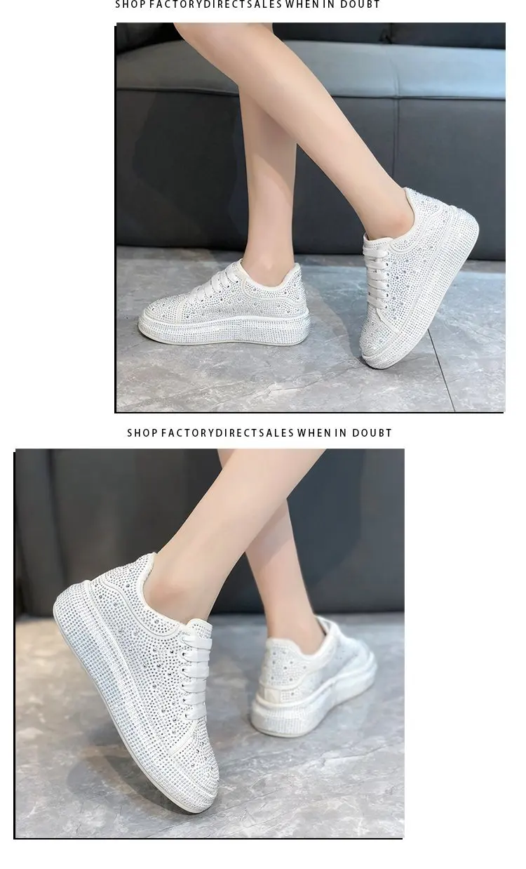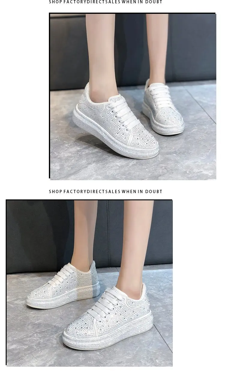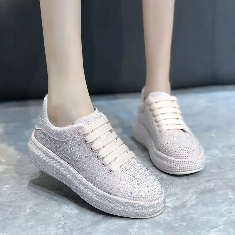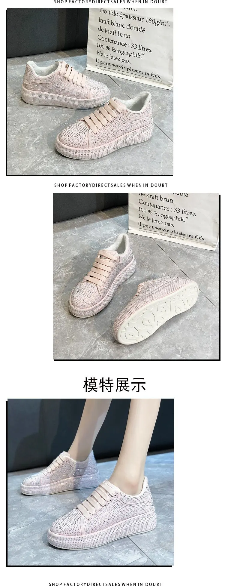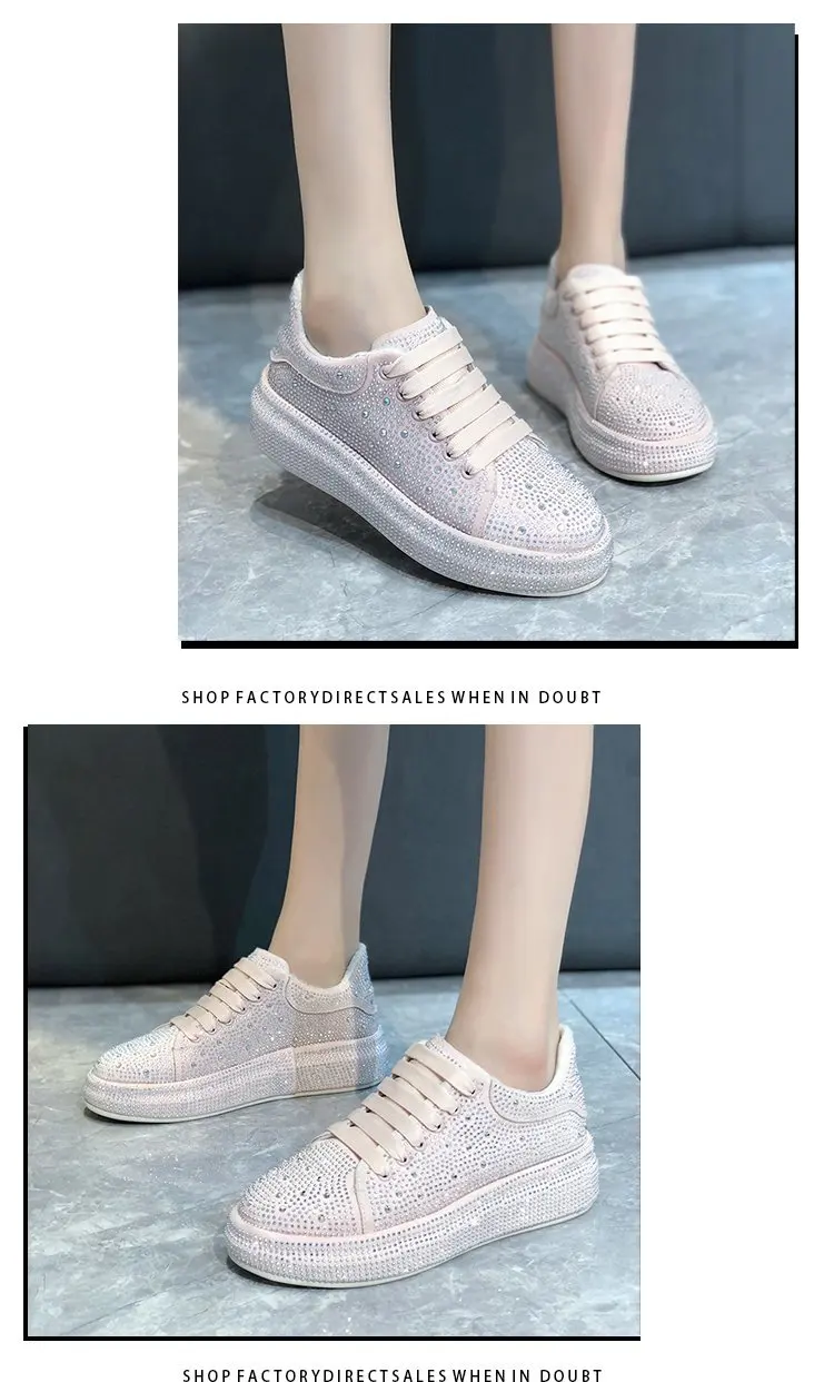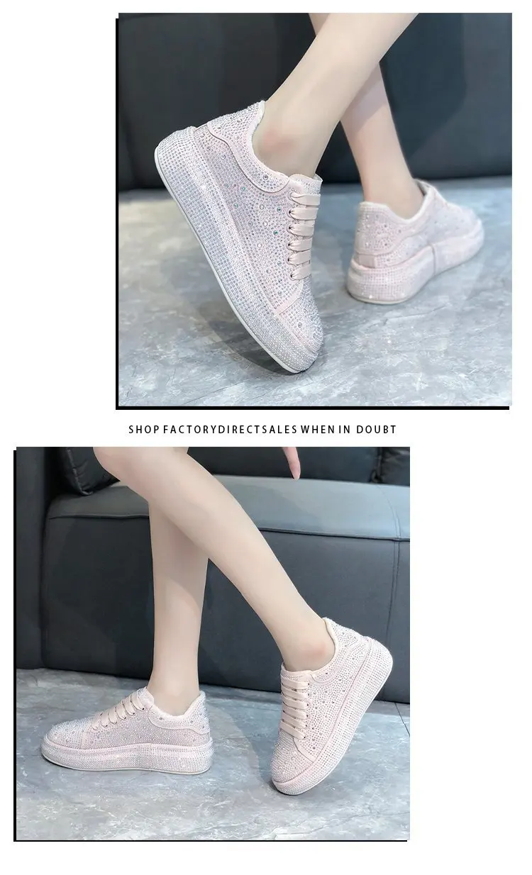 Fashion Women's Casual Sports Shoes with Water Diamond Thick Bottom White Pink Women's Shining Luxury Sports Shoes Trendy Shoes