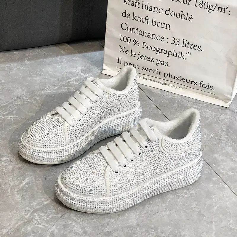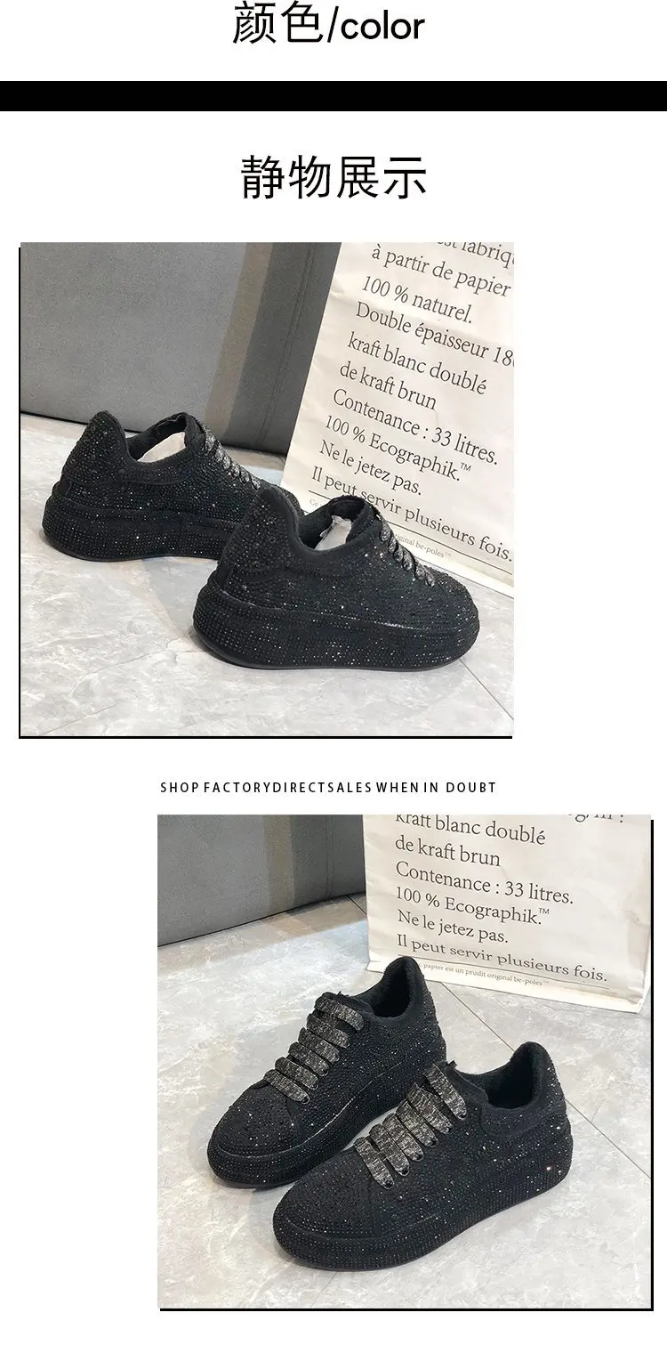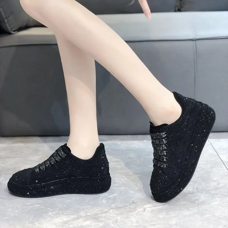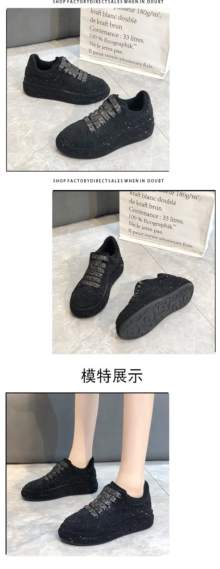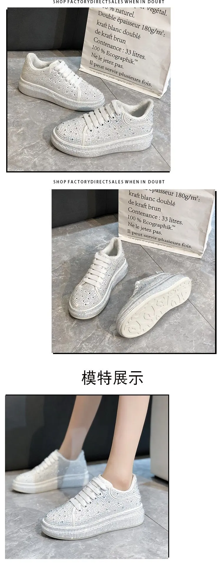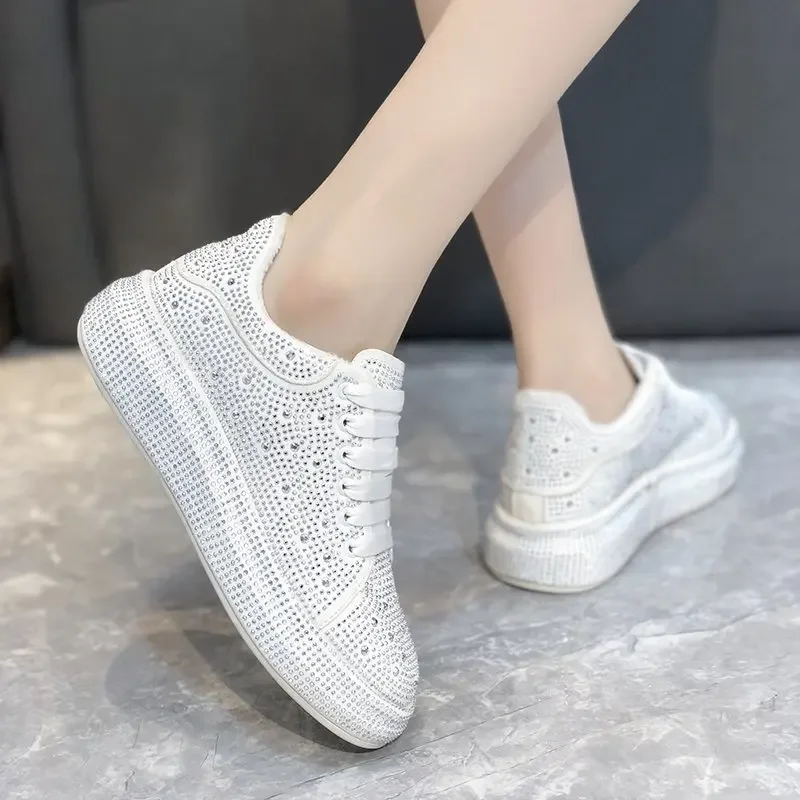 Fashion Women's Casual Sports Shoes with Water Diamond Thick Bottom White Pink Women's Shining Luxury Sports Shoes Trendy Shoes