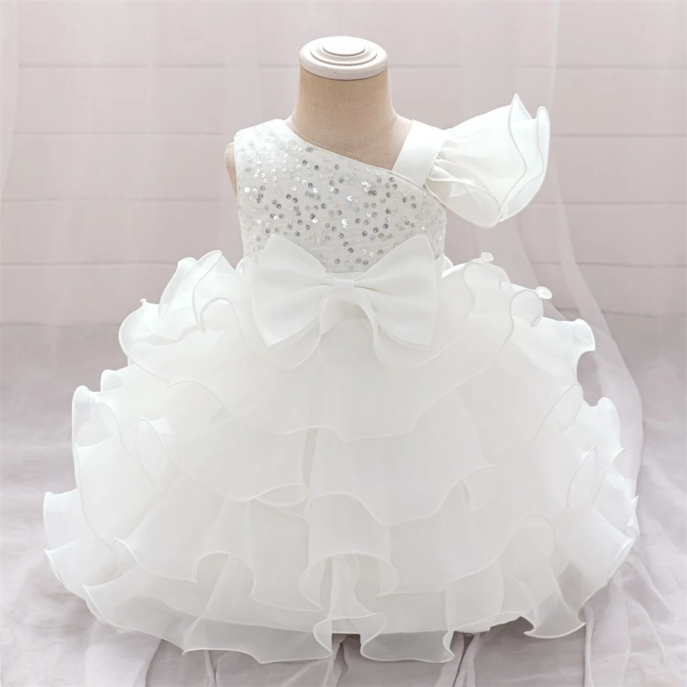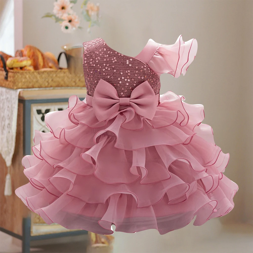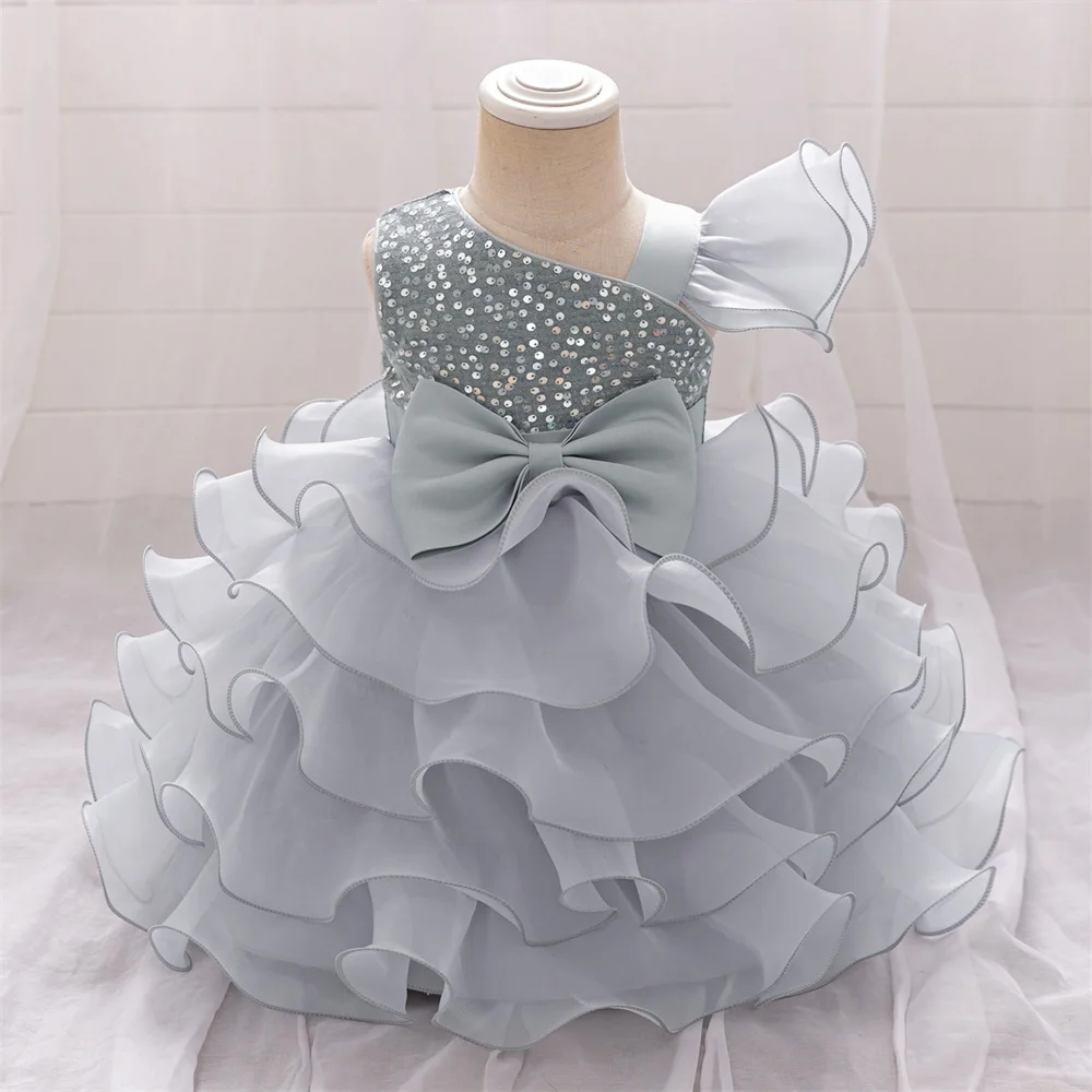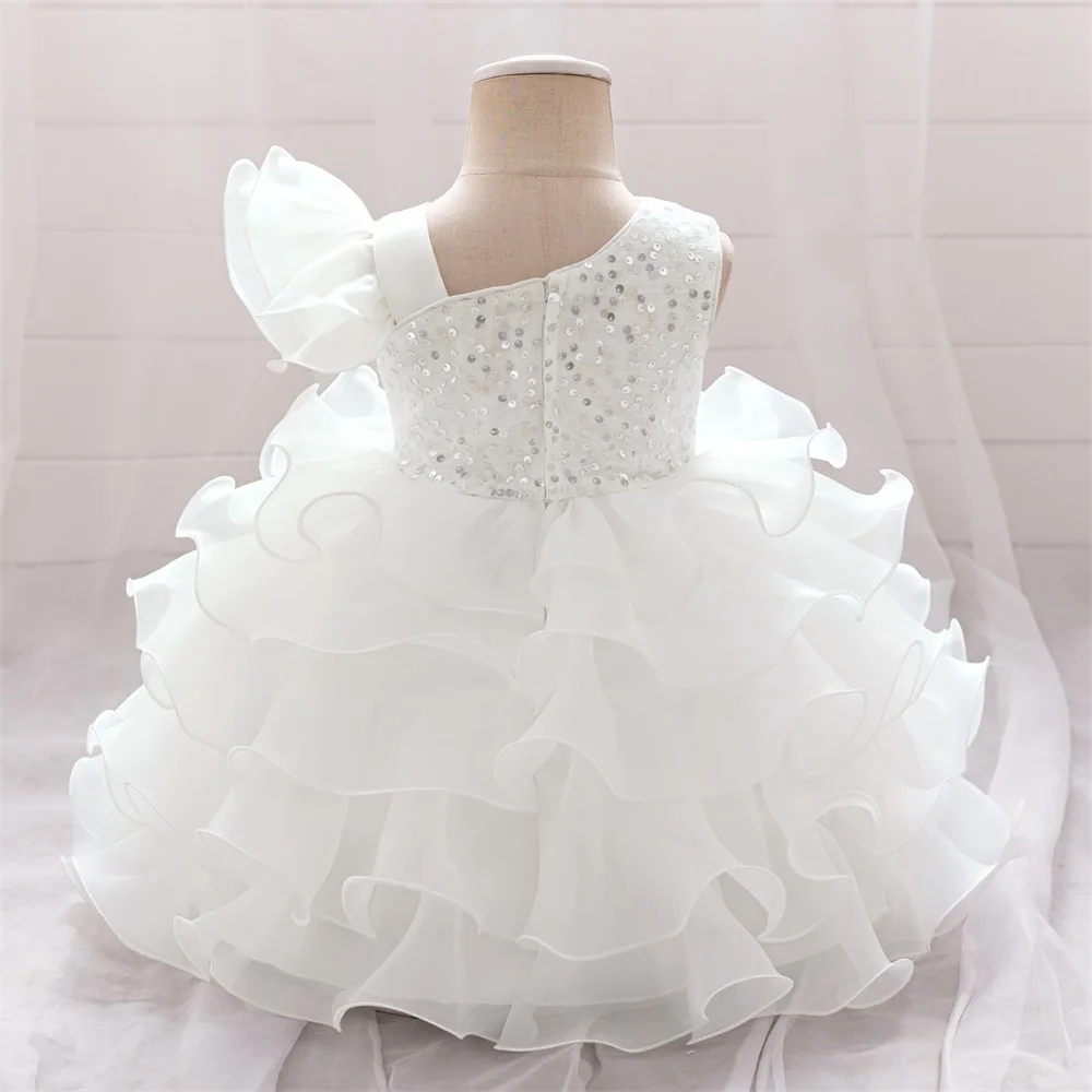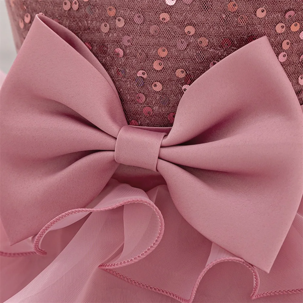 Flower Girls Wedding Bridesmaid Party Dress Kids Sequin Princess Gown For Baby Toddler 1st Birthday Bow Clothes Evening Costumes