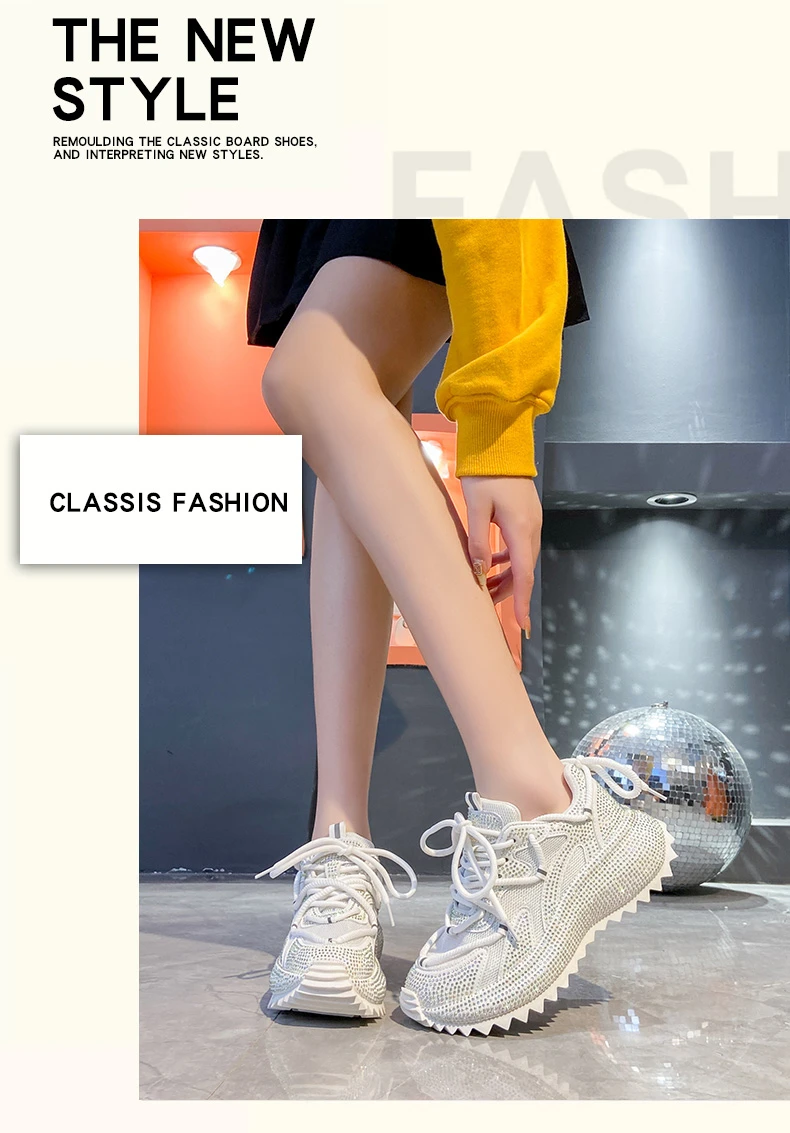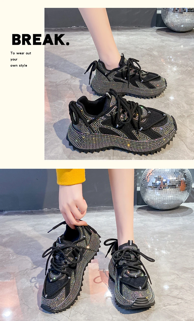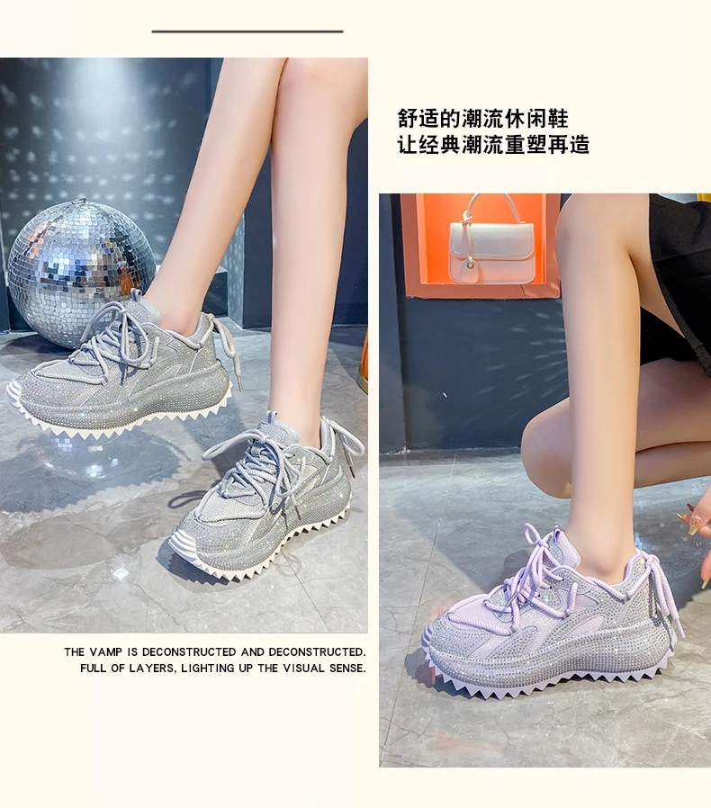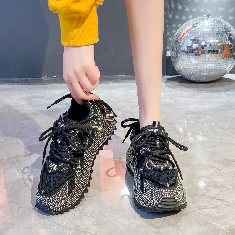 Full Diamond Luxury Running Shoes Thick soled Sneakers High quality Water Diamond Women’s Shoes Designer Casual Shoes zapatillas