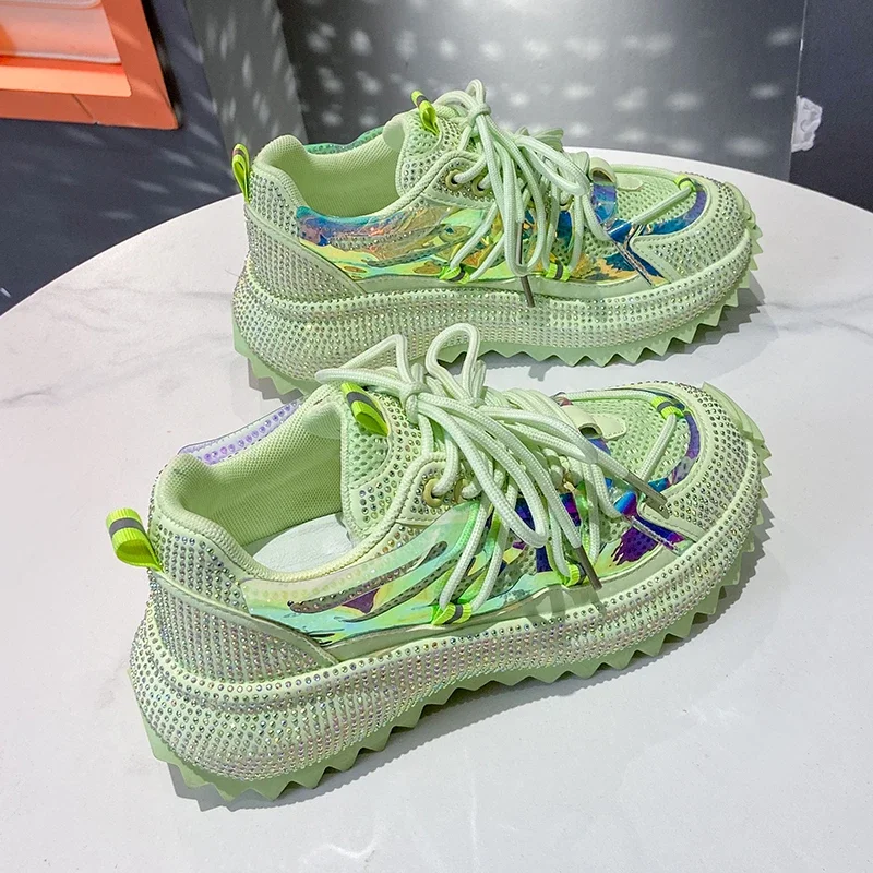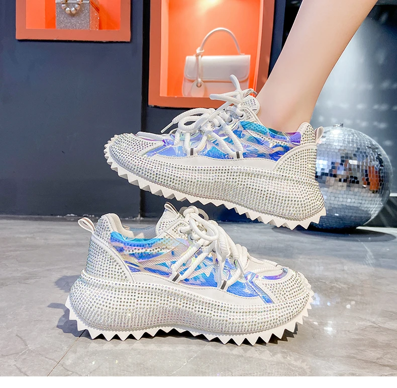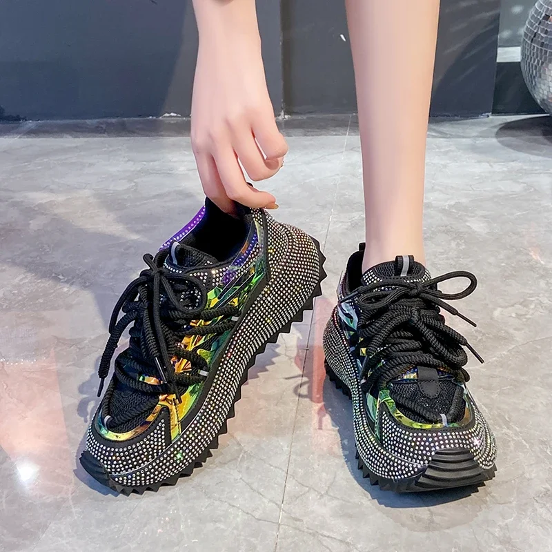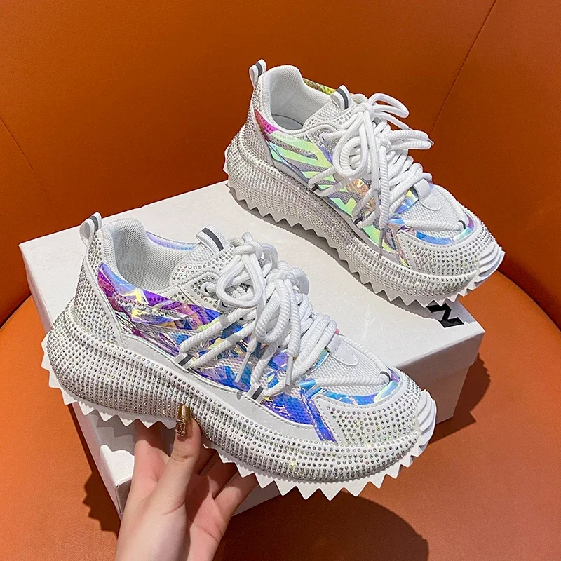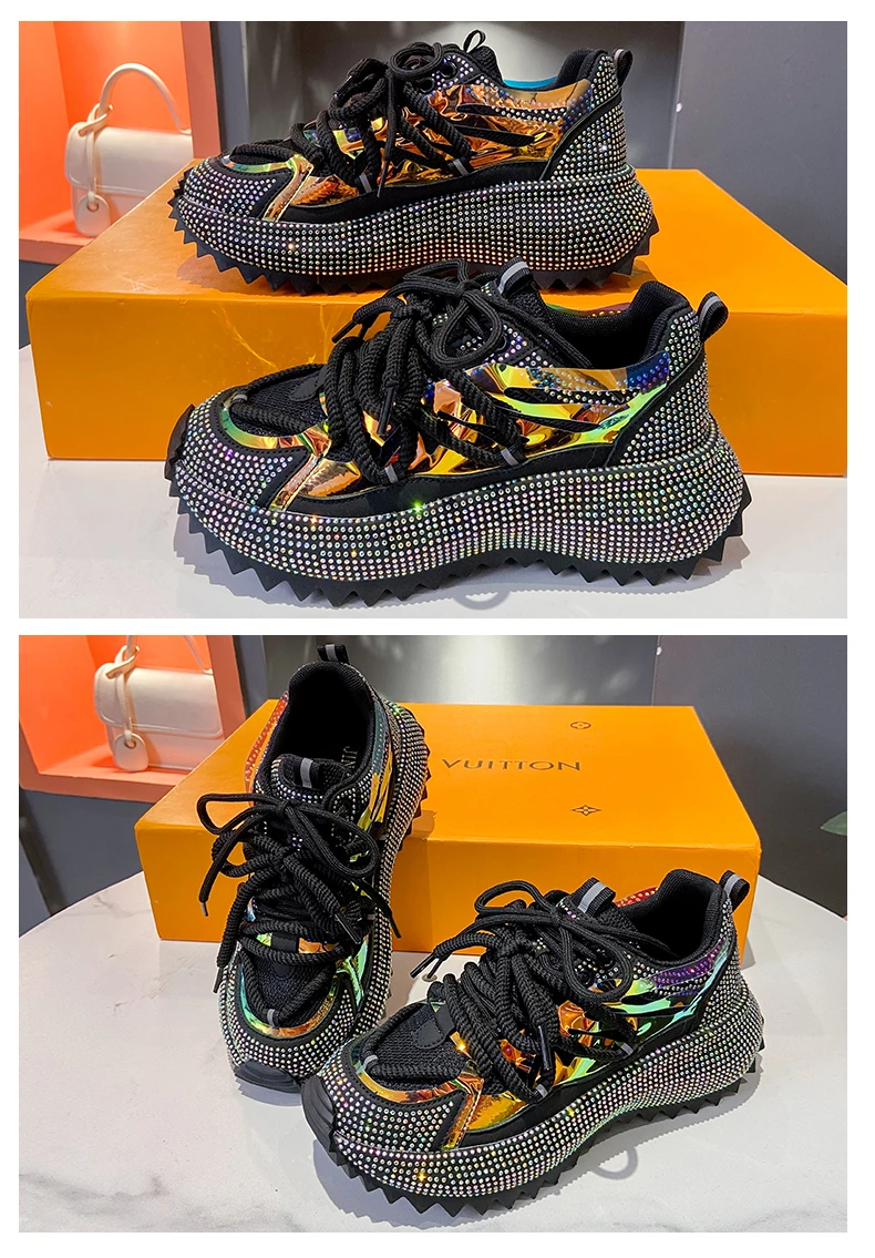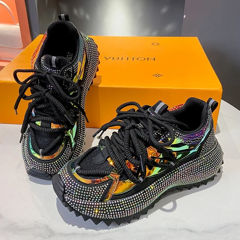 Full Diamond Luxury Thick soled Tall Shoes for Women’s Cross Lace-up Casual Fashion Sports Shoes Designer Running Shoes zapatos